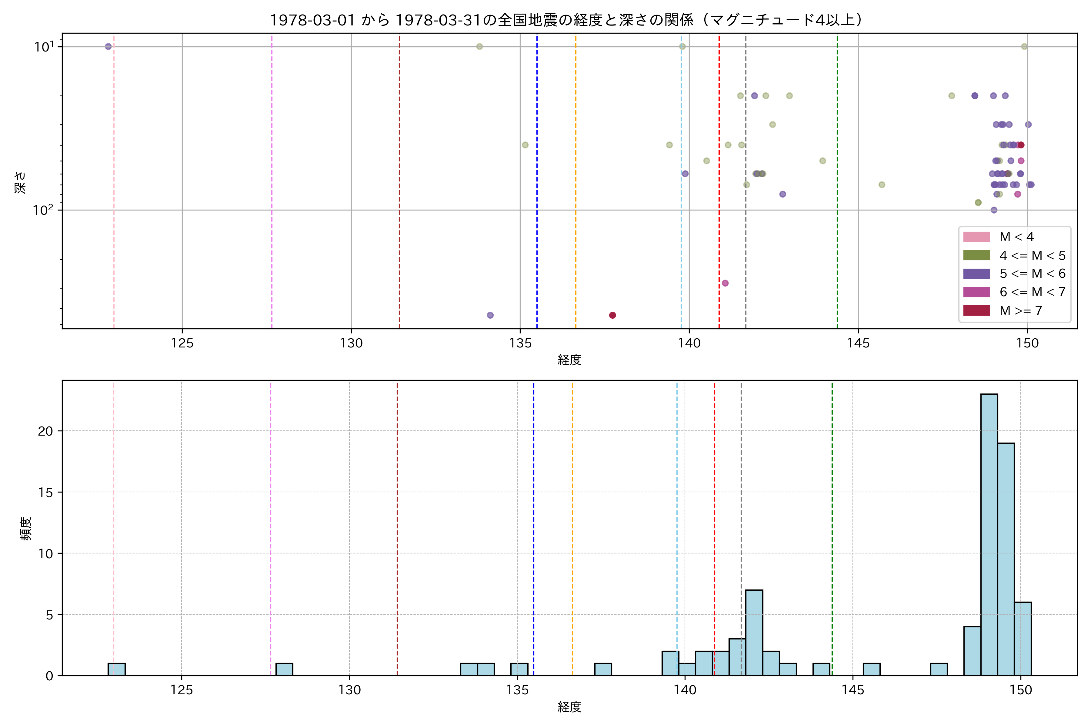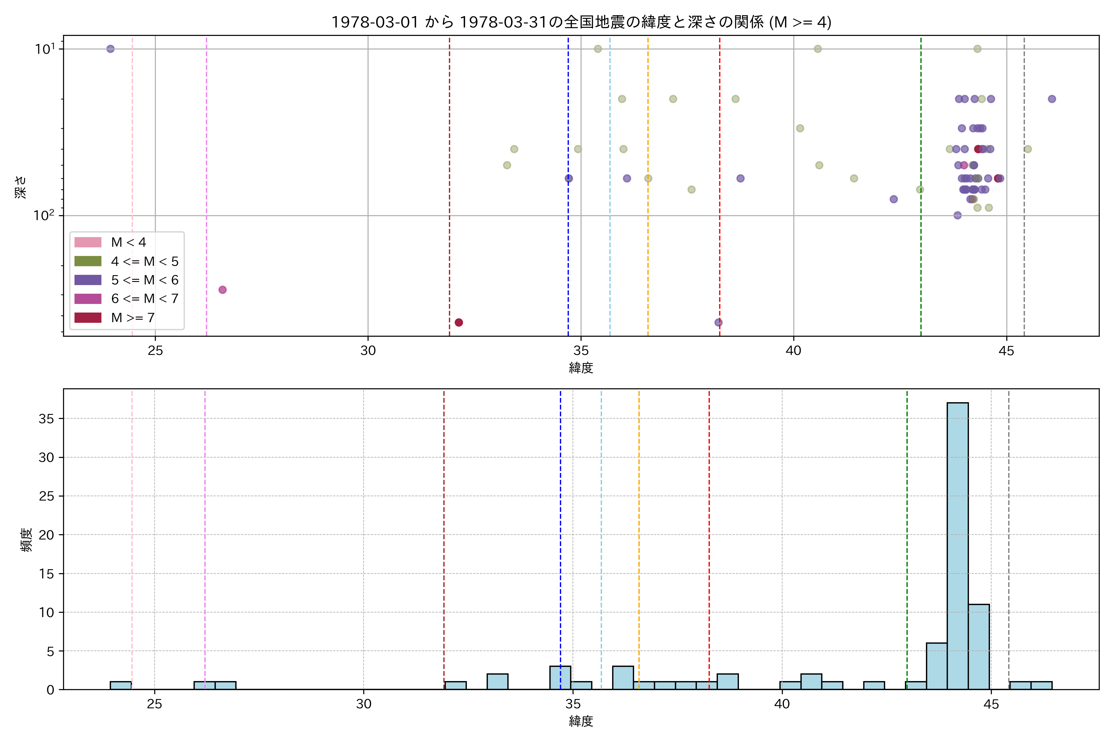 1978年3月 マグニチュード 4 以上震源マップ