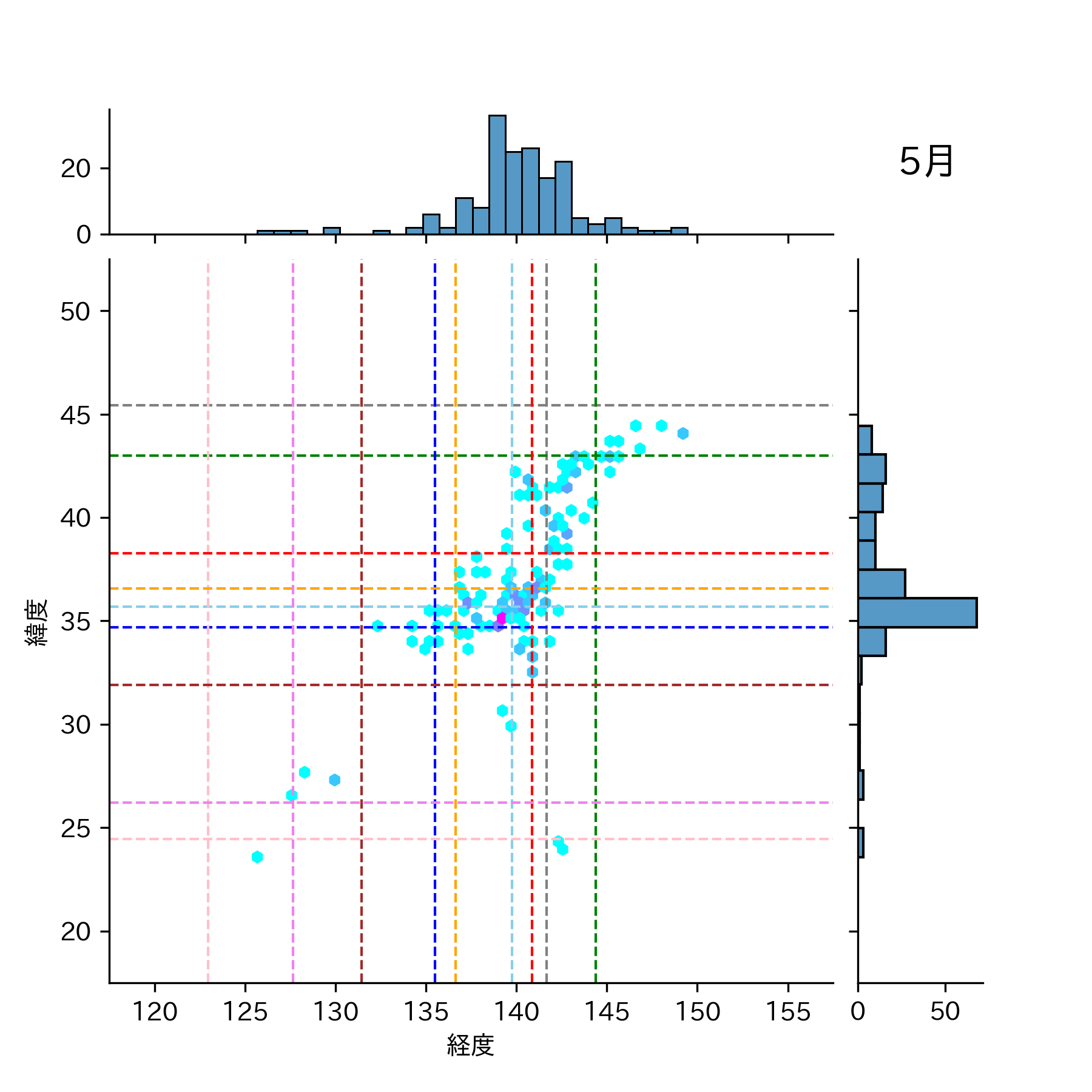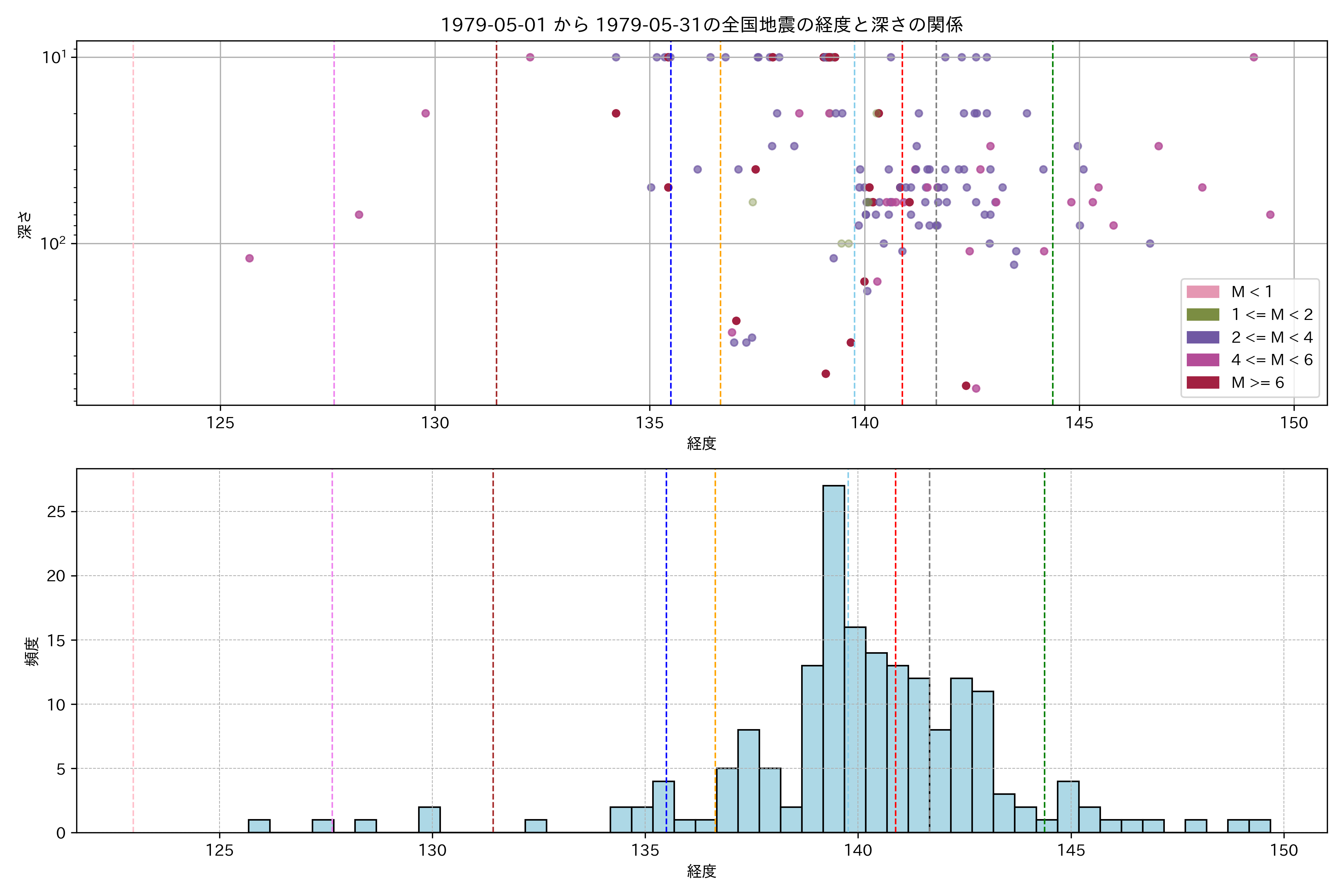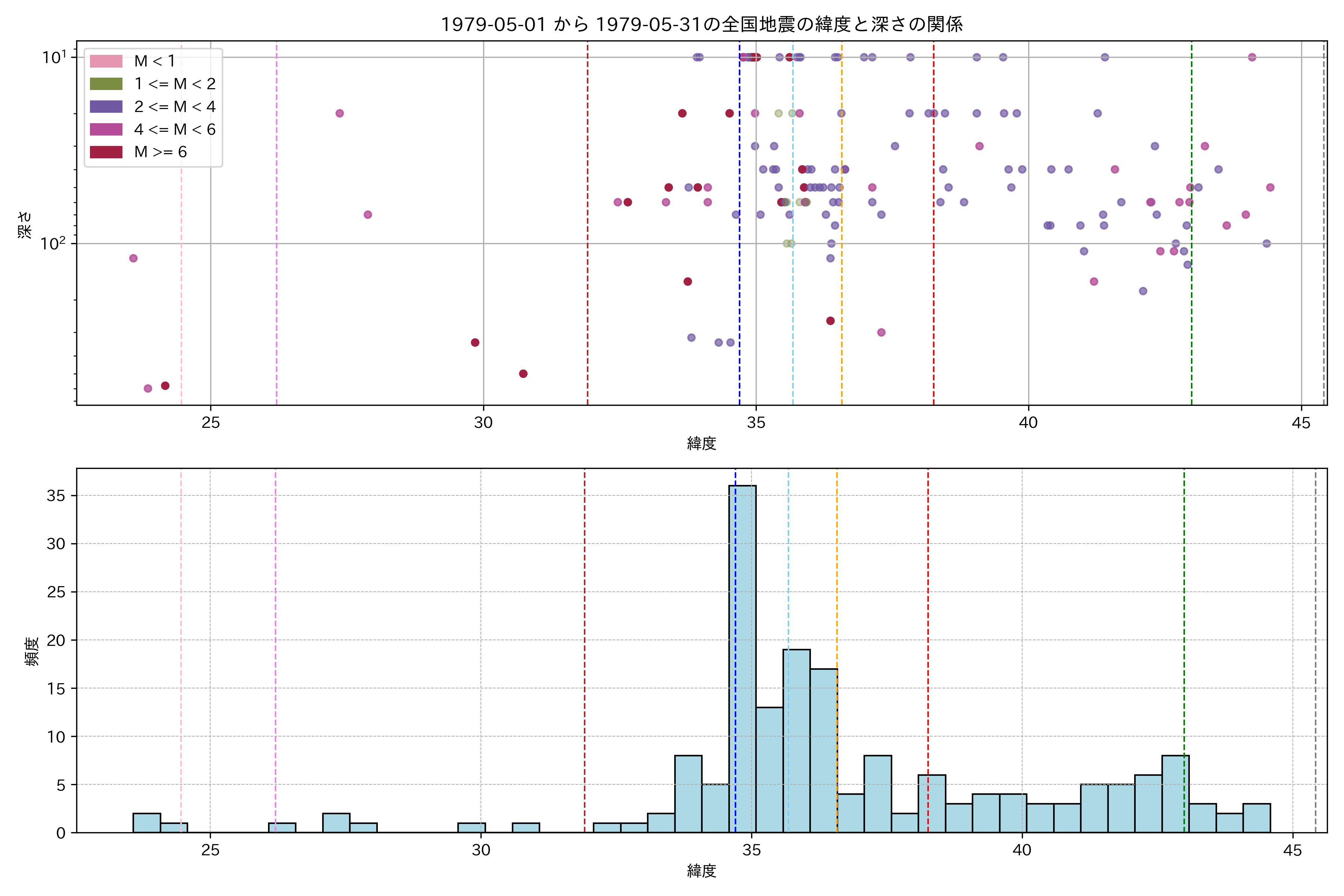 1979年5月 マグニチュード 0 以上震源マップ