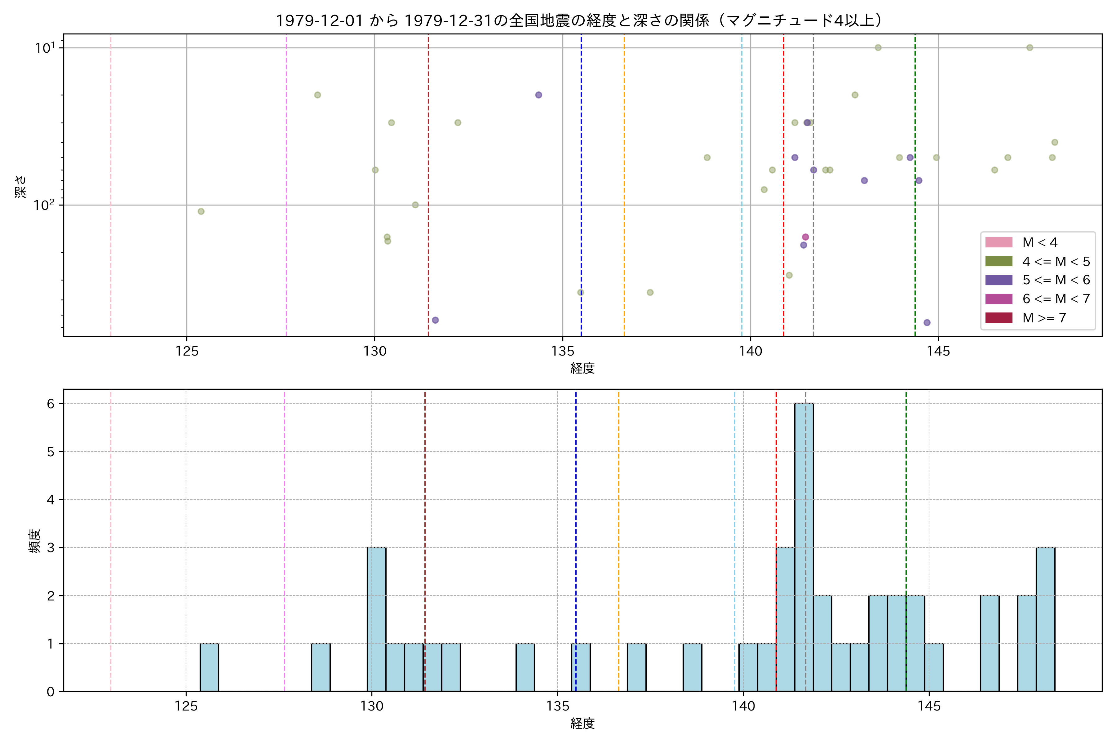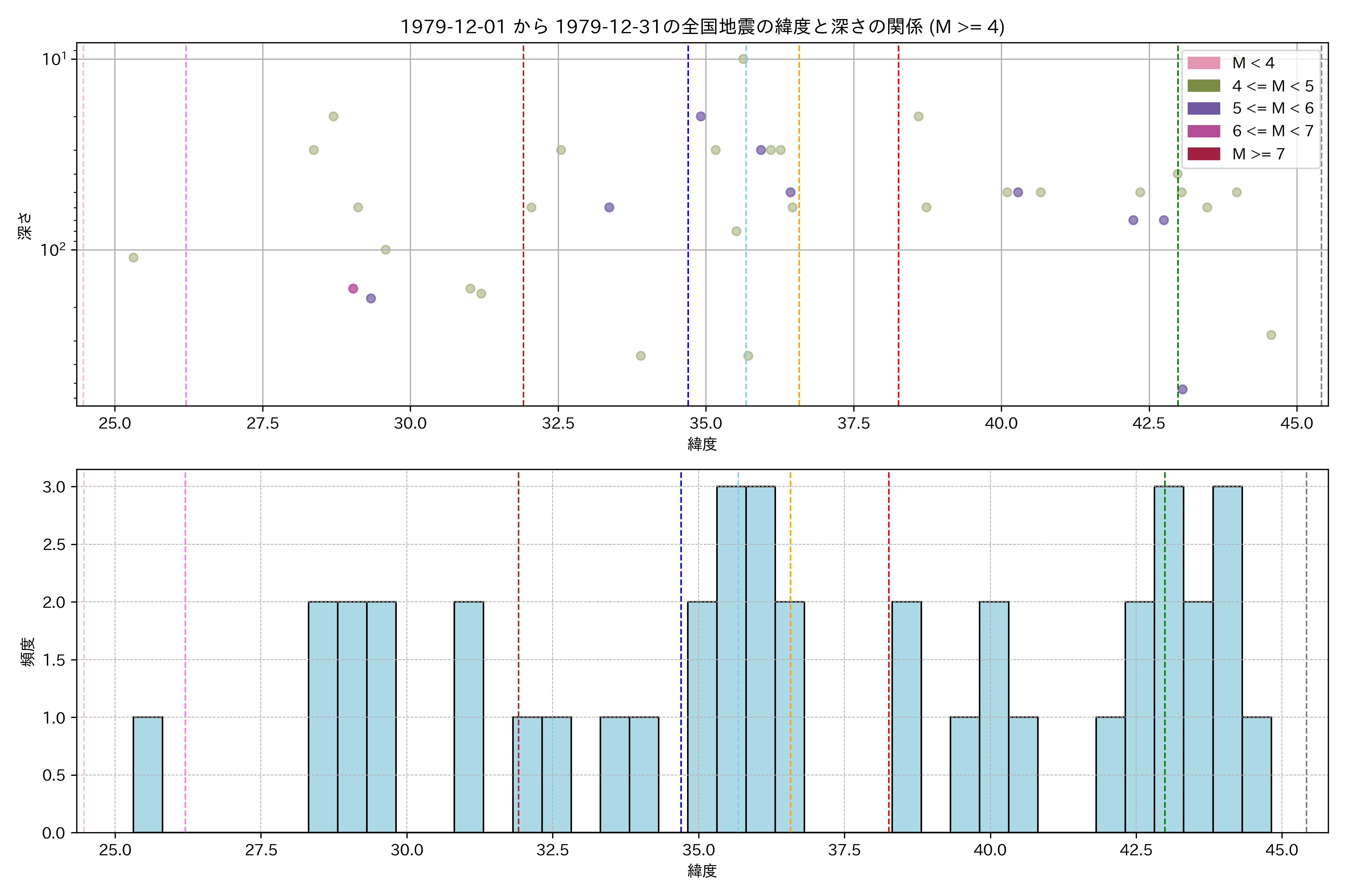1979年12月 マグニチュード 4 以上震源マップ