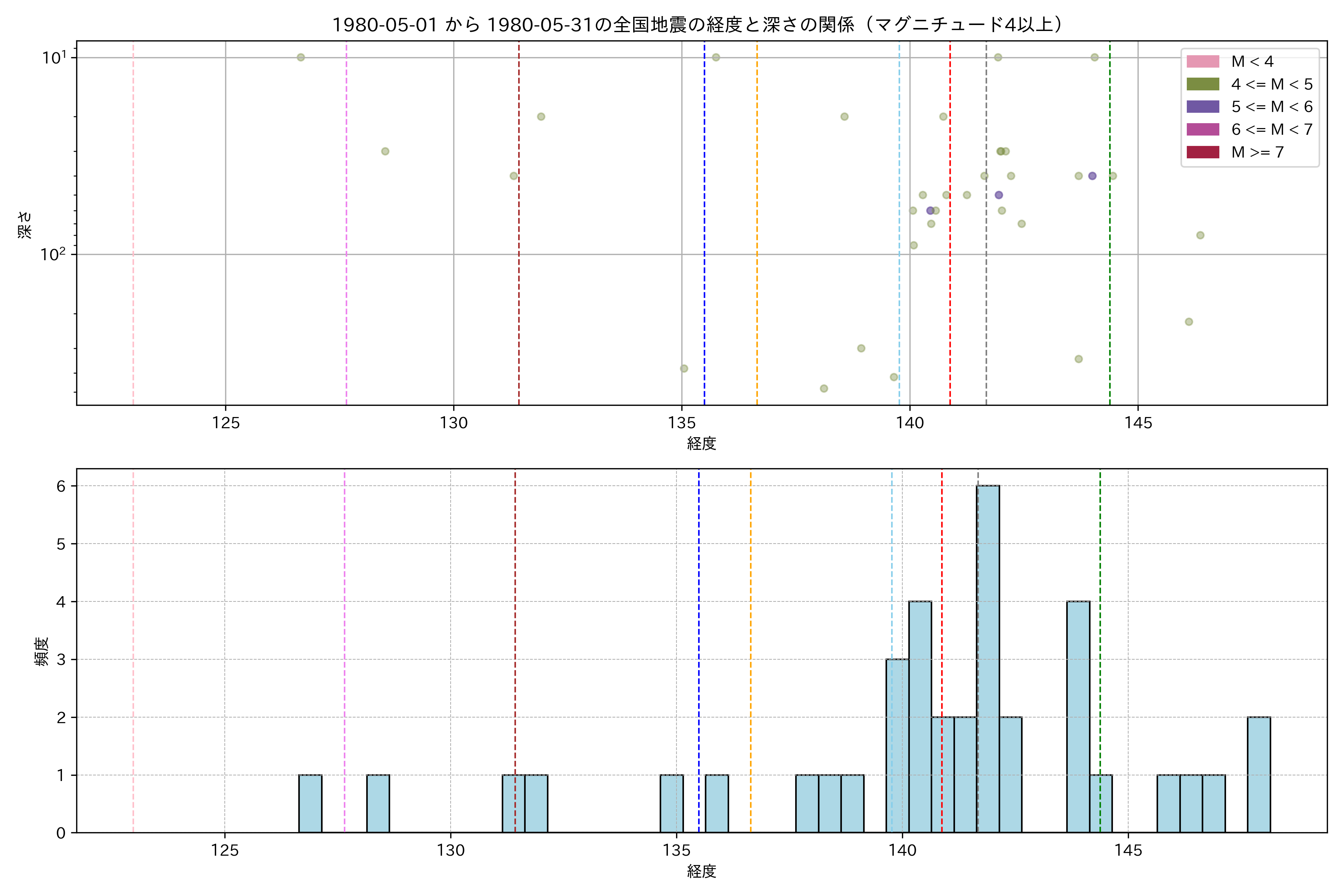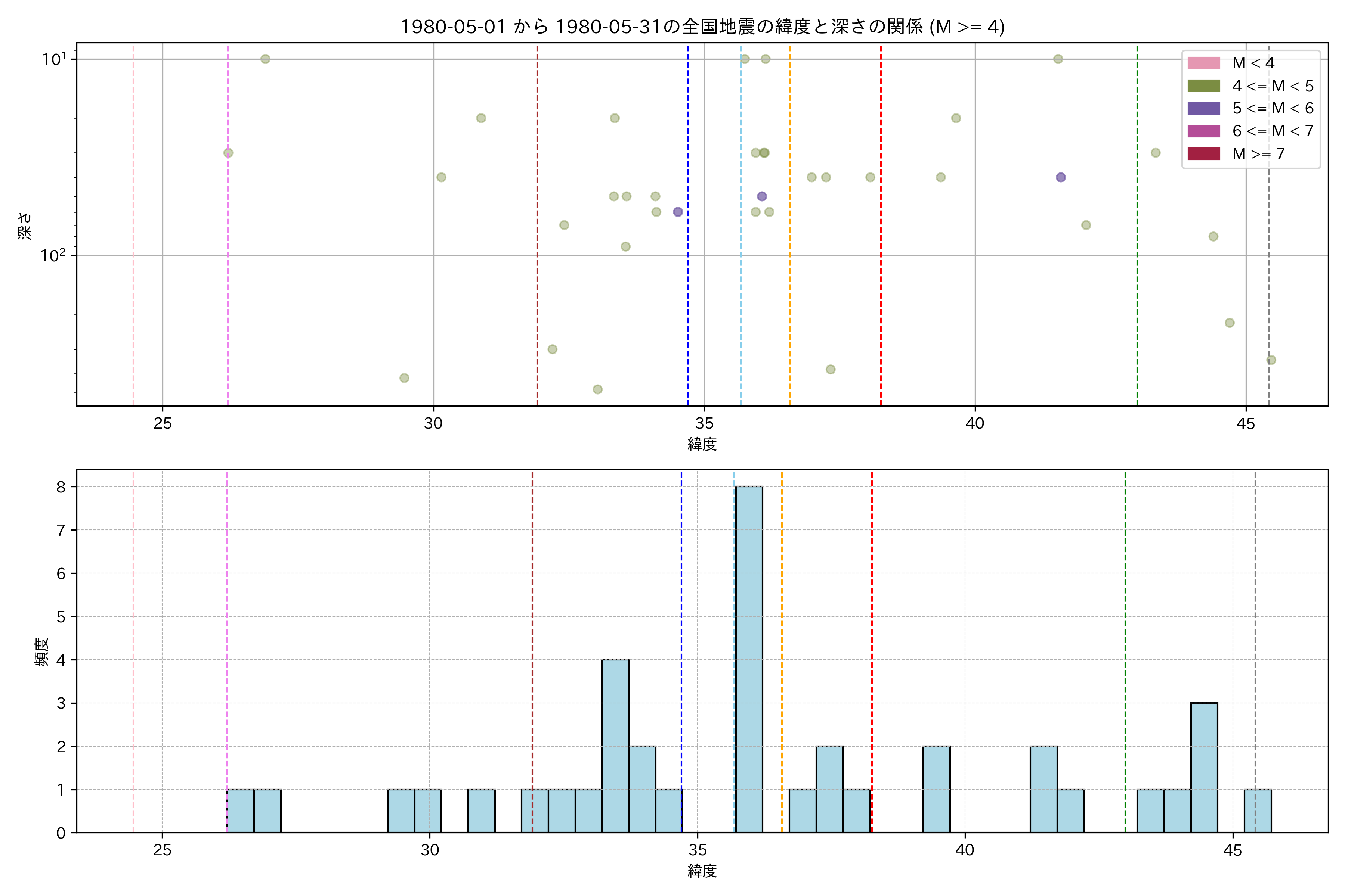1980年5月 マグニチュード 4 以上震源マップ