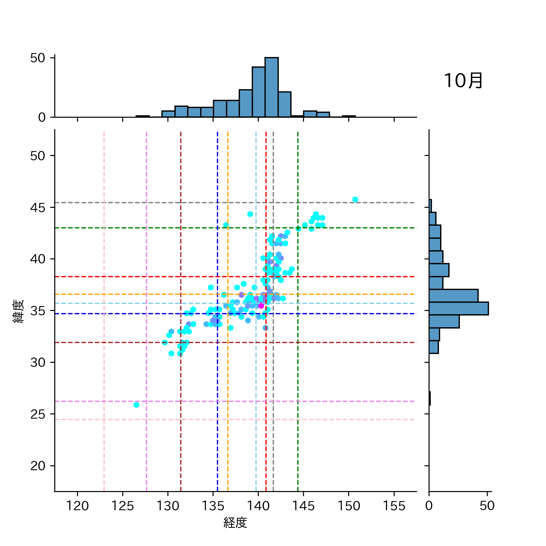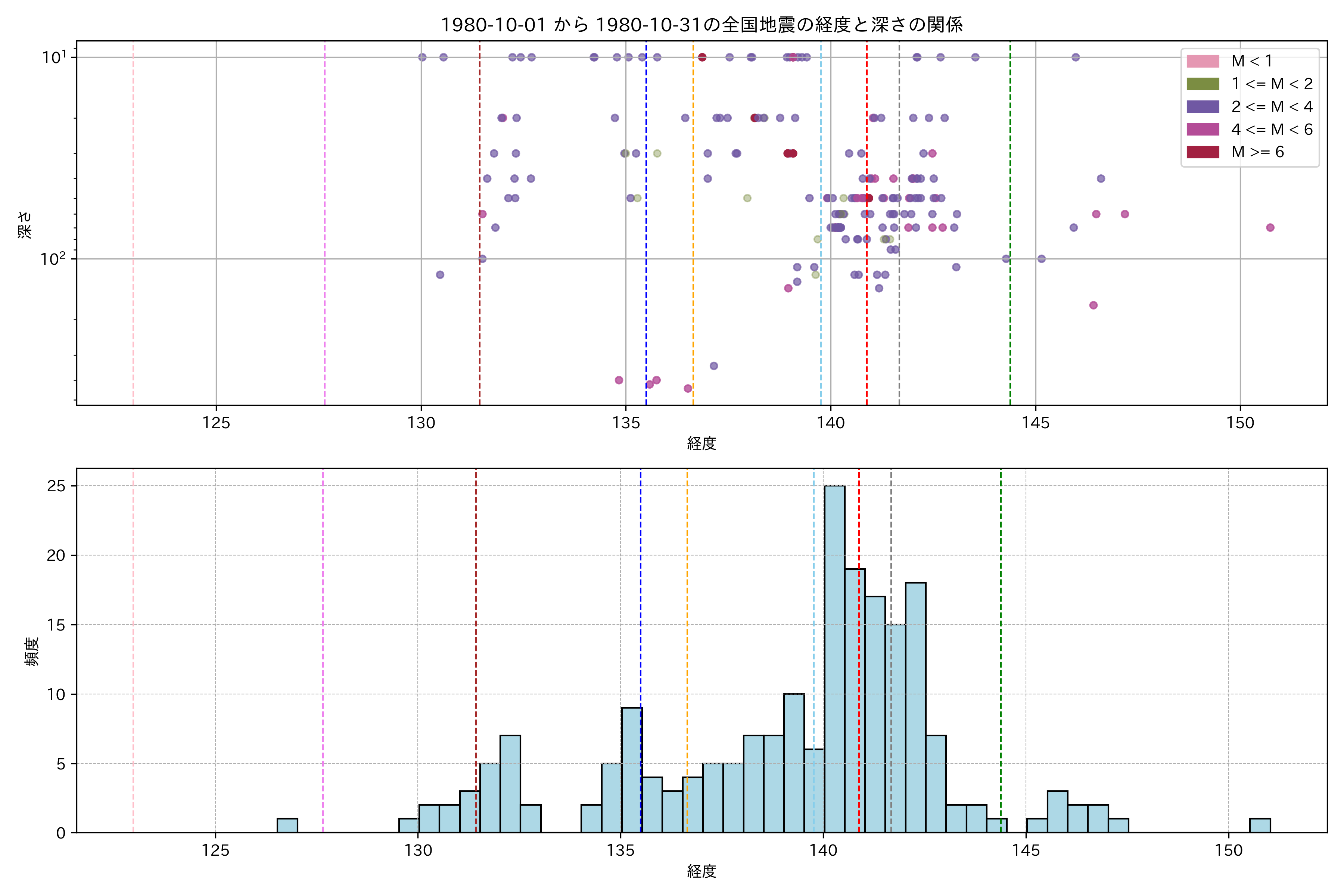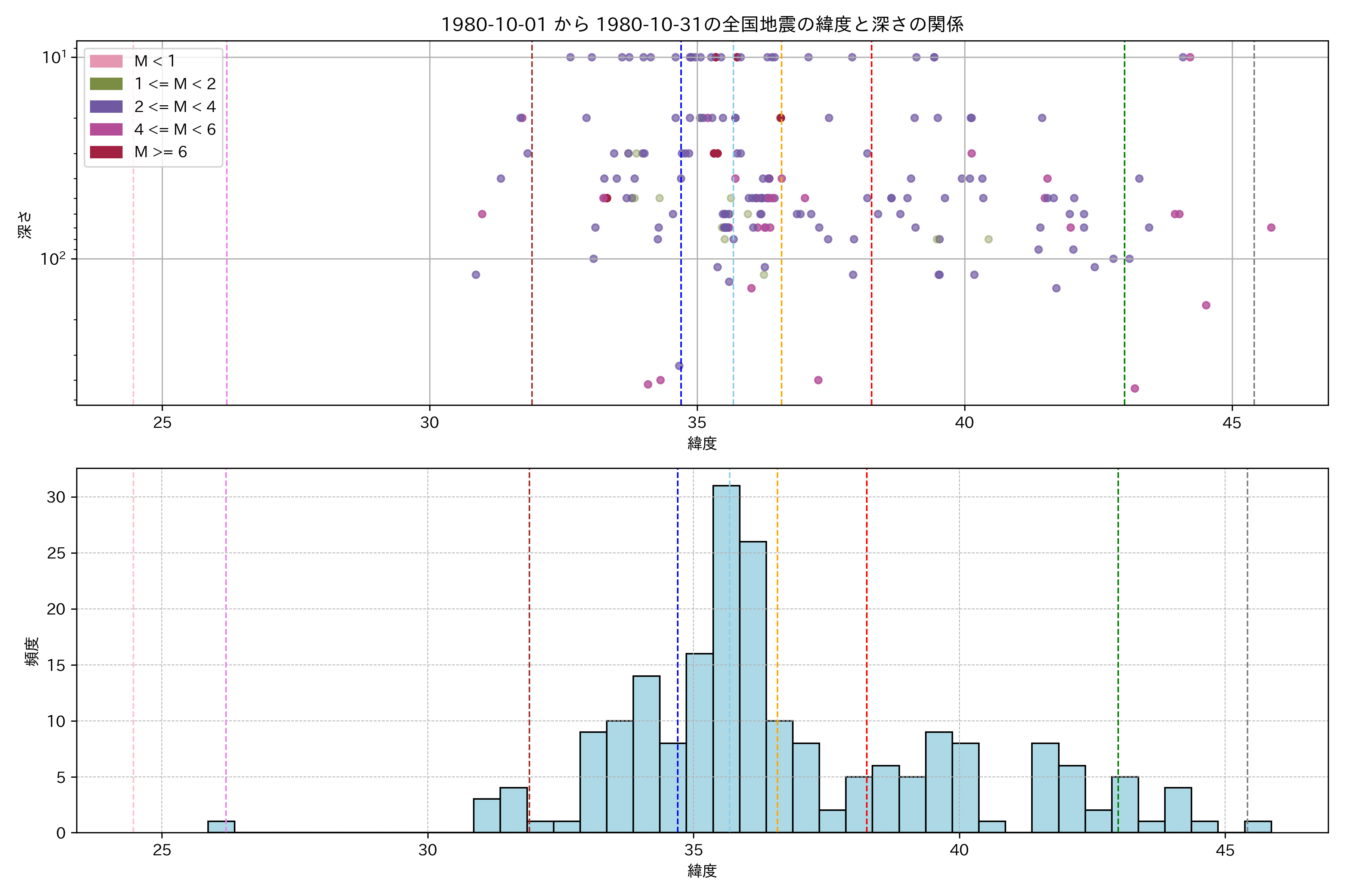 1980年10月 マグニチュード 0 以上震源マップ