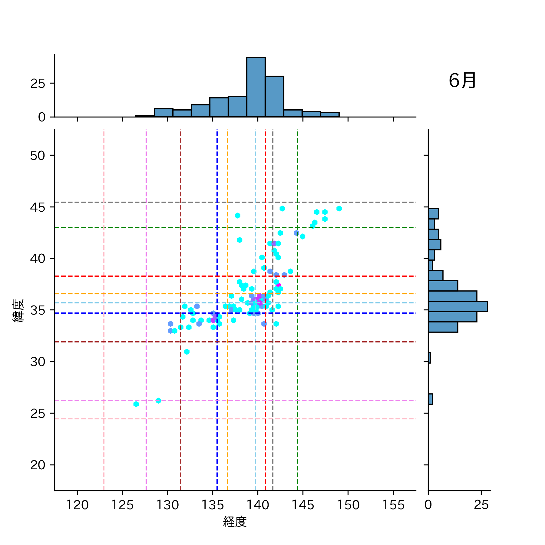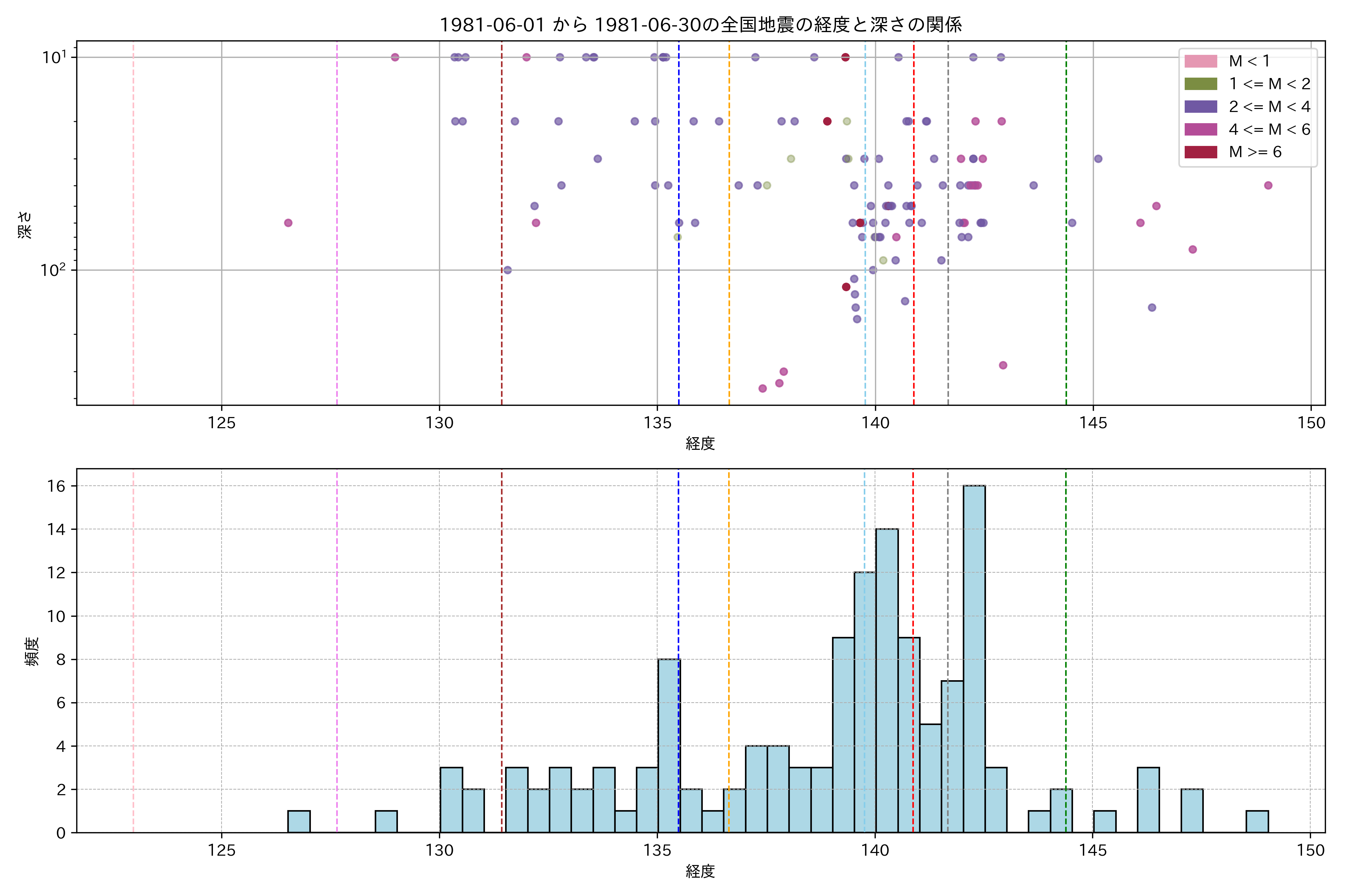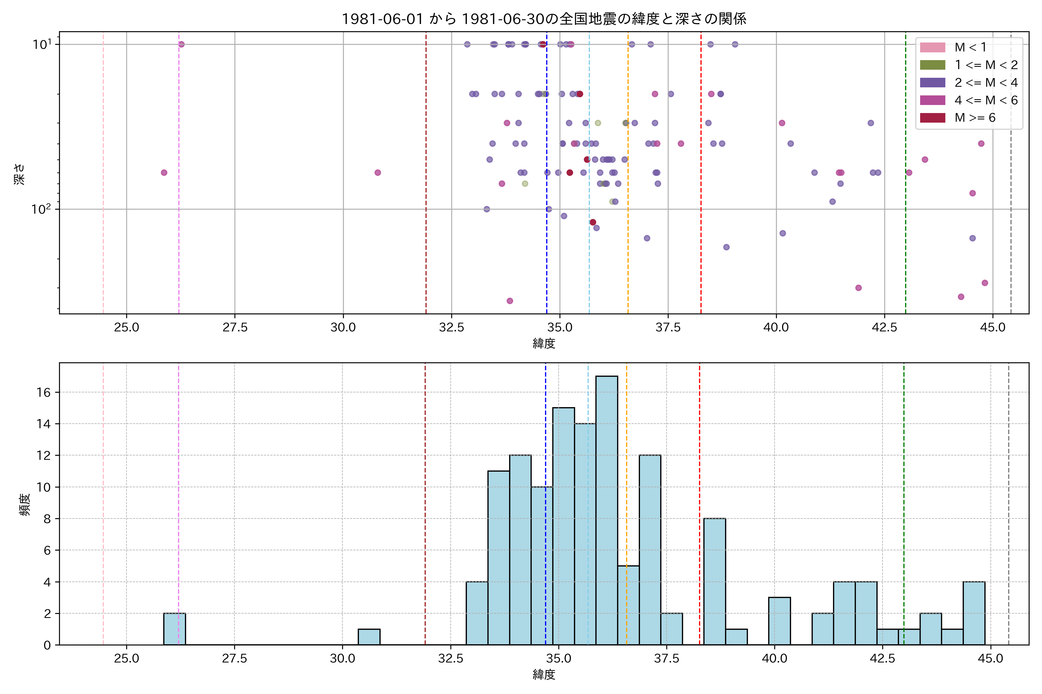 1981年6月 マグニチュード 0 以上震源マップ