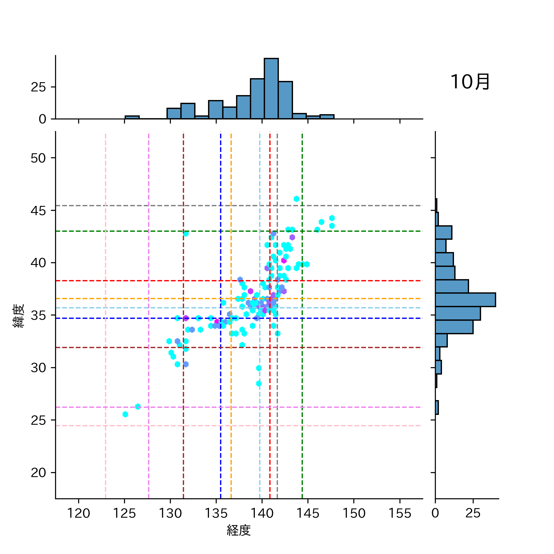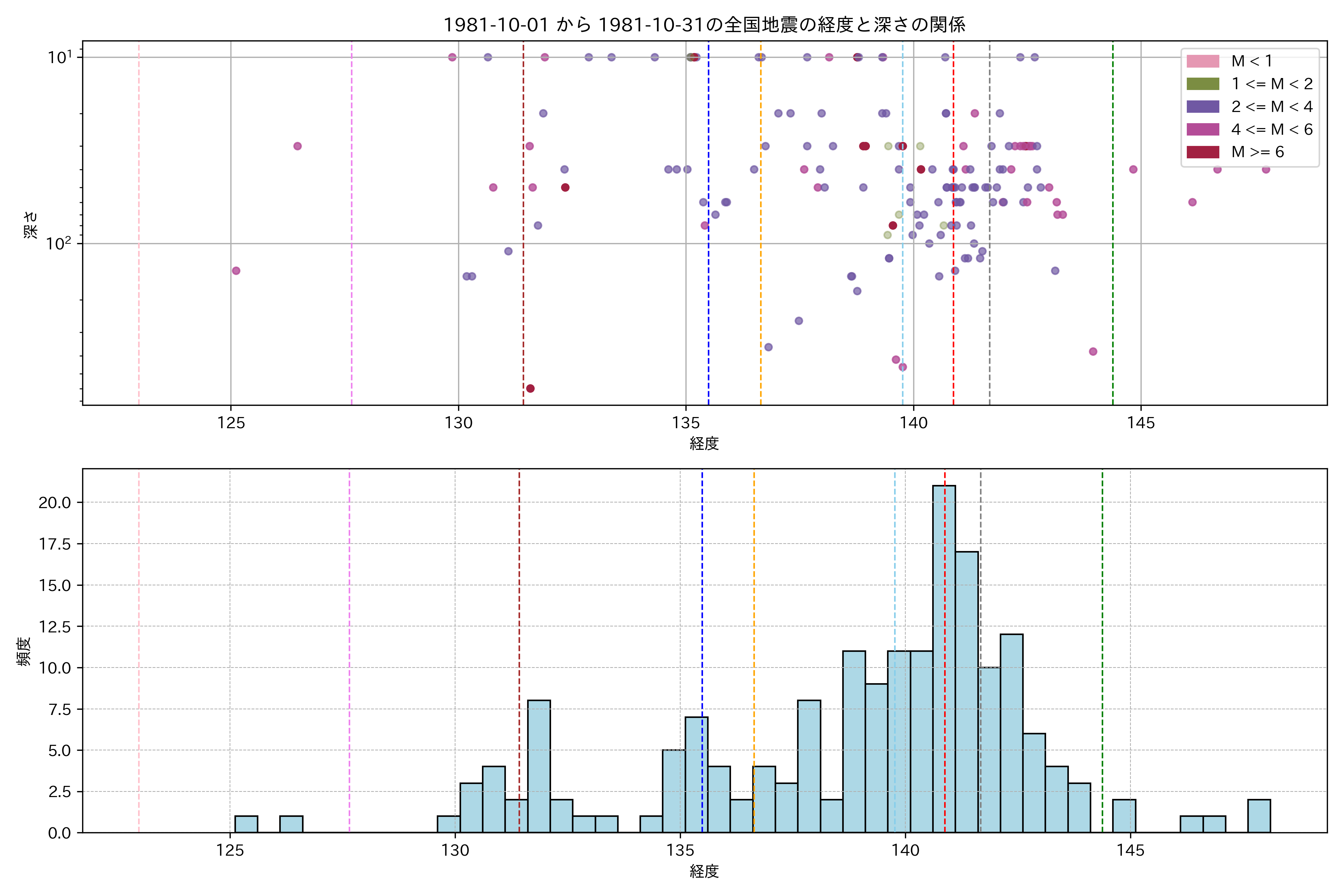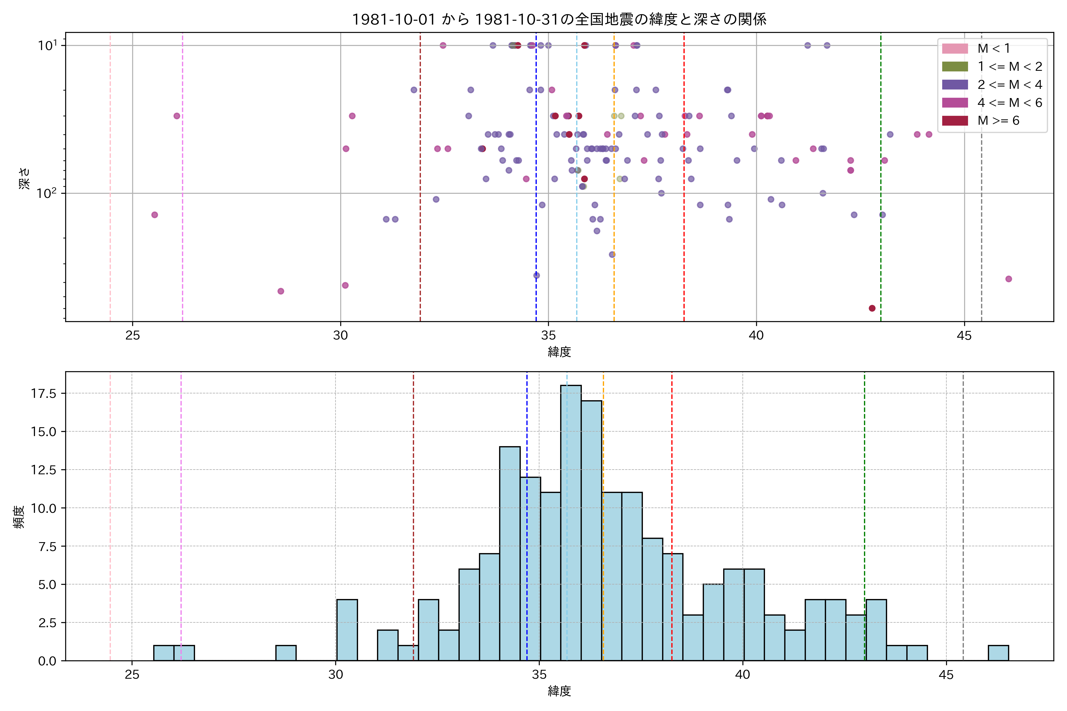 1981年10月 マグニチュード 0 以上震源マップ
