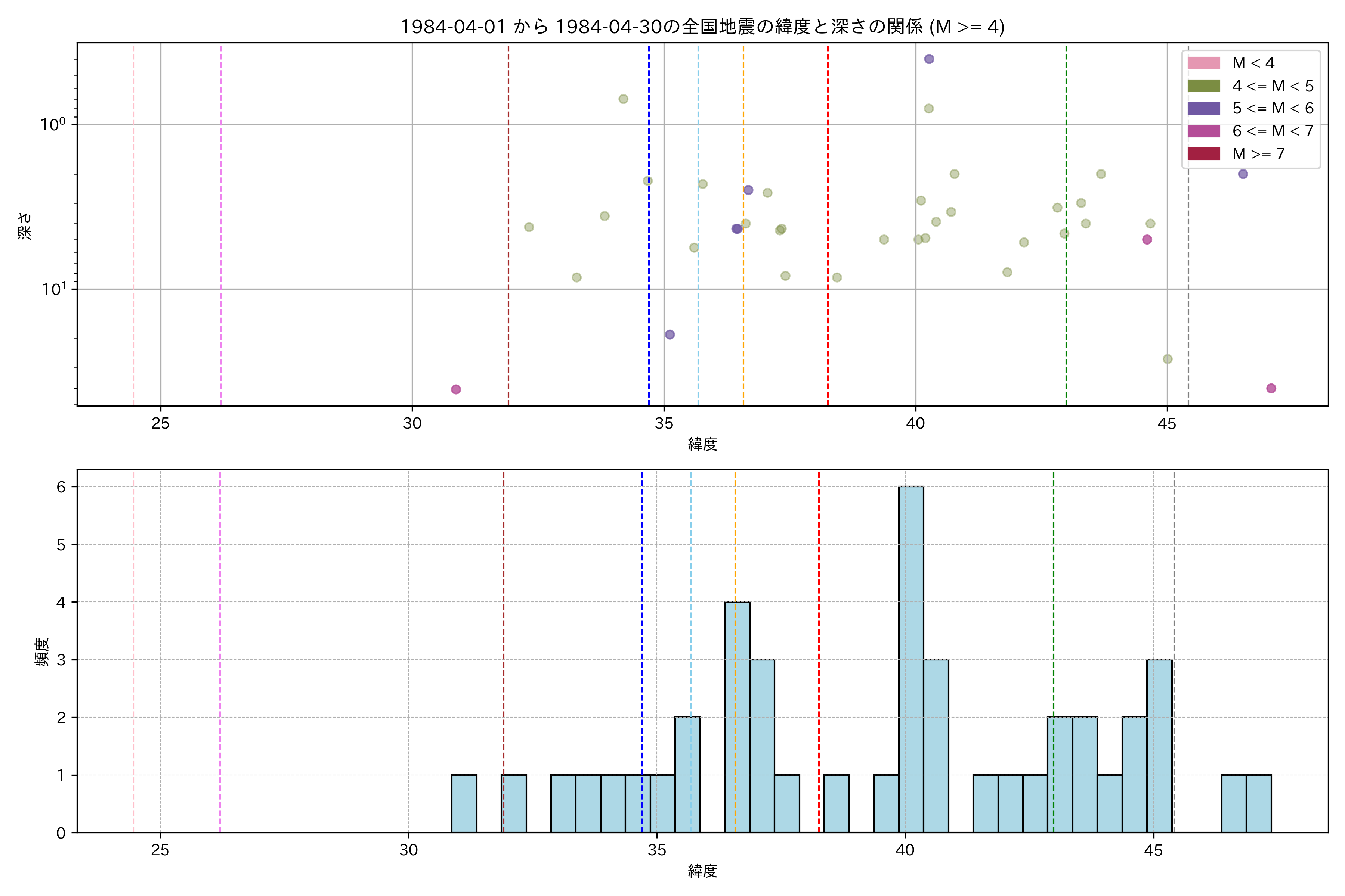 1984年4月 マグニチュード 4 以上震源マップ