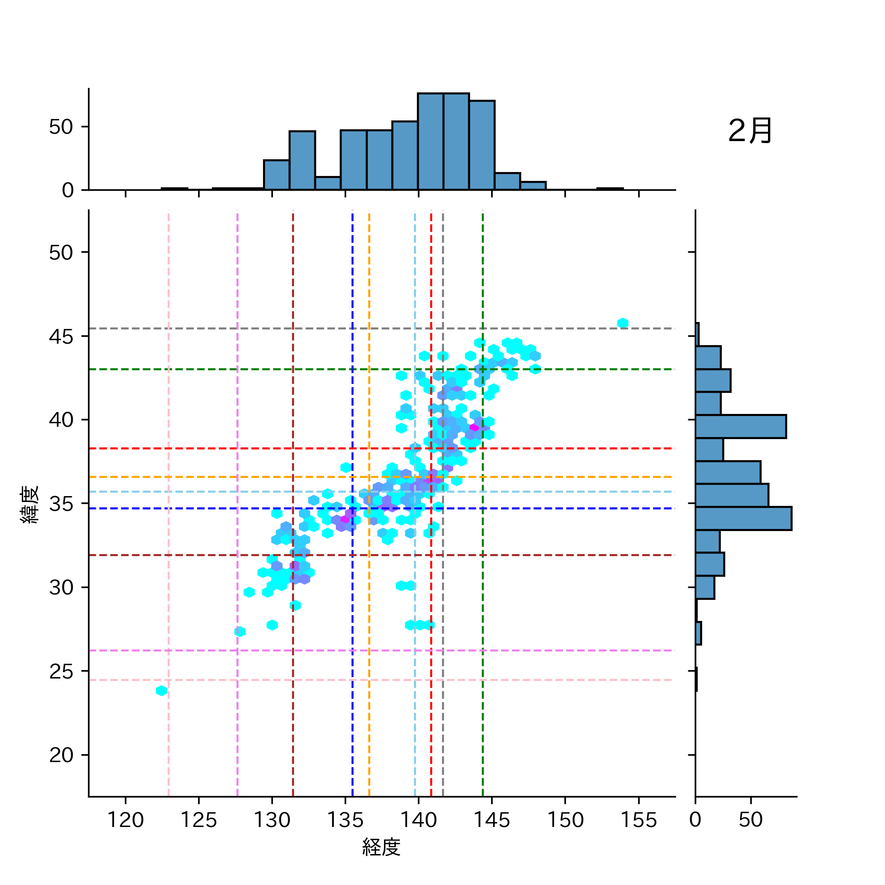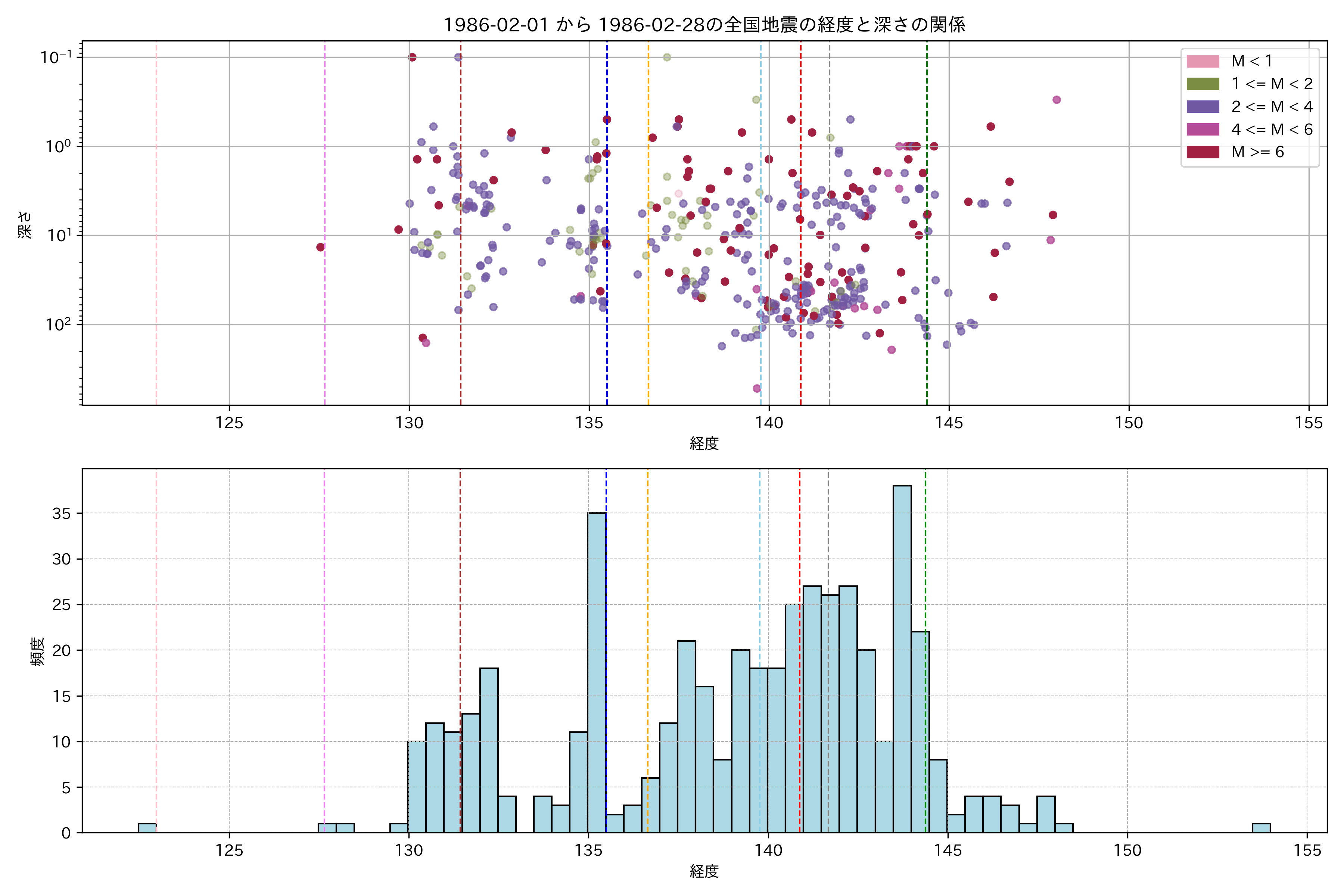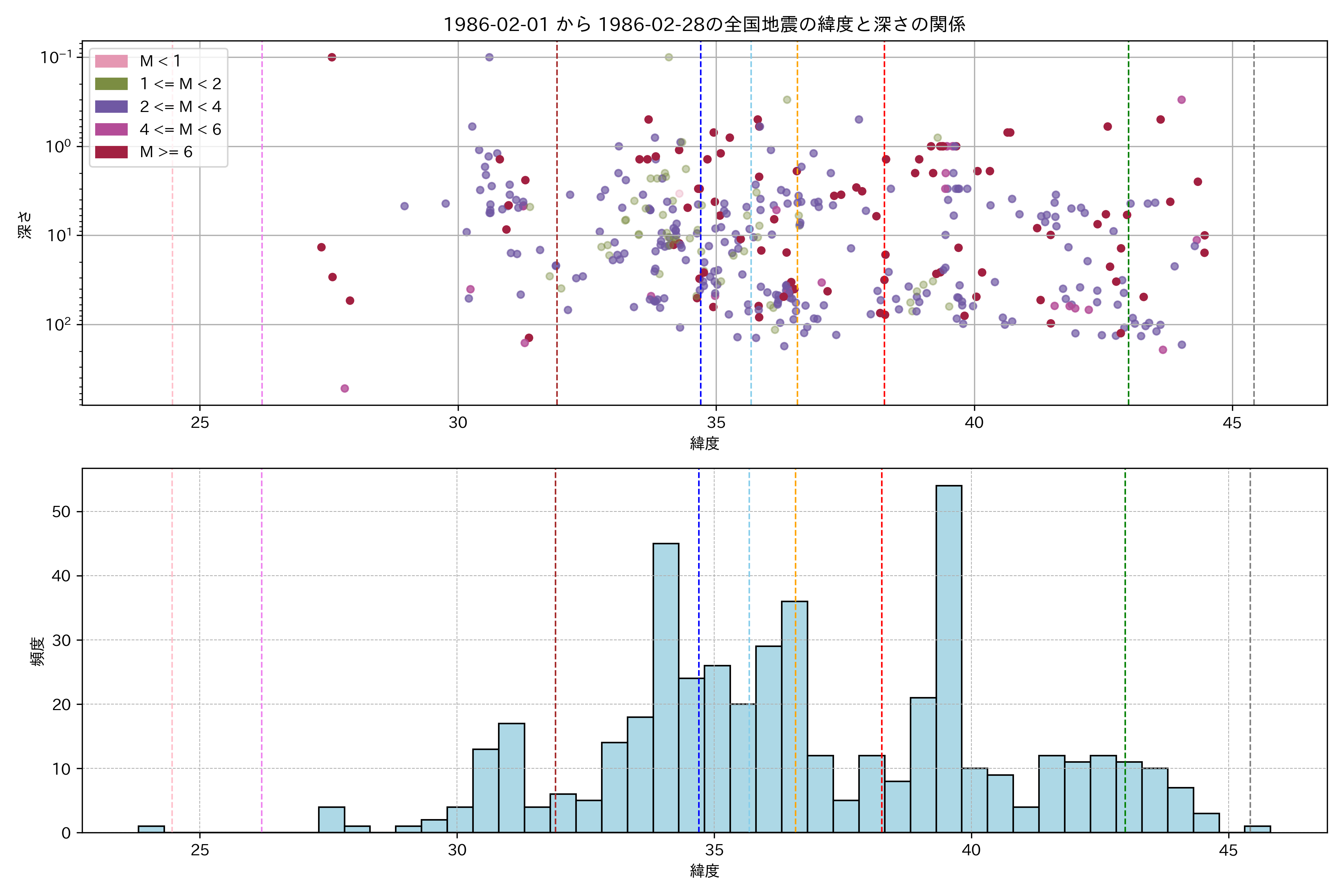 1986年2月 マグニチュード 0 以上震源マップ
