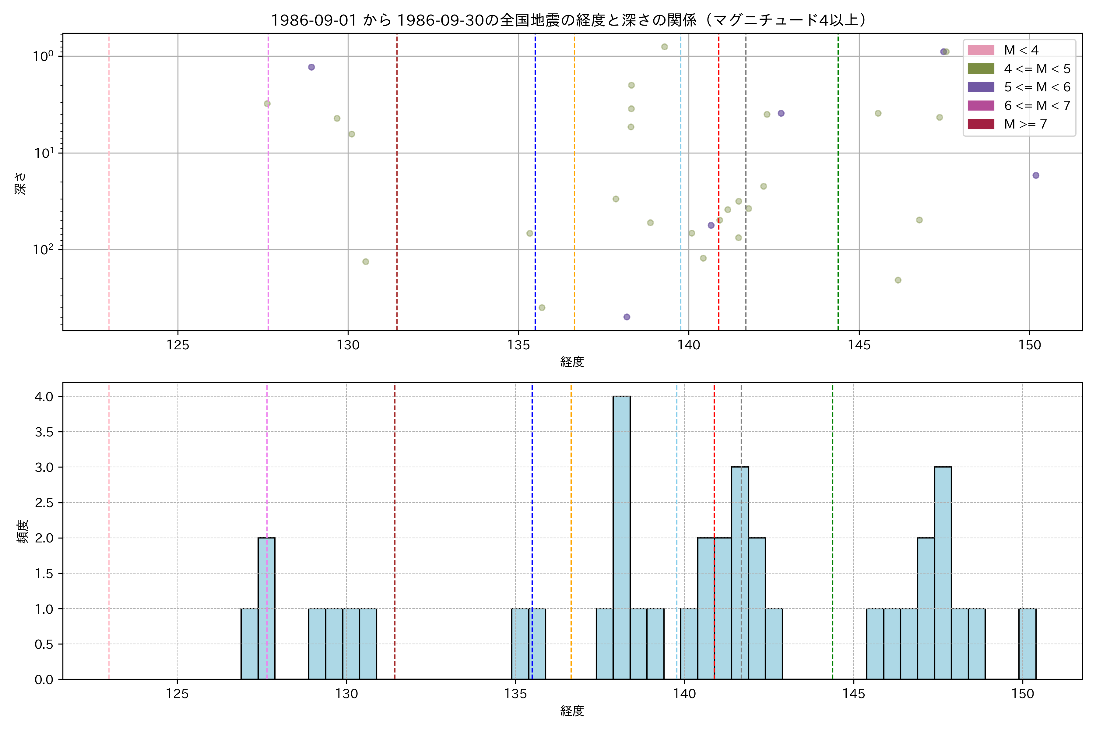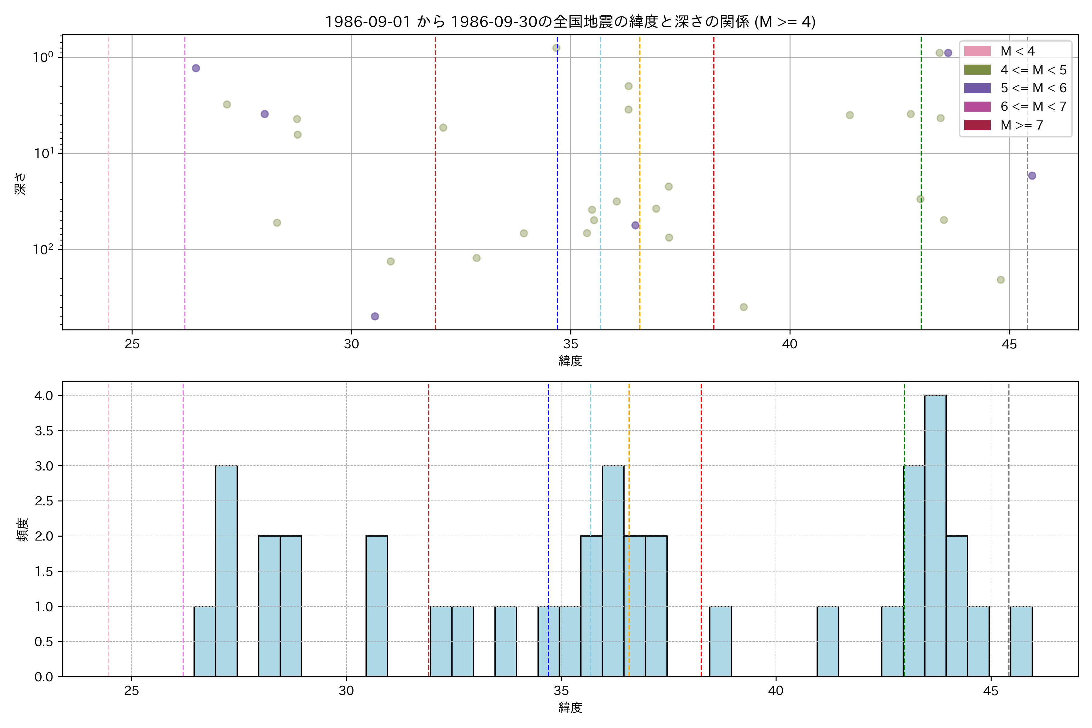 1986年9月 マグニチュード 4 以上震源マップ