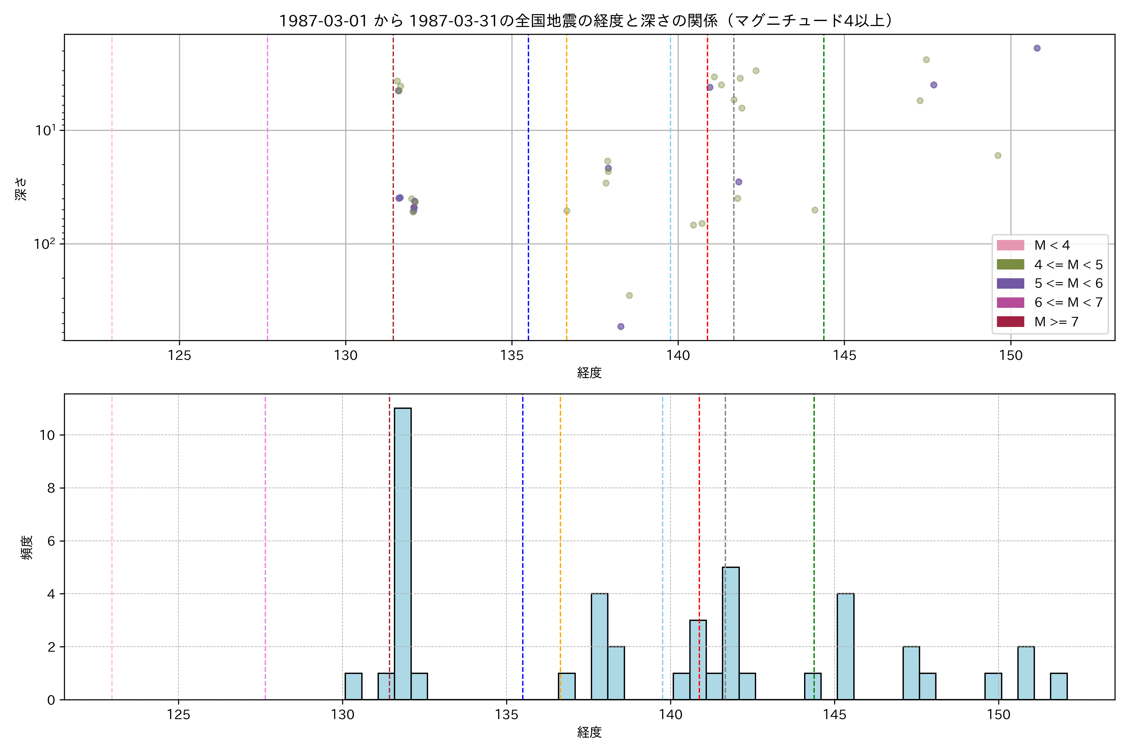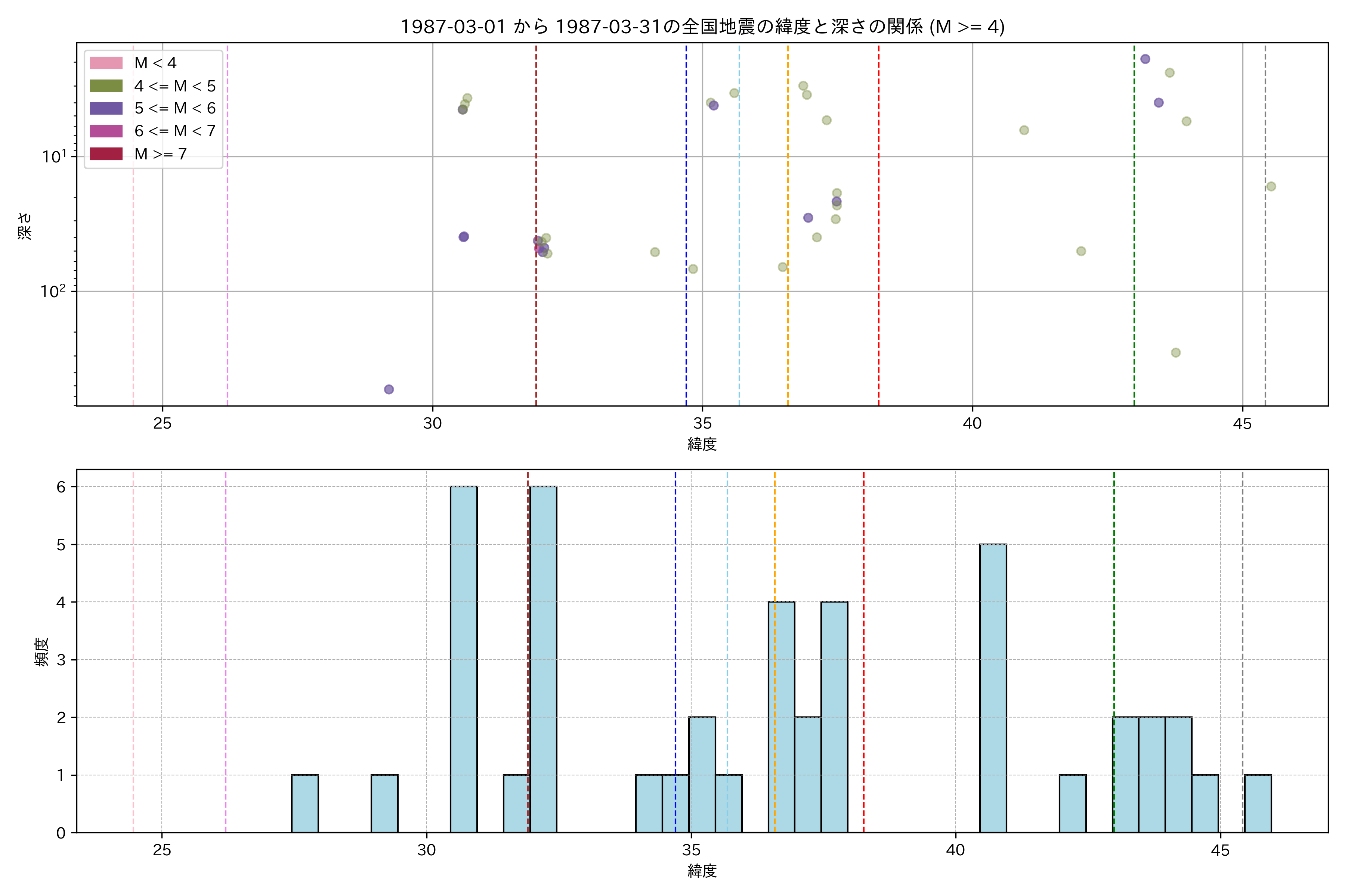 1987年3月 マグニチュード 4 以上震源マップ