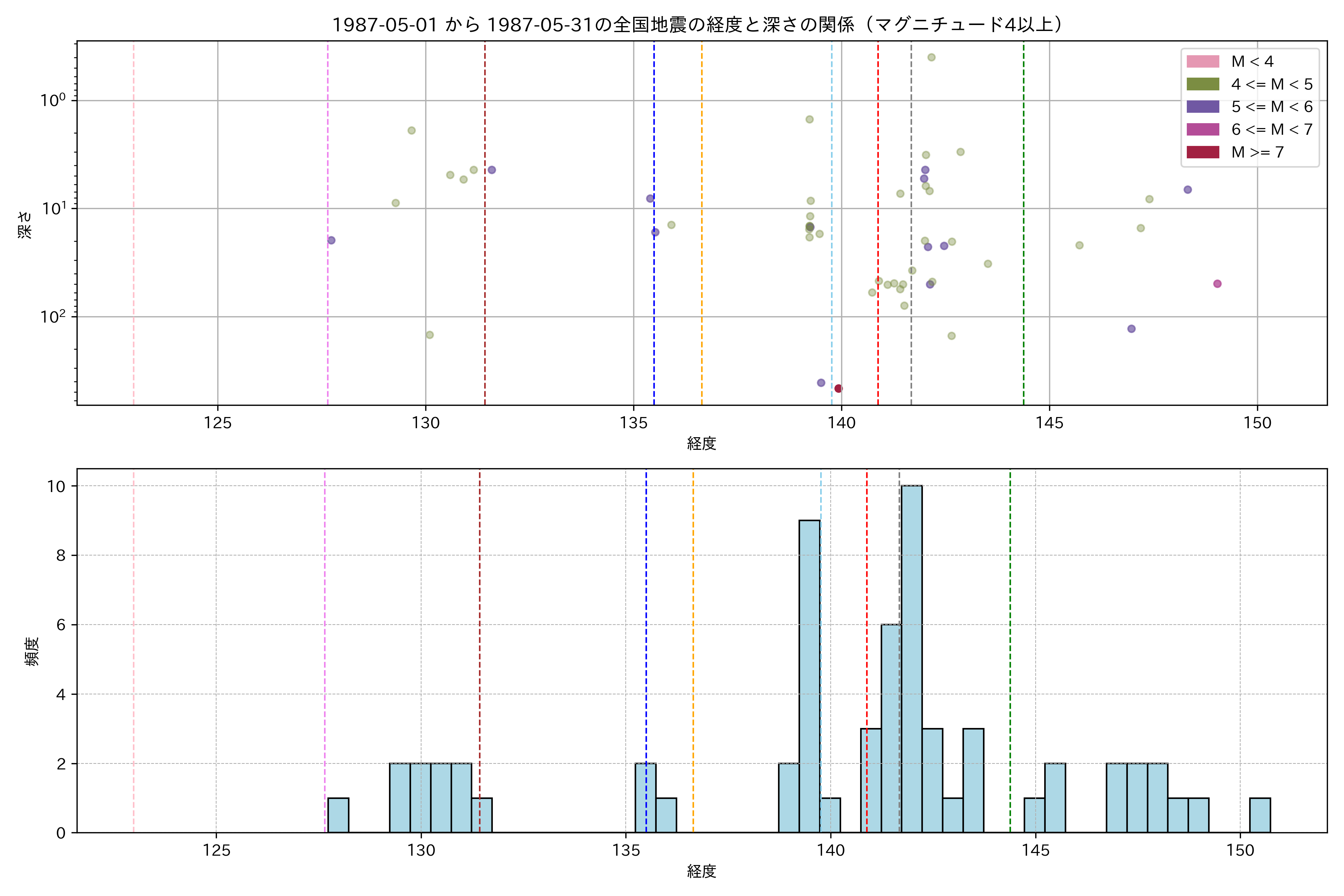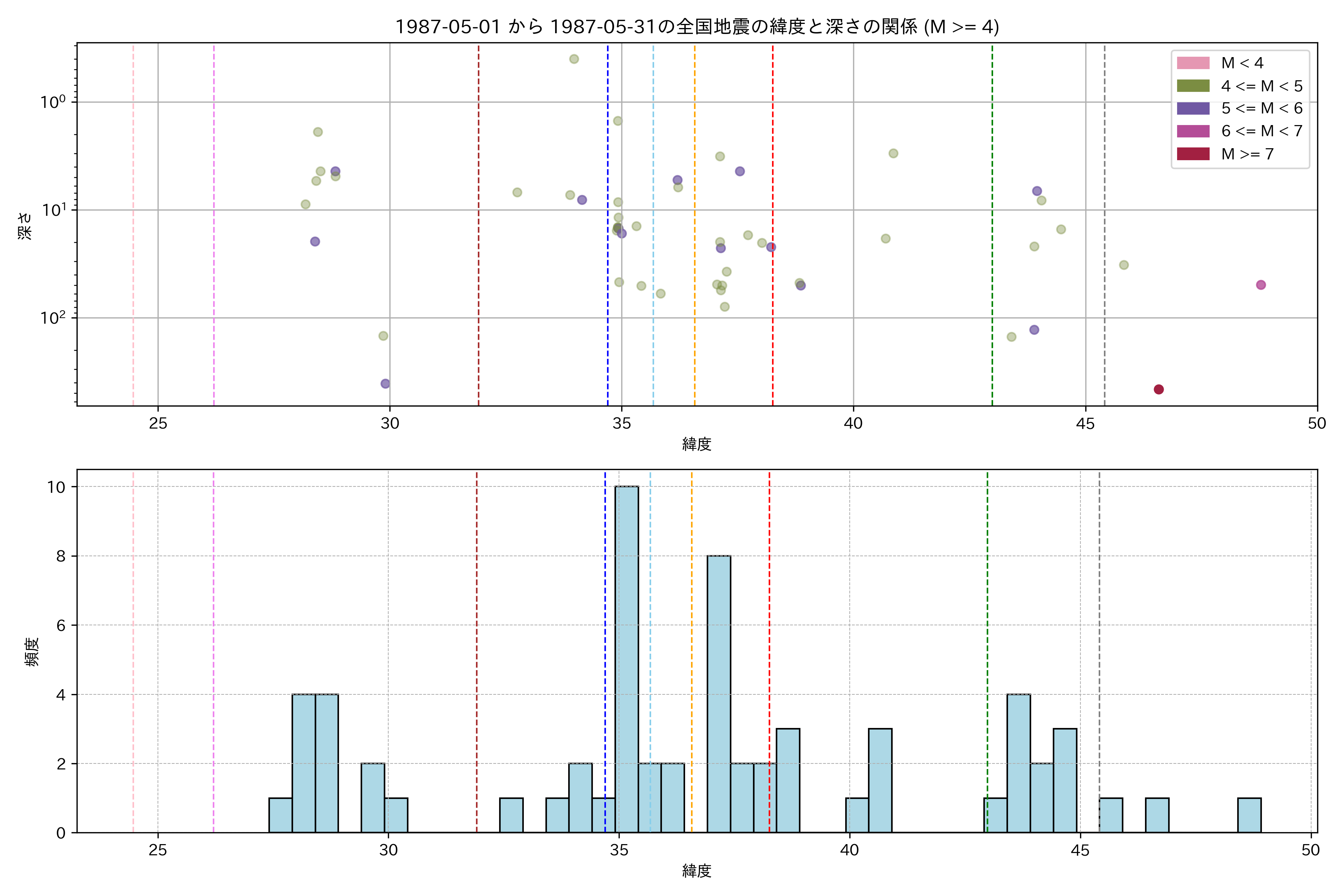1987年5月 マグニチュード 4 以上震源マップ