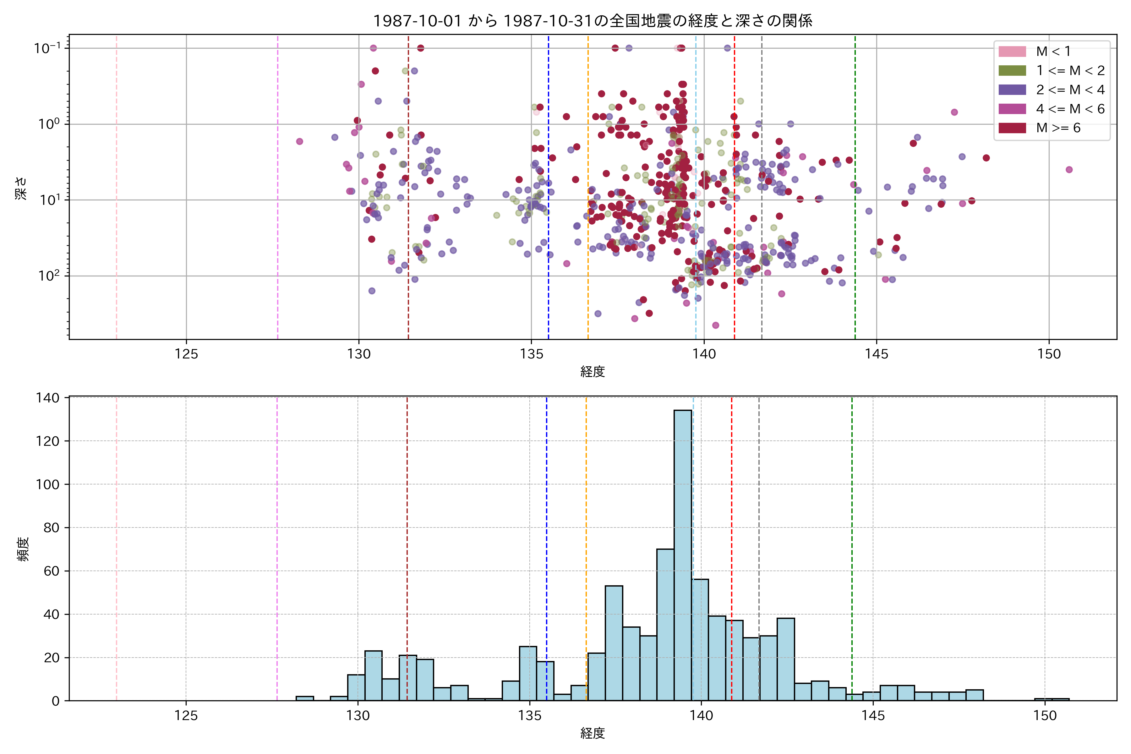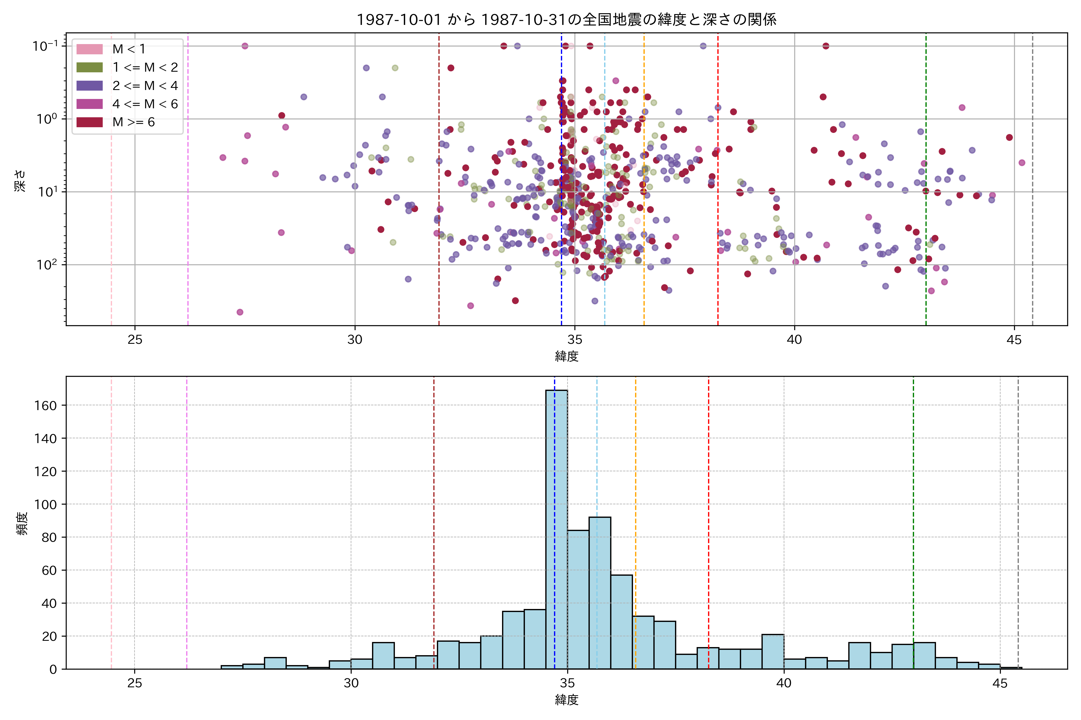 1987年10月 マグニチュード 0 以上震源マップ