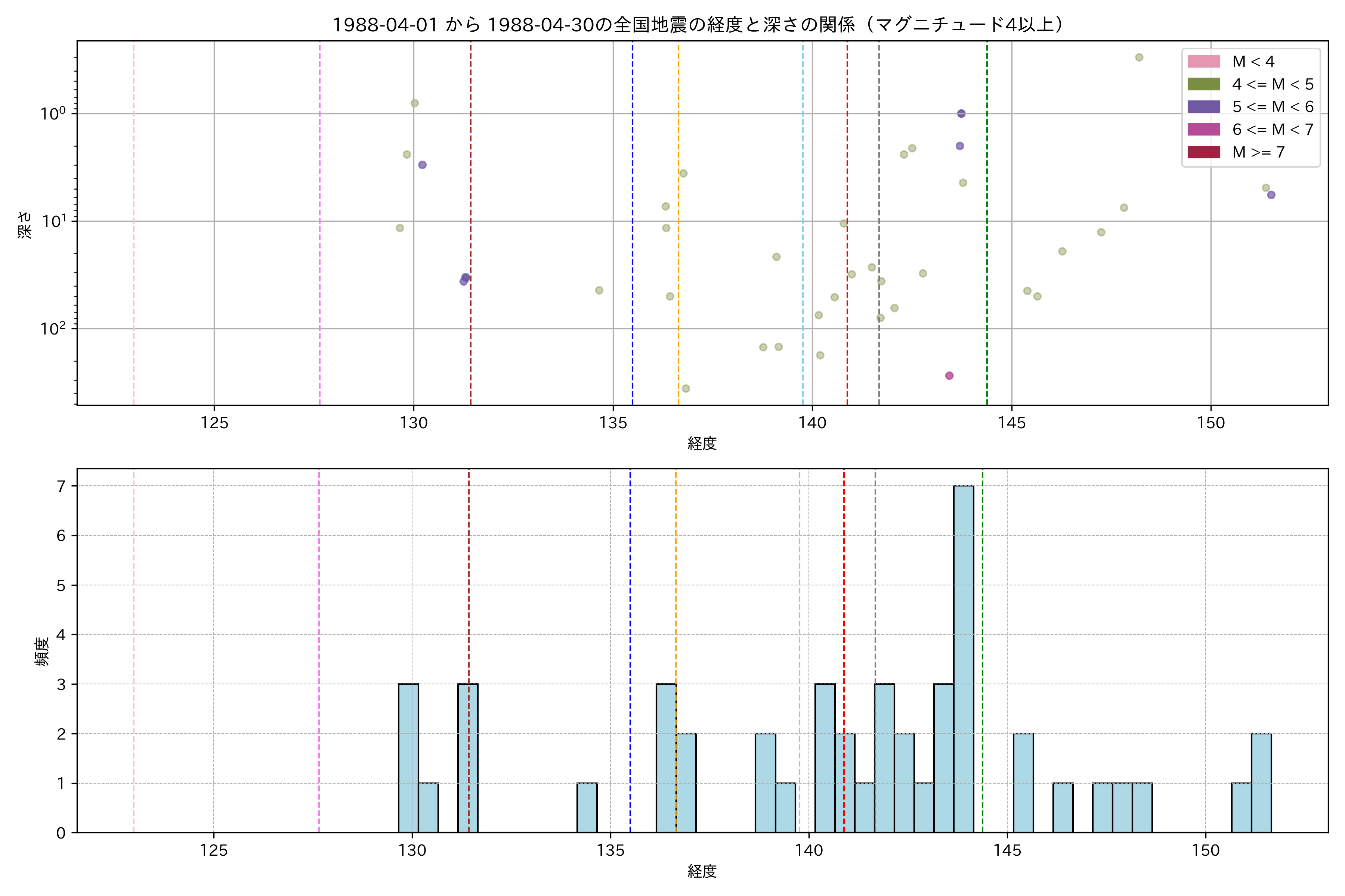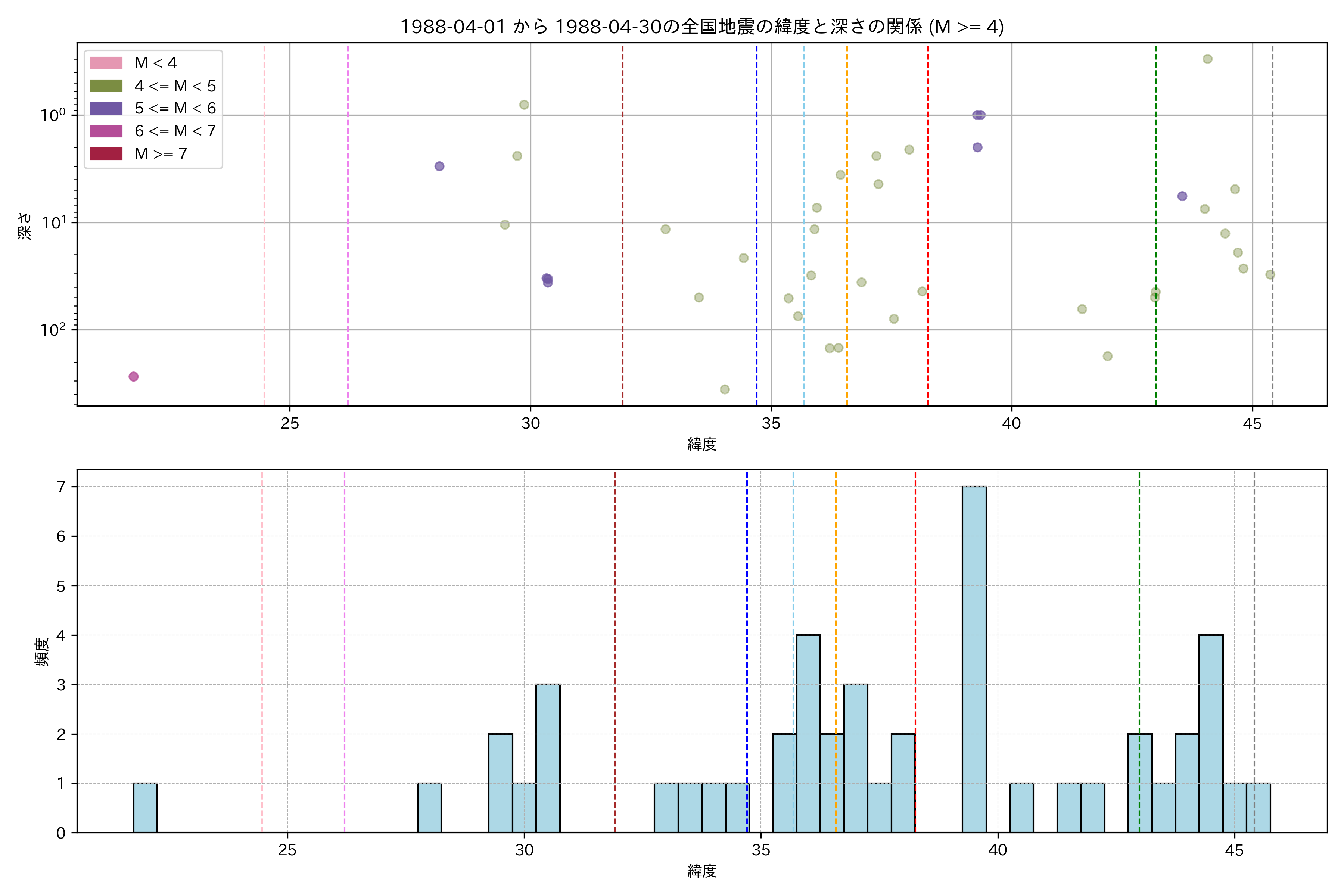 1988年4月 マグニチュード 4 以上震源マップ