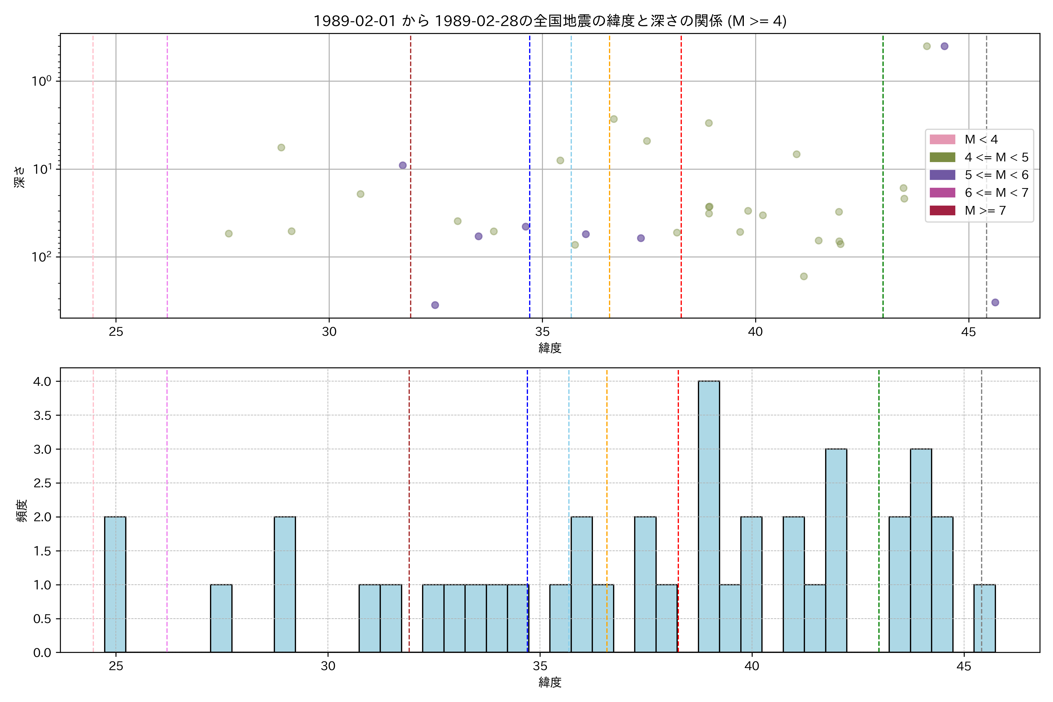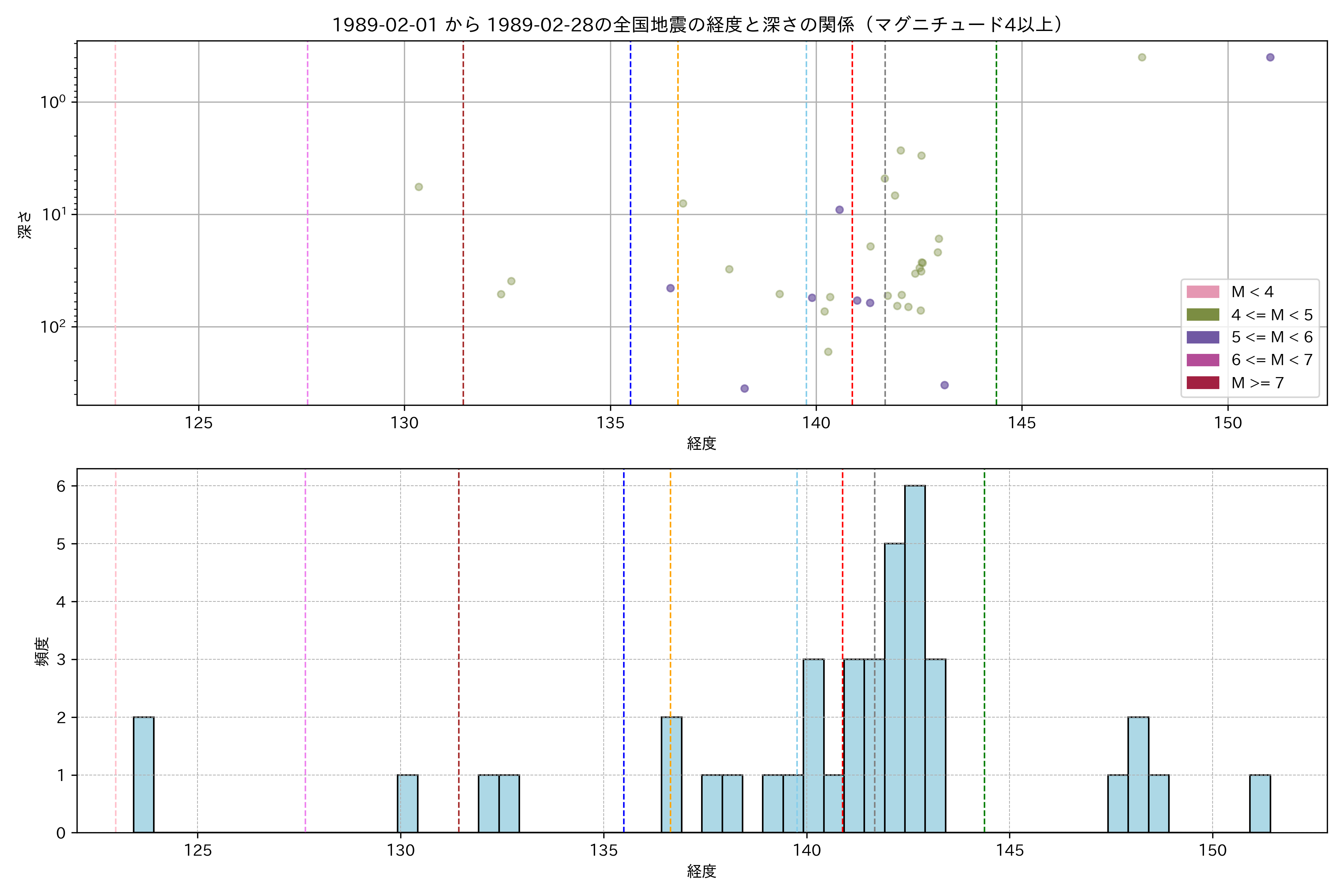 1989年2月 マグニチュード 4 以上震源マップ