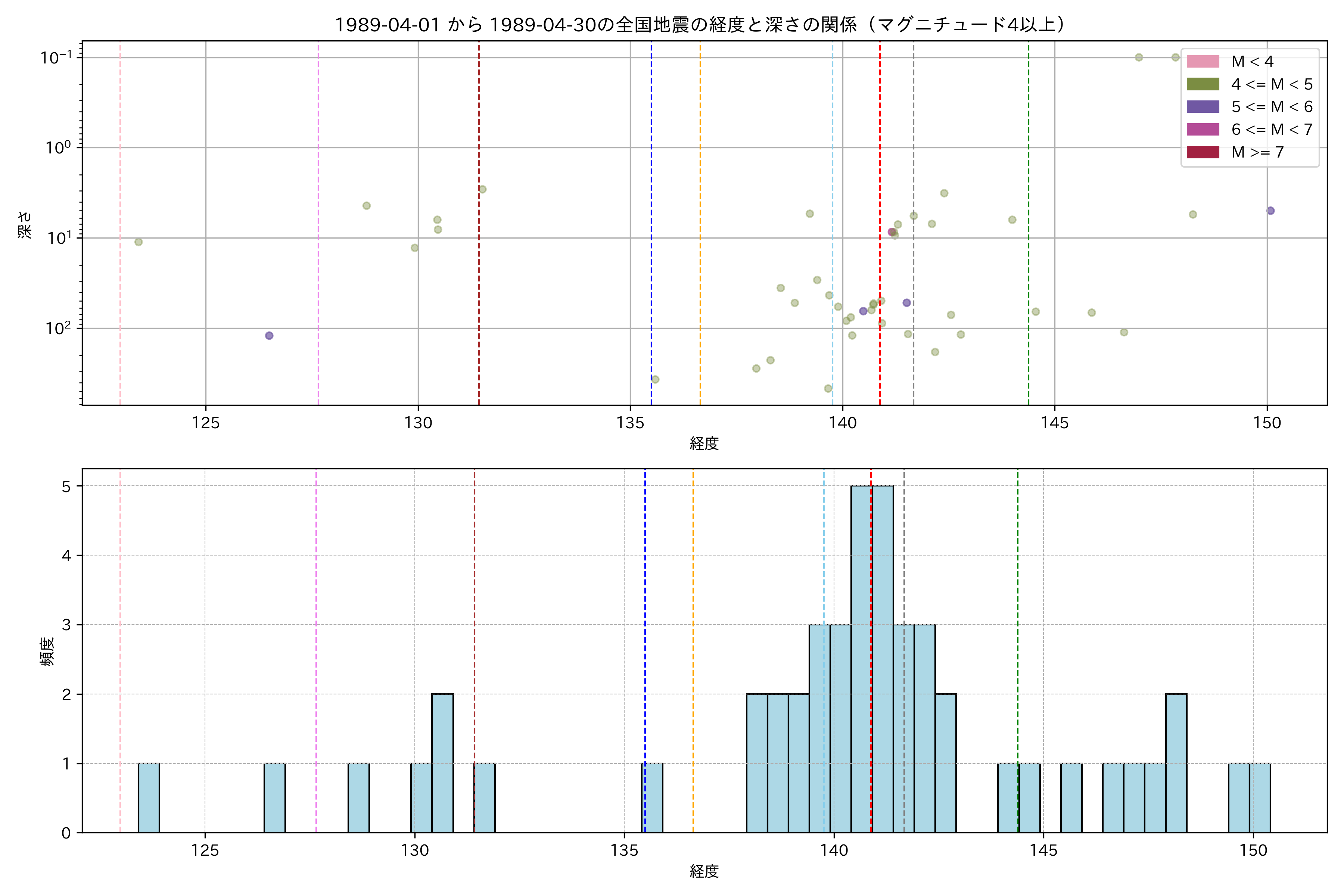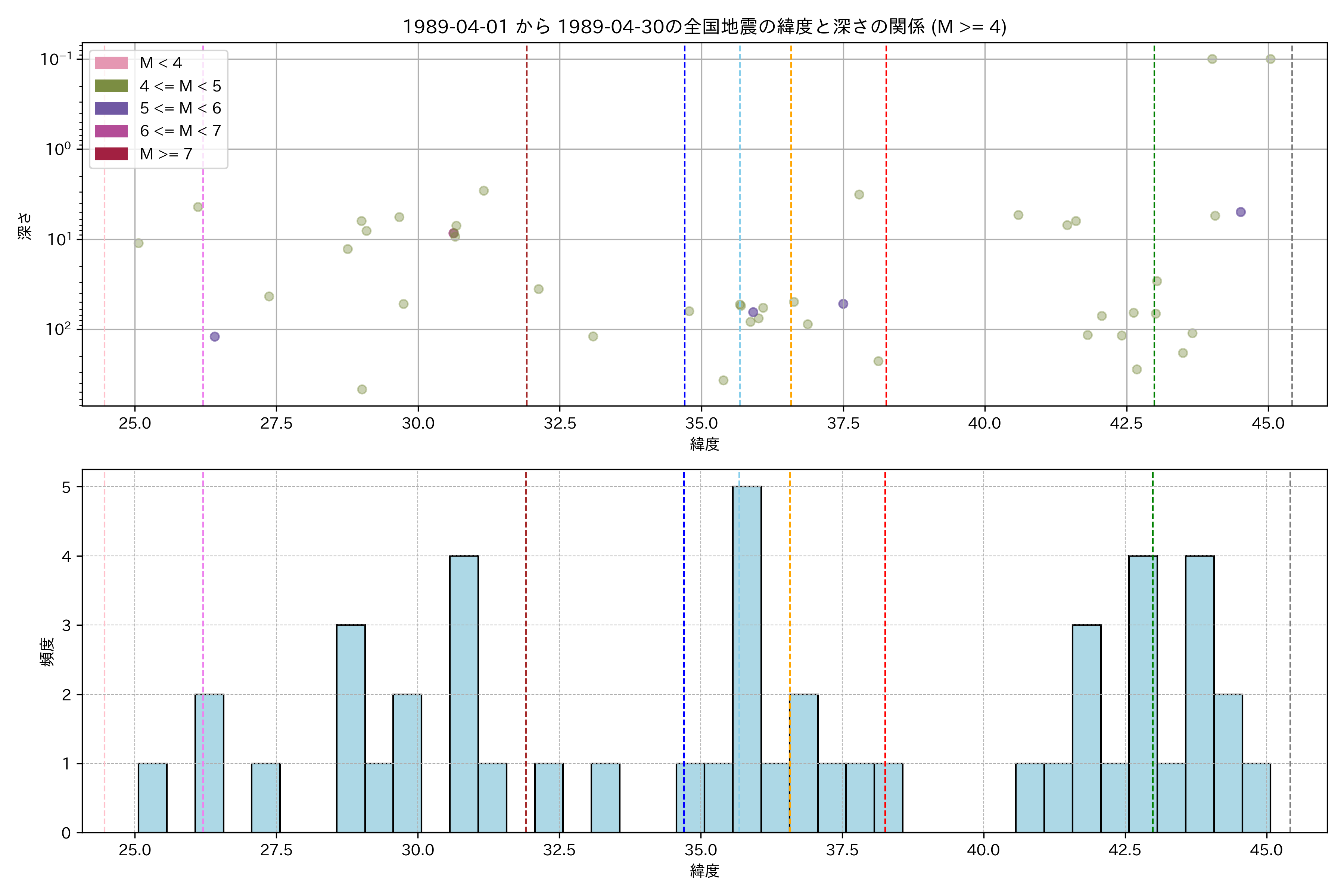1989年4月 マグニチュード 4 以上震源マップ