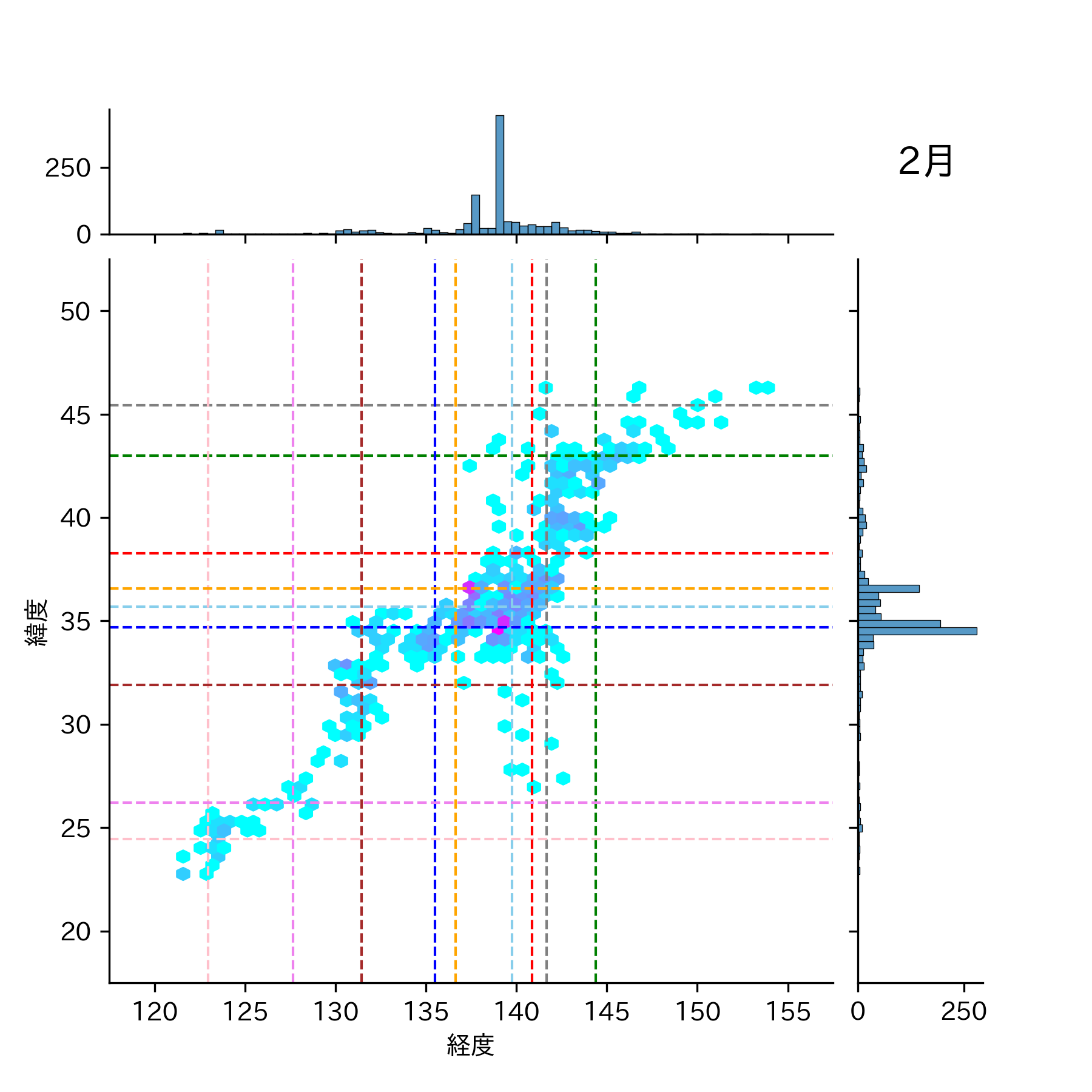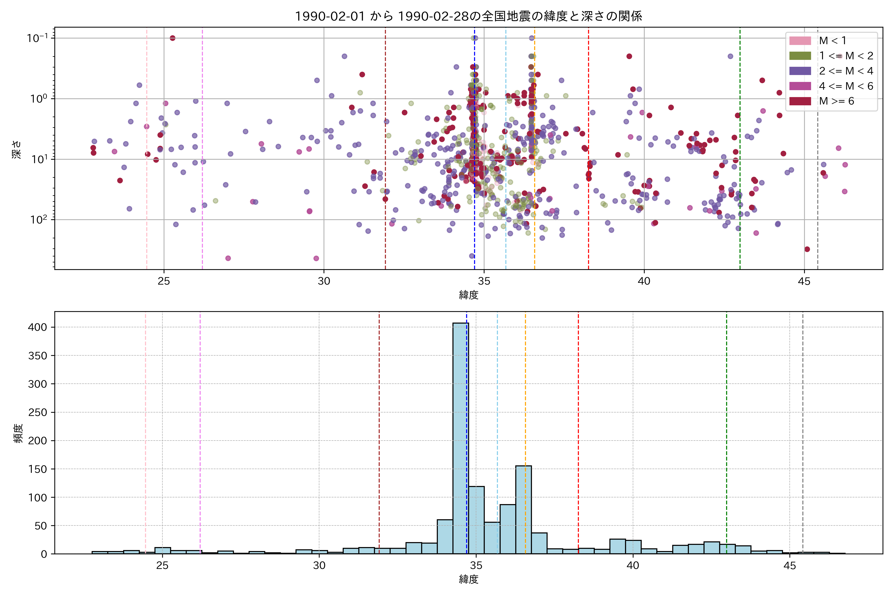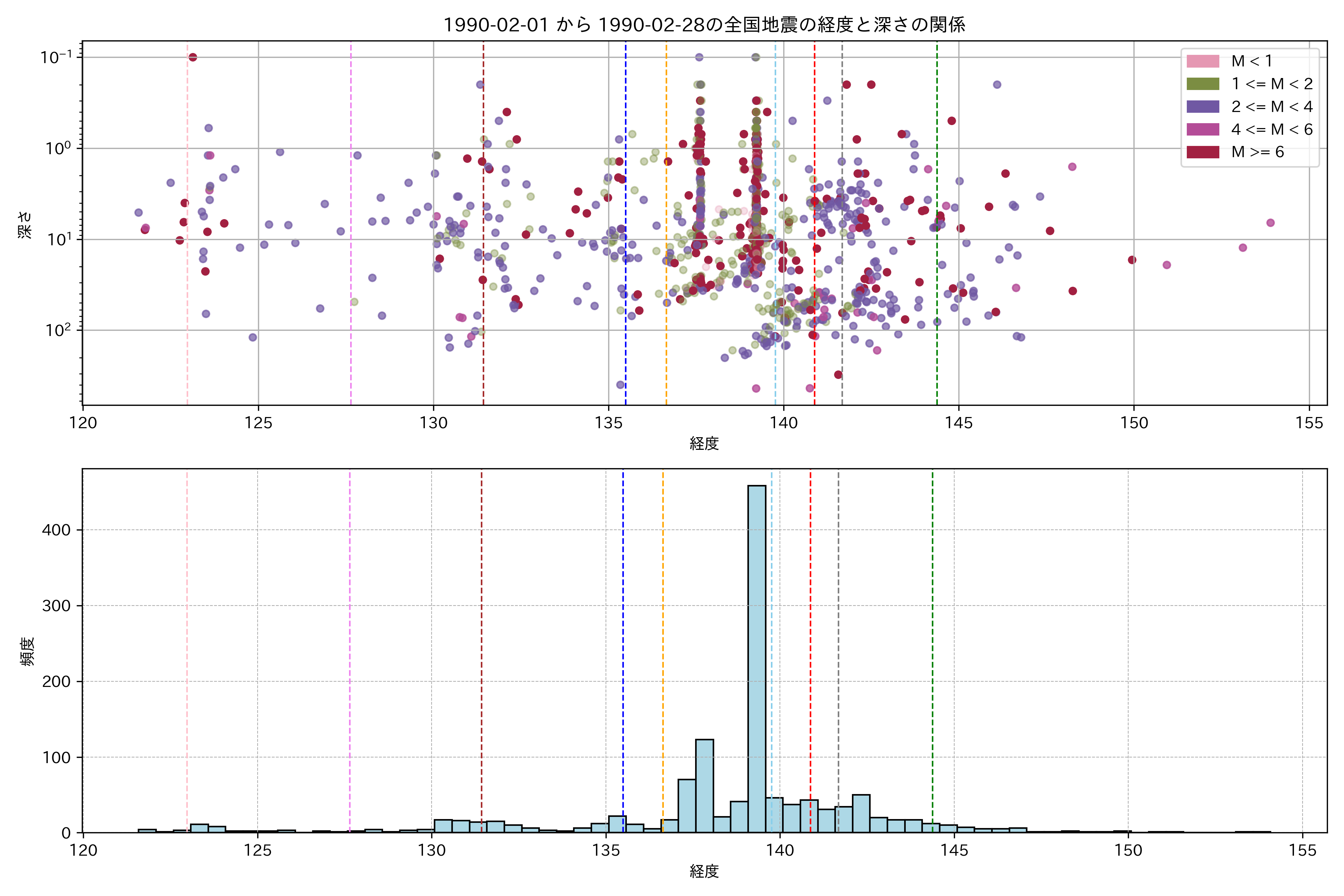 1990年2月 マグニチュード 0 以上震源マップ