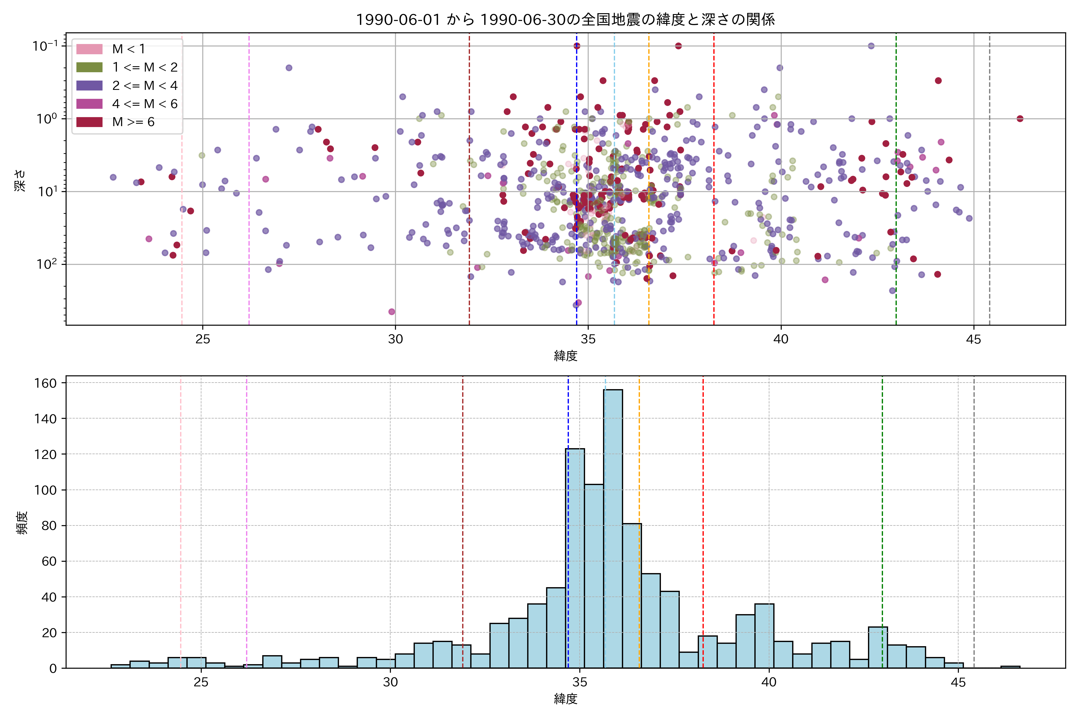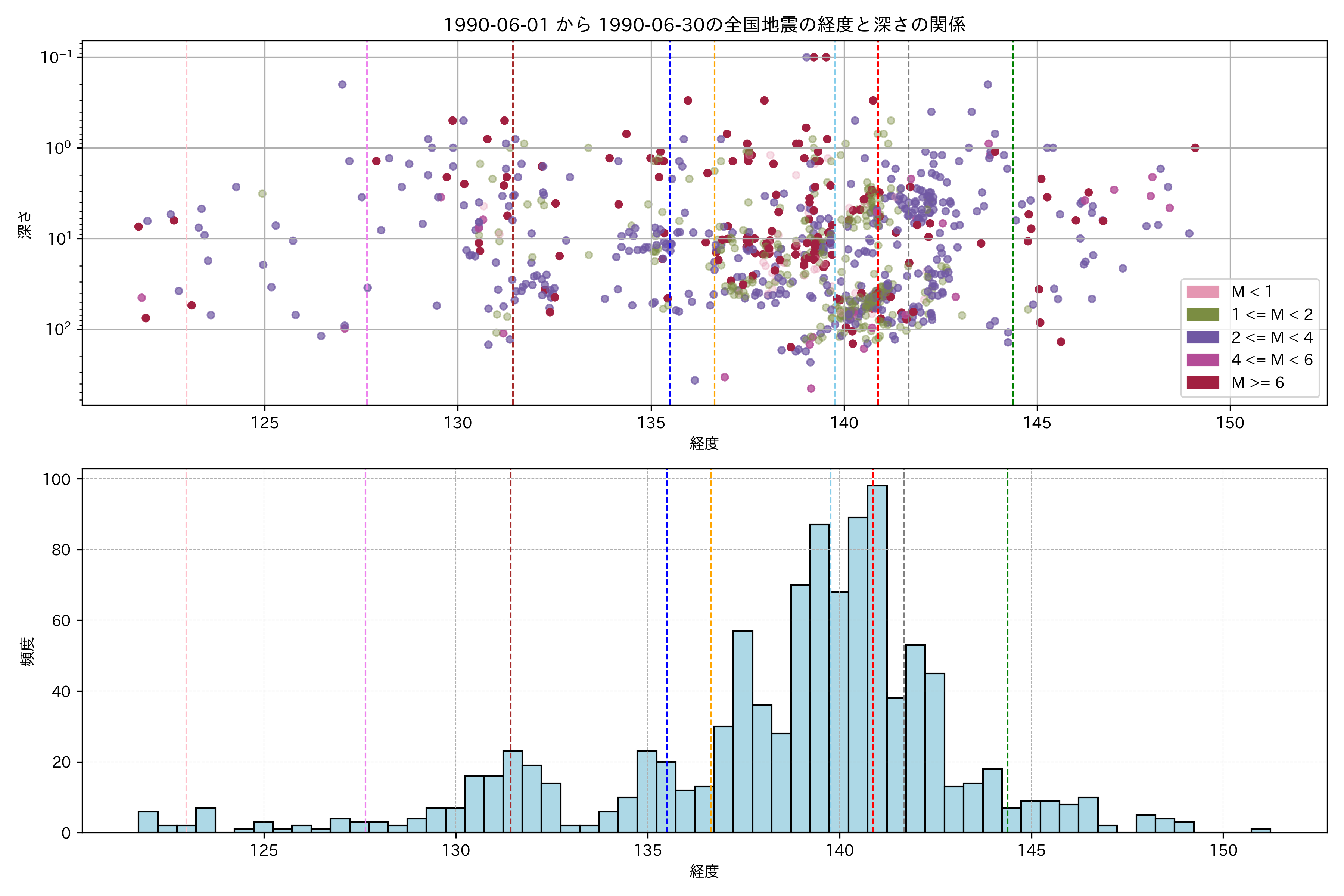 1990年6月 マグニチュード 0 以上震源マップ