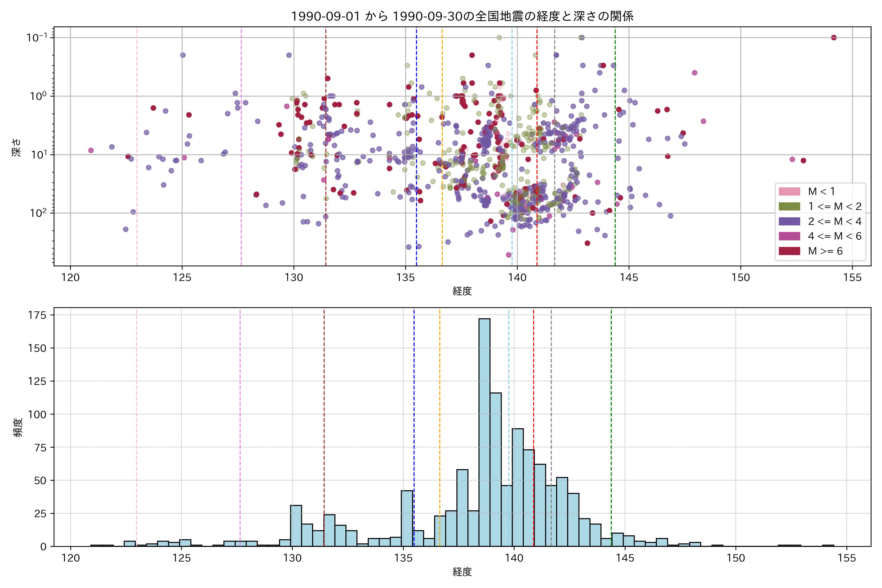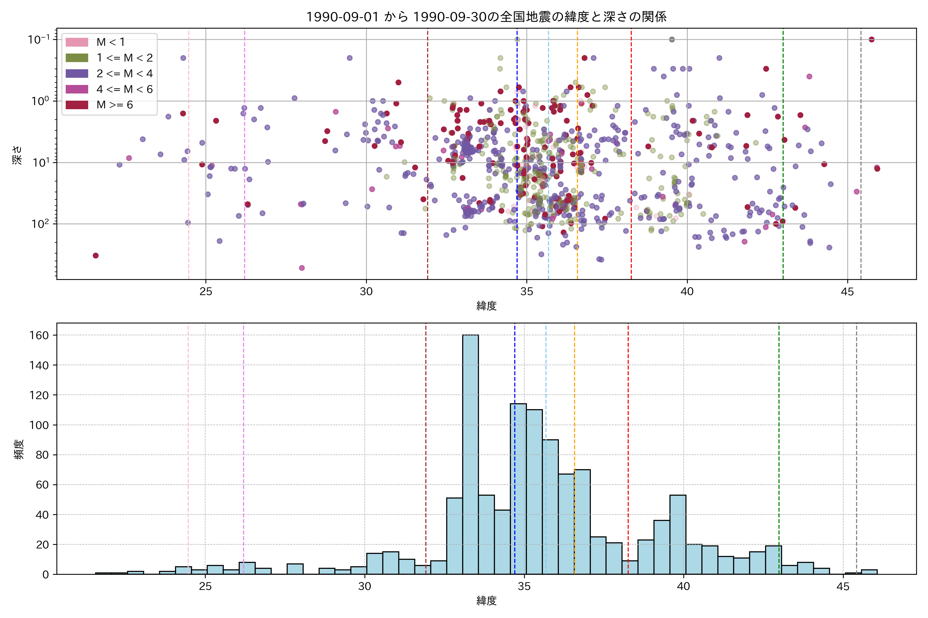 1990年9月 マグニチュード 0 以上震源マップ