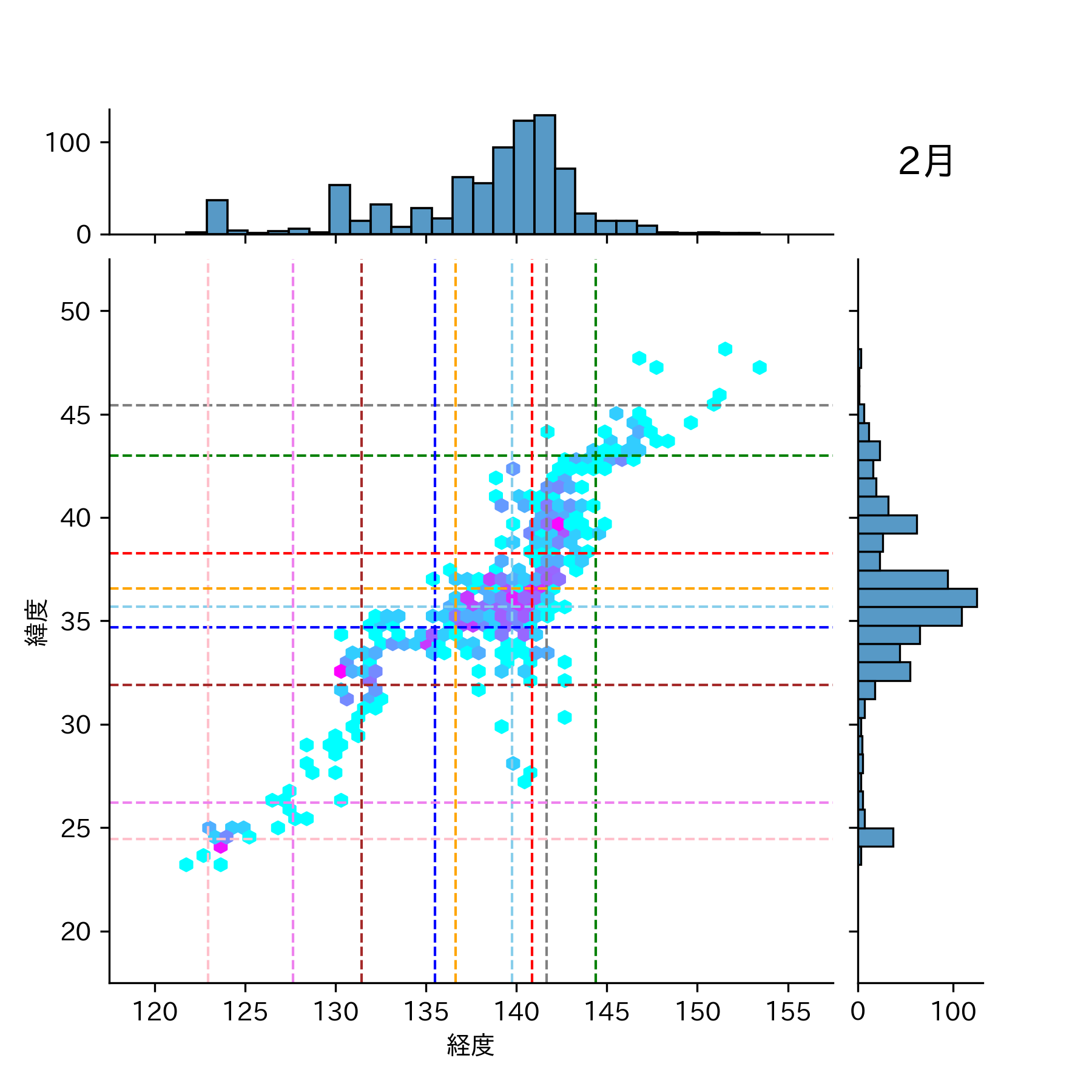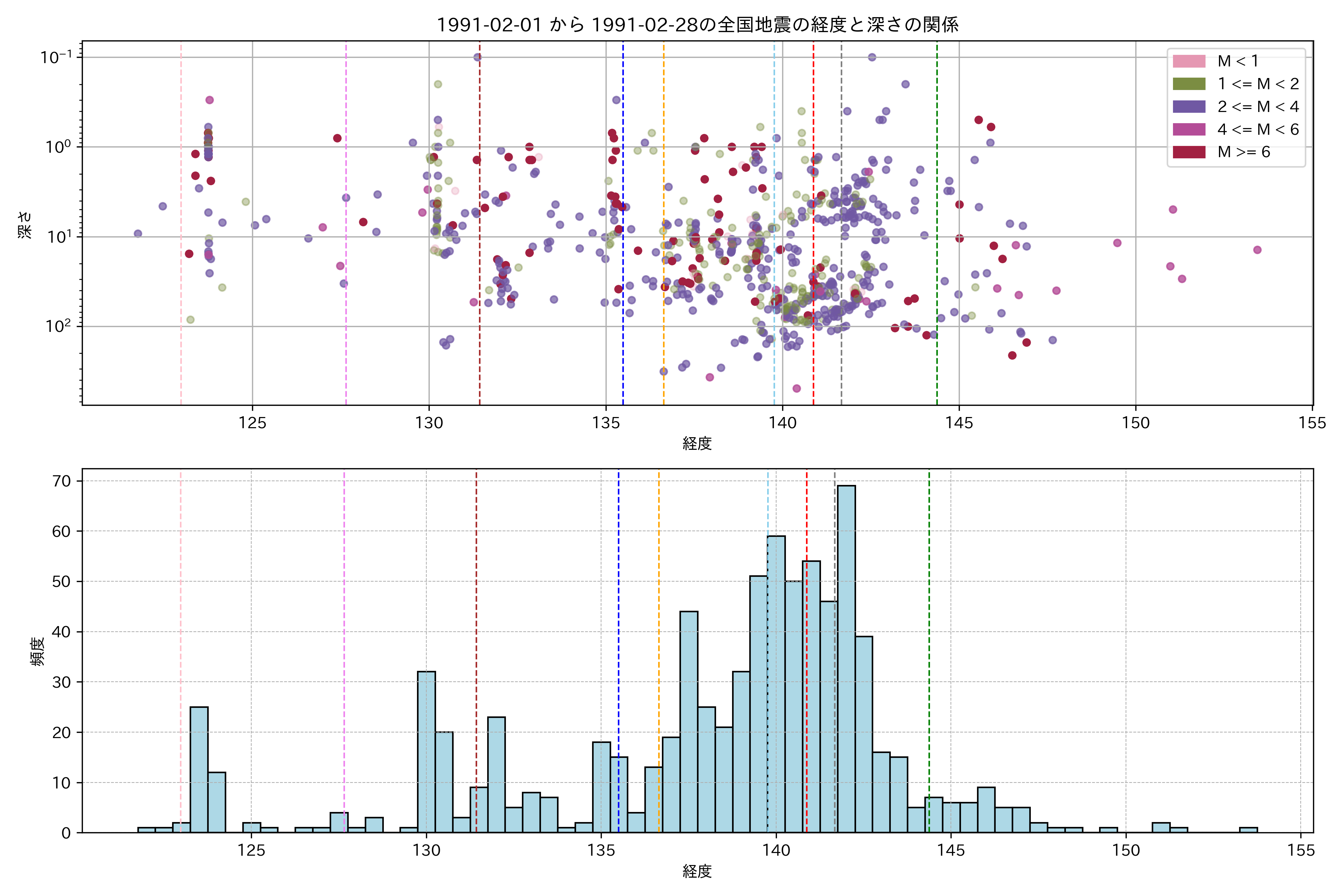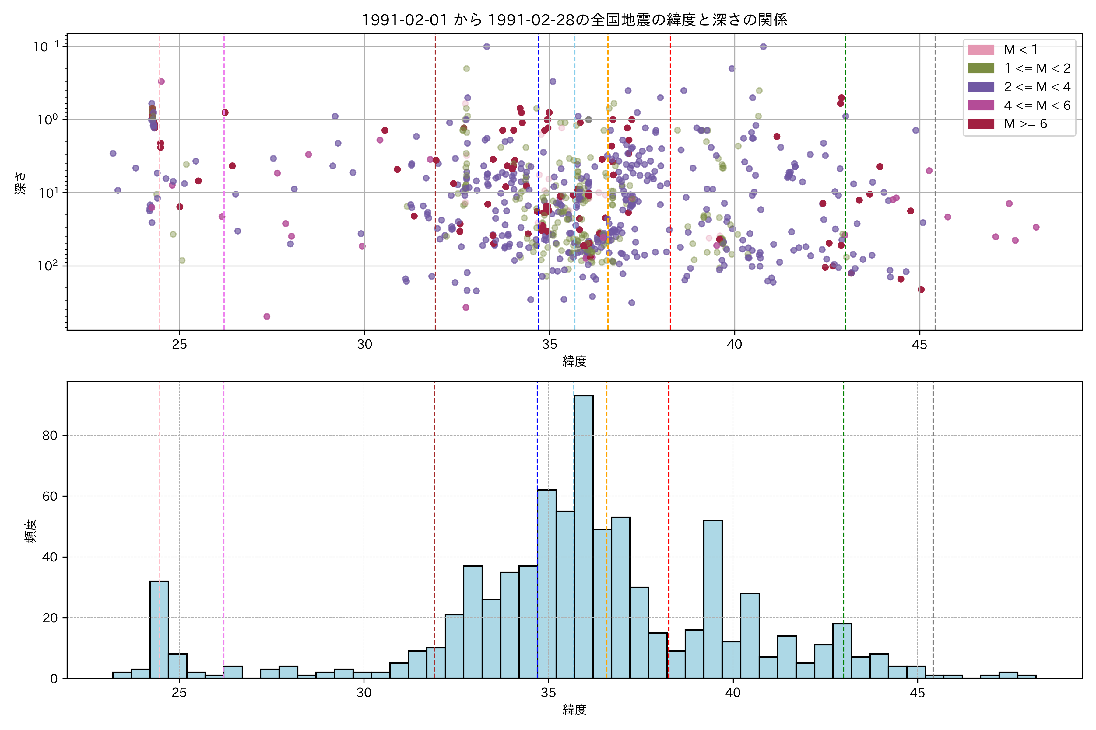 1991年2月 マグニチュード 0 以上震源マップ