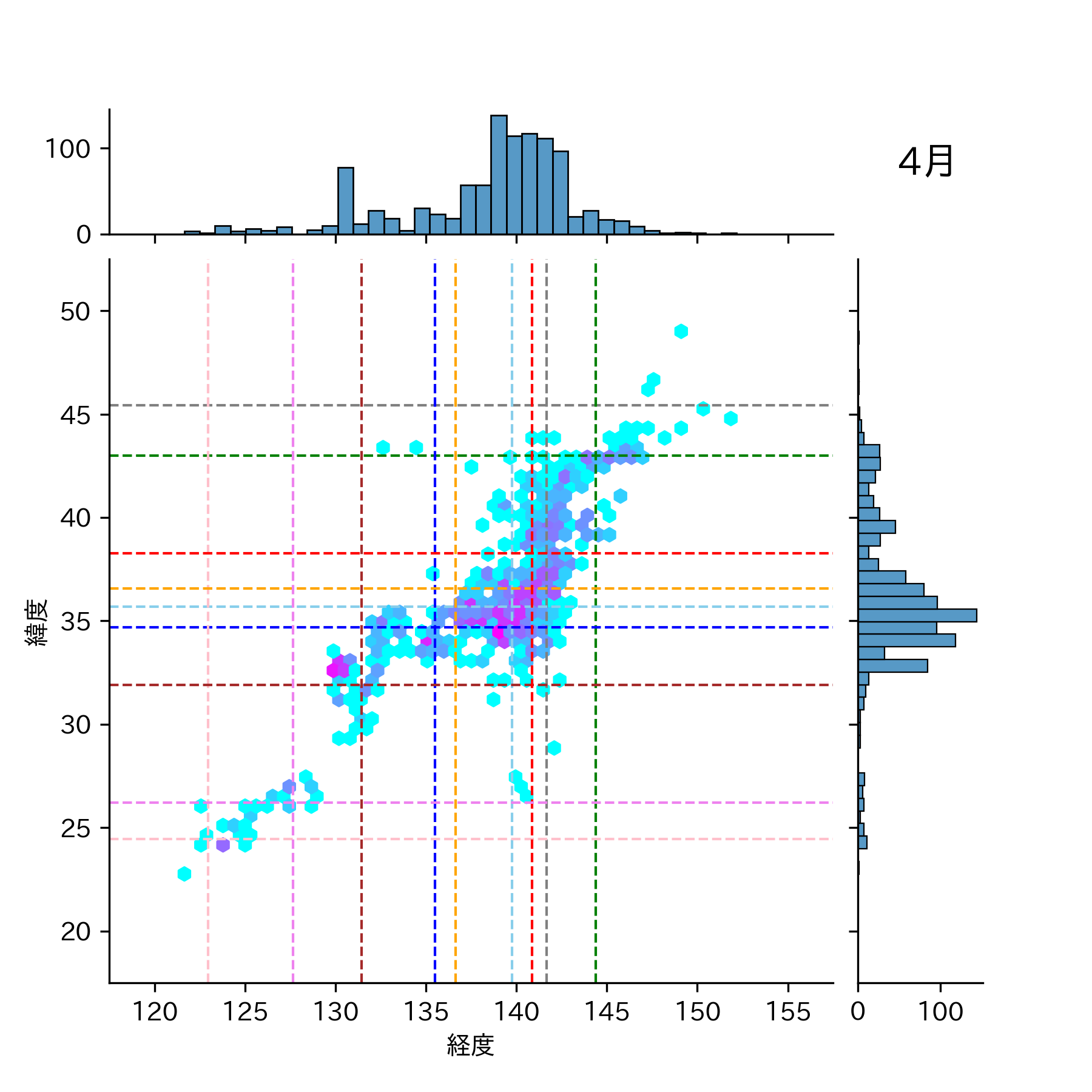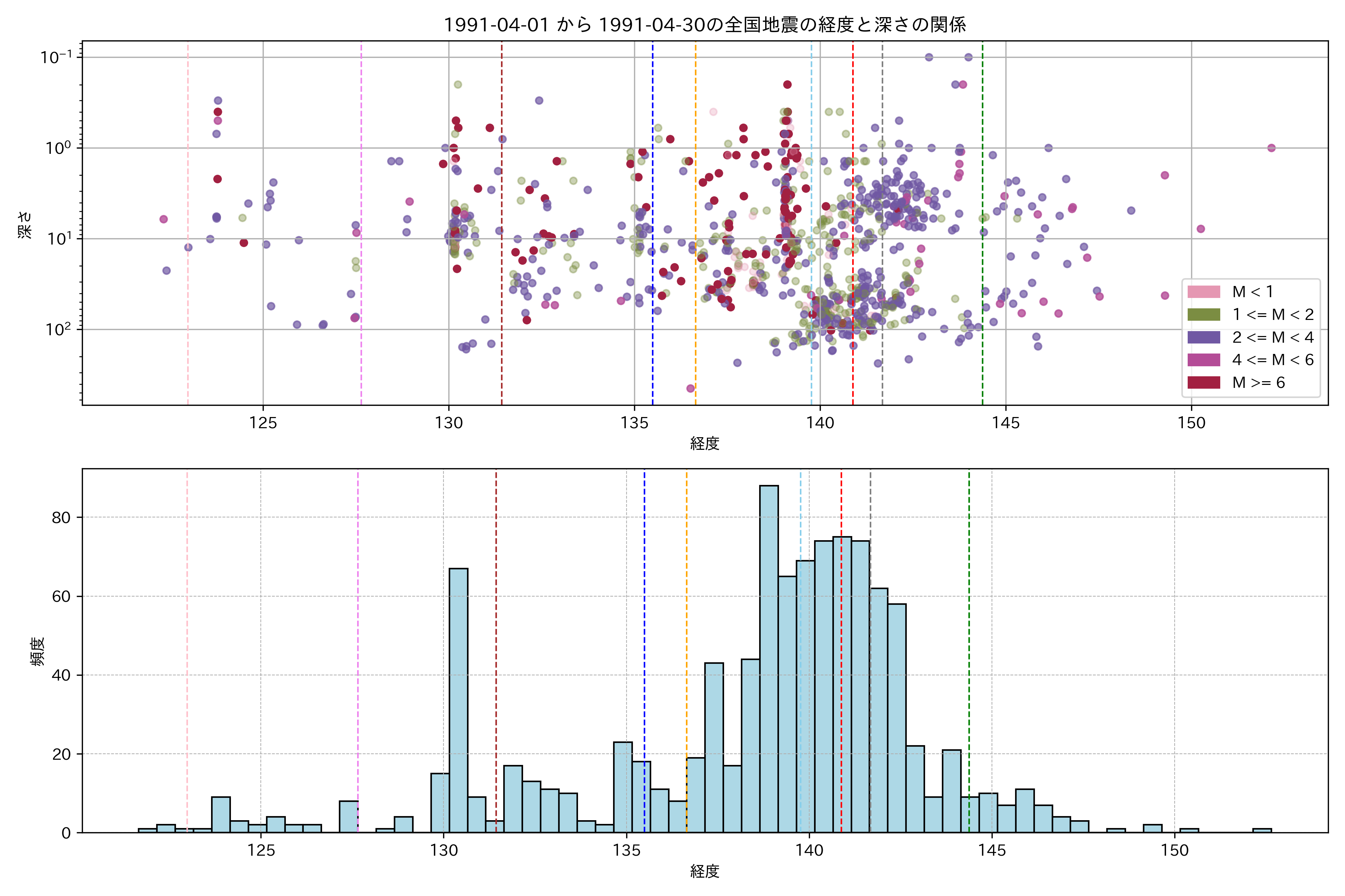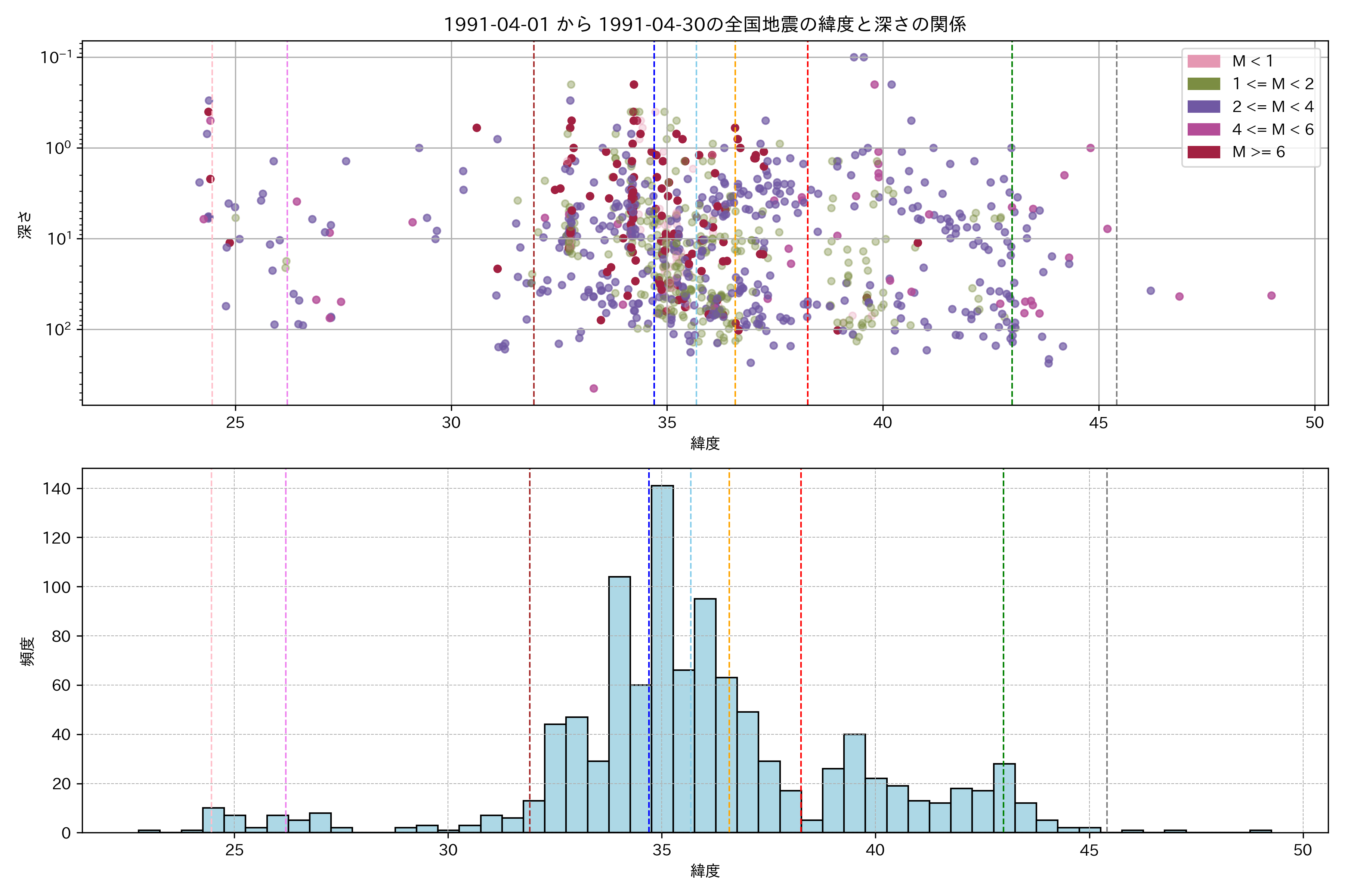 1991年4月 マグニチュード 0 以上震源マップ