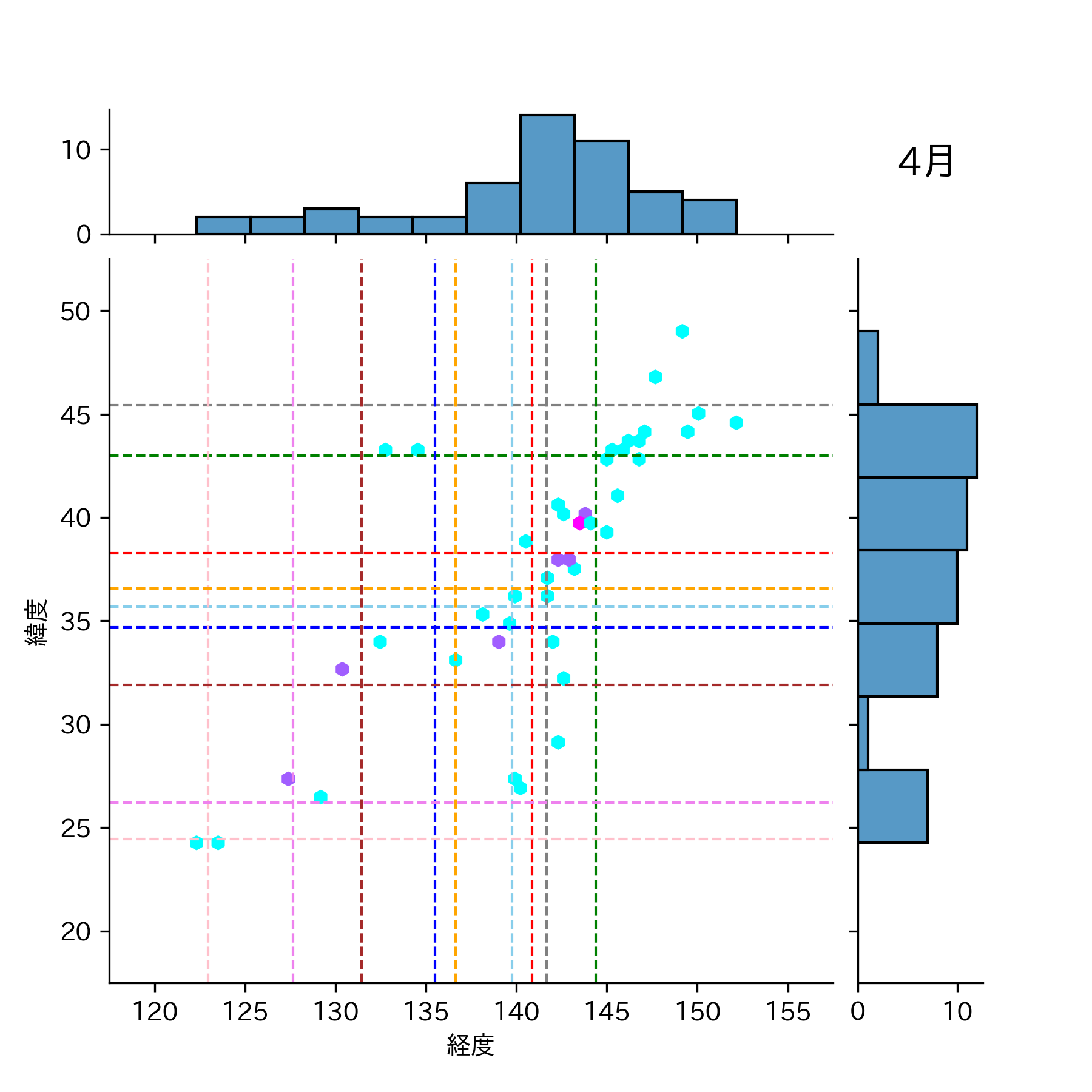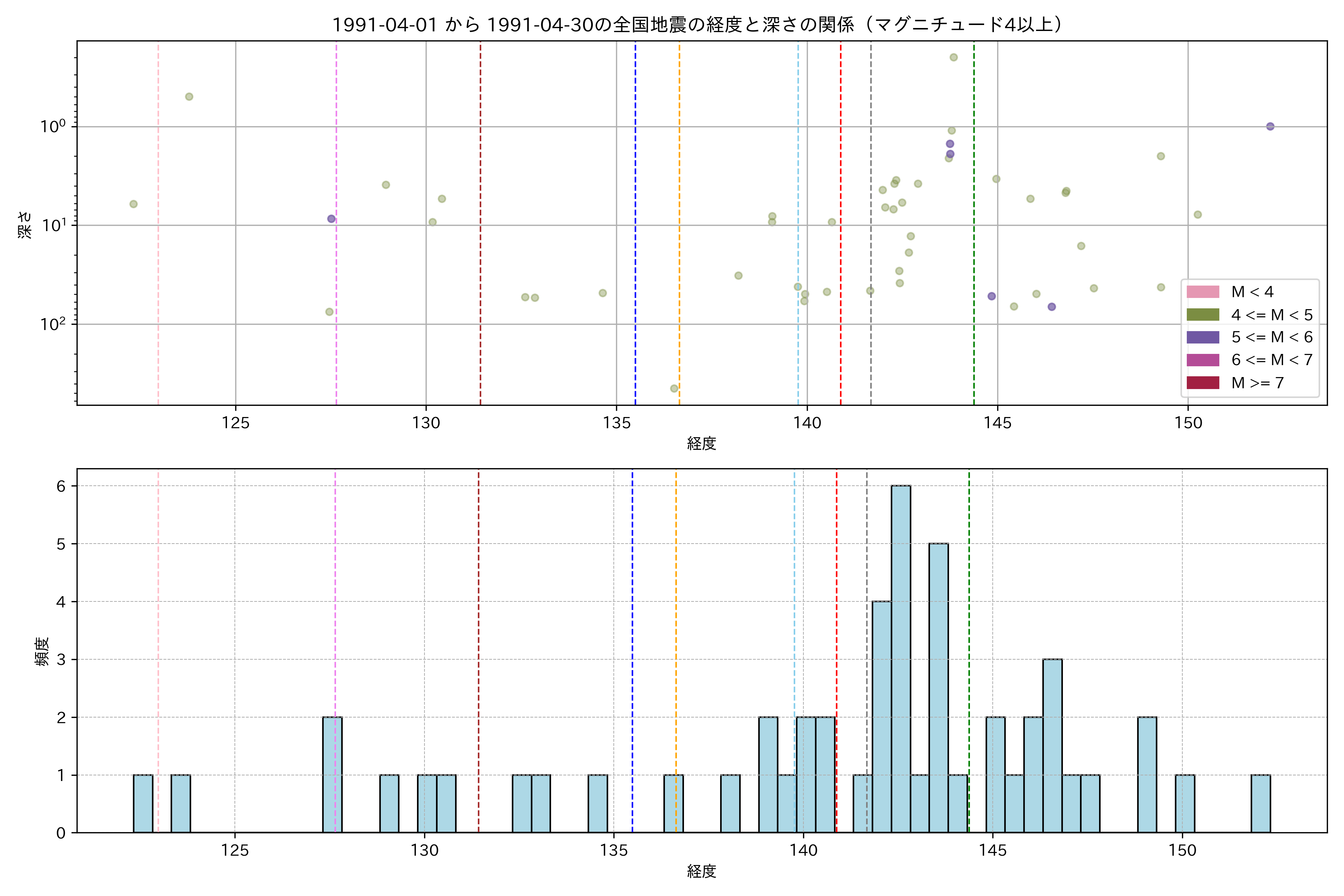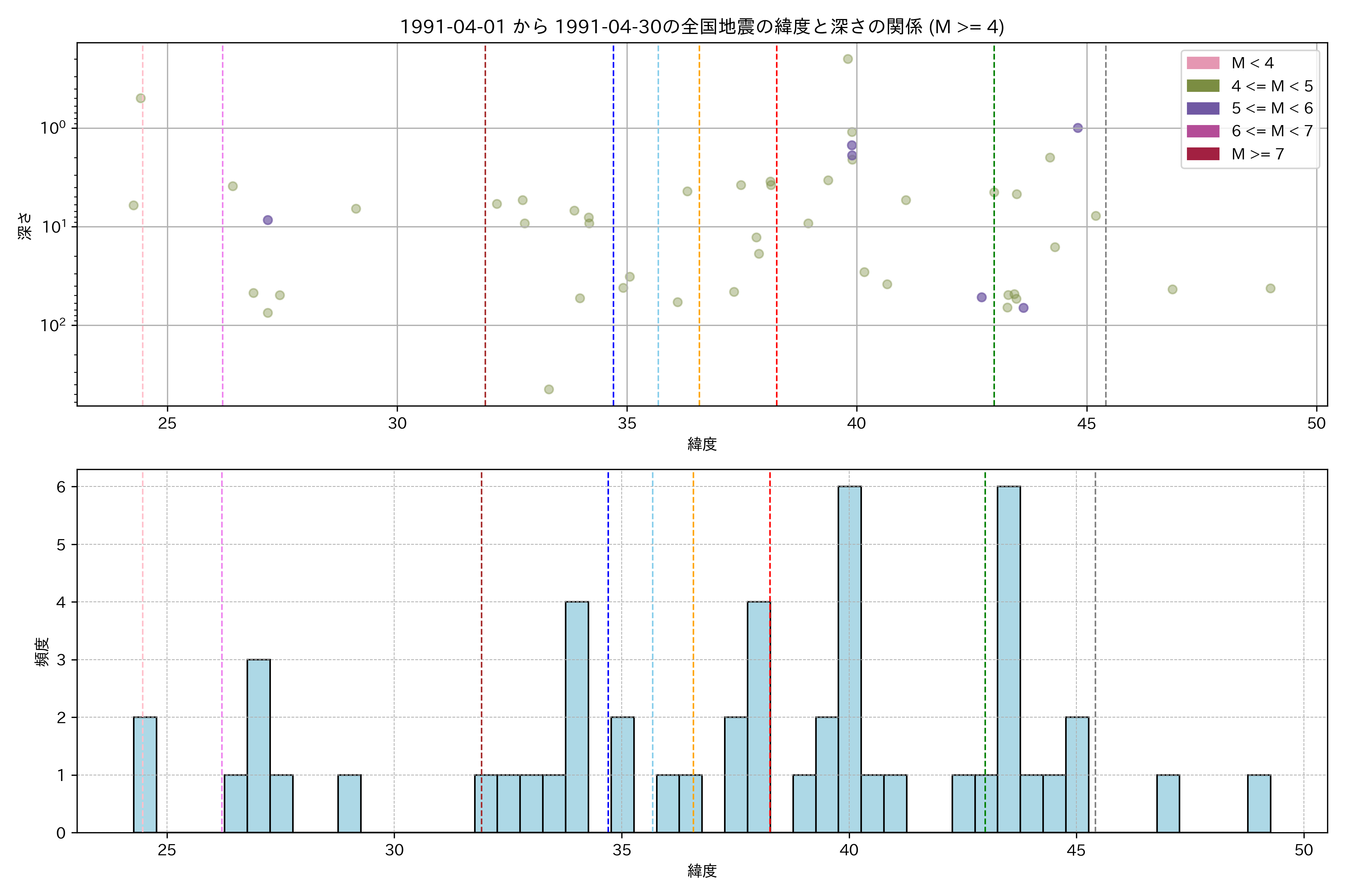 1991年4月 マグニチュード 4 以上震源マップ