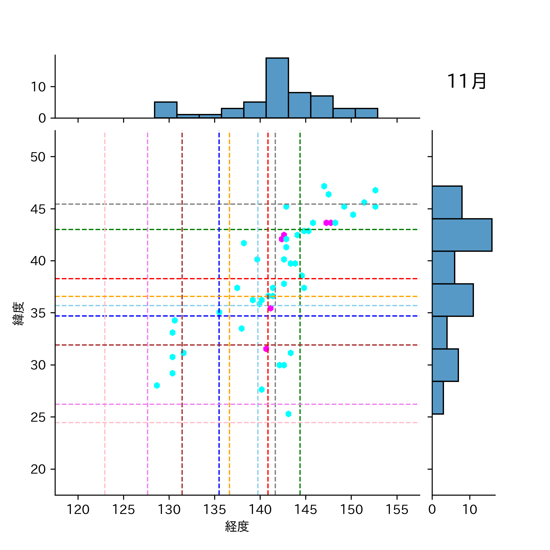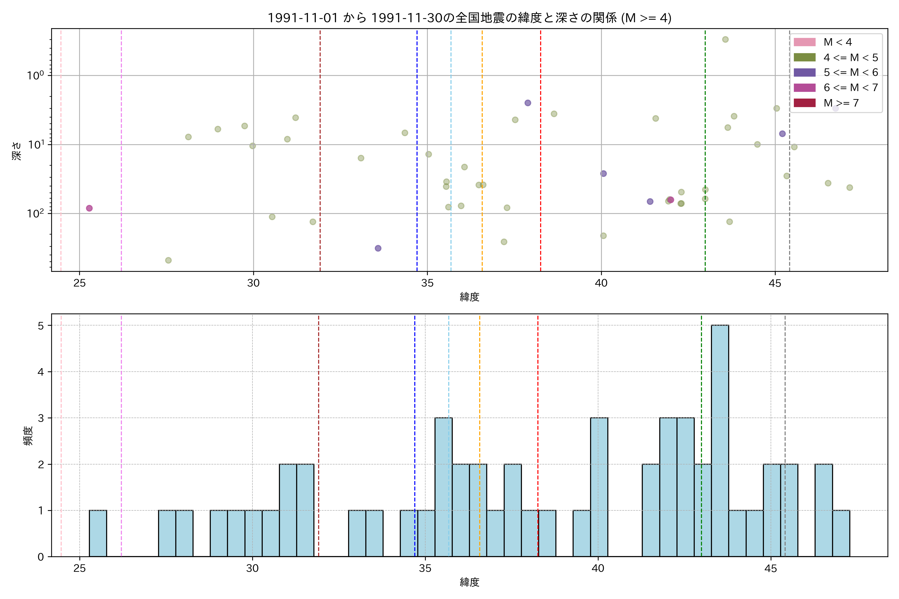 1991年11月 マグニチュード 4 以上震源マップ