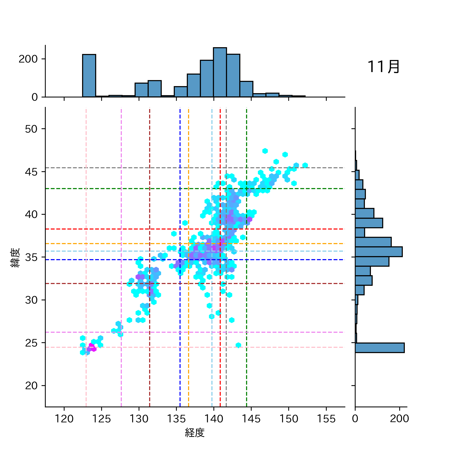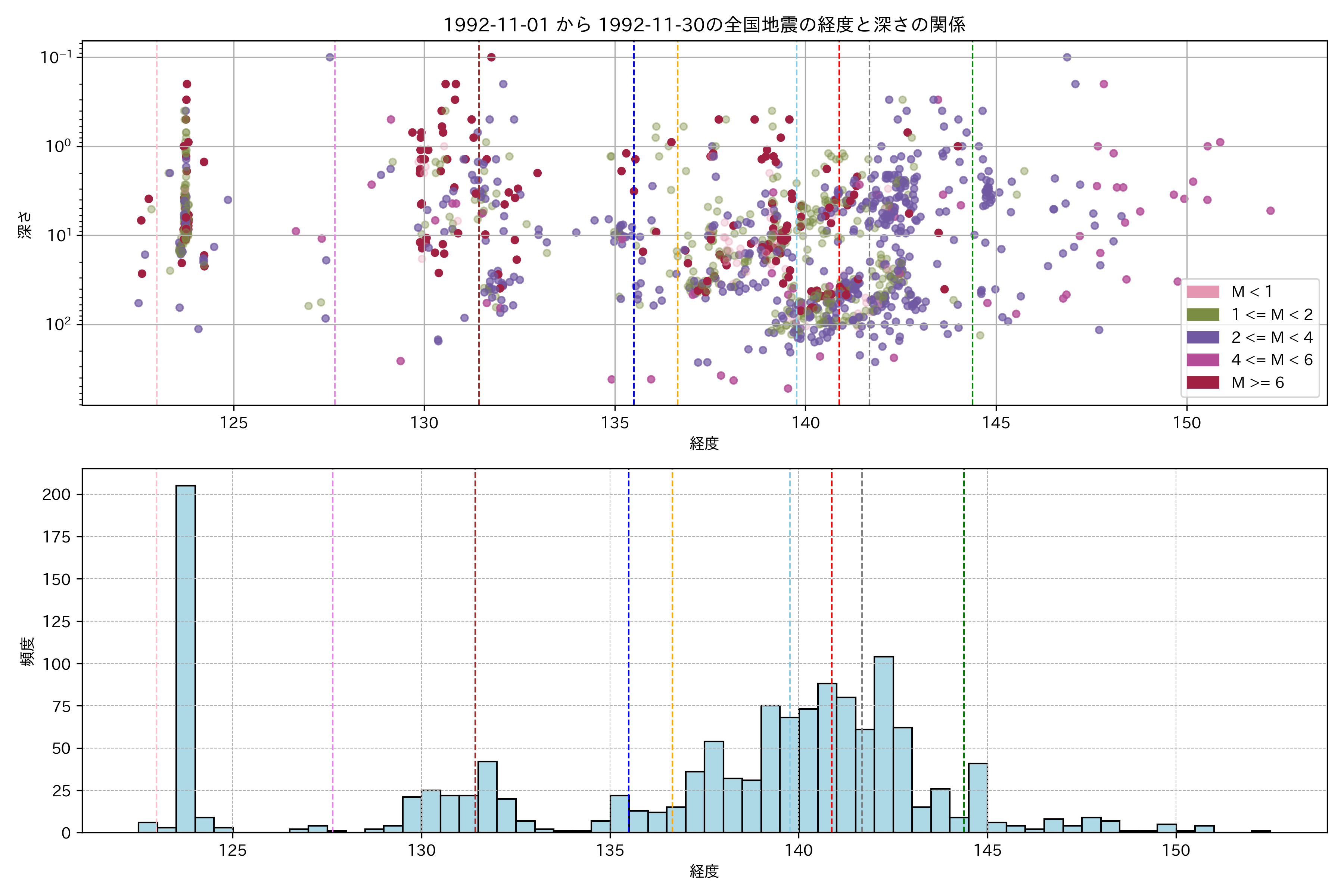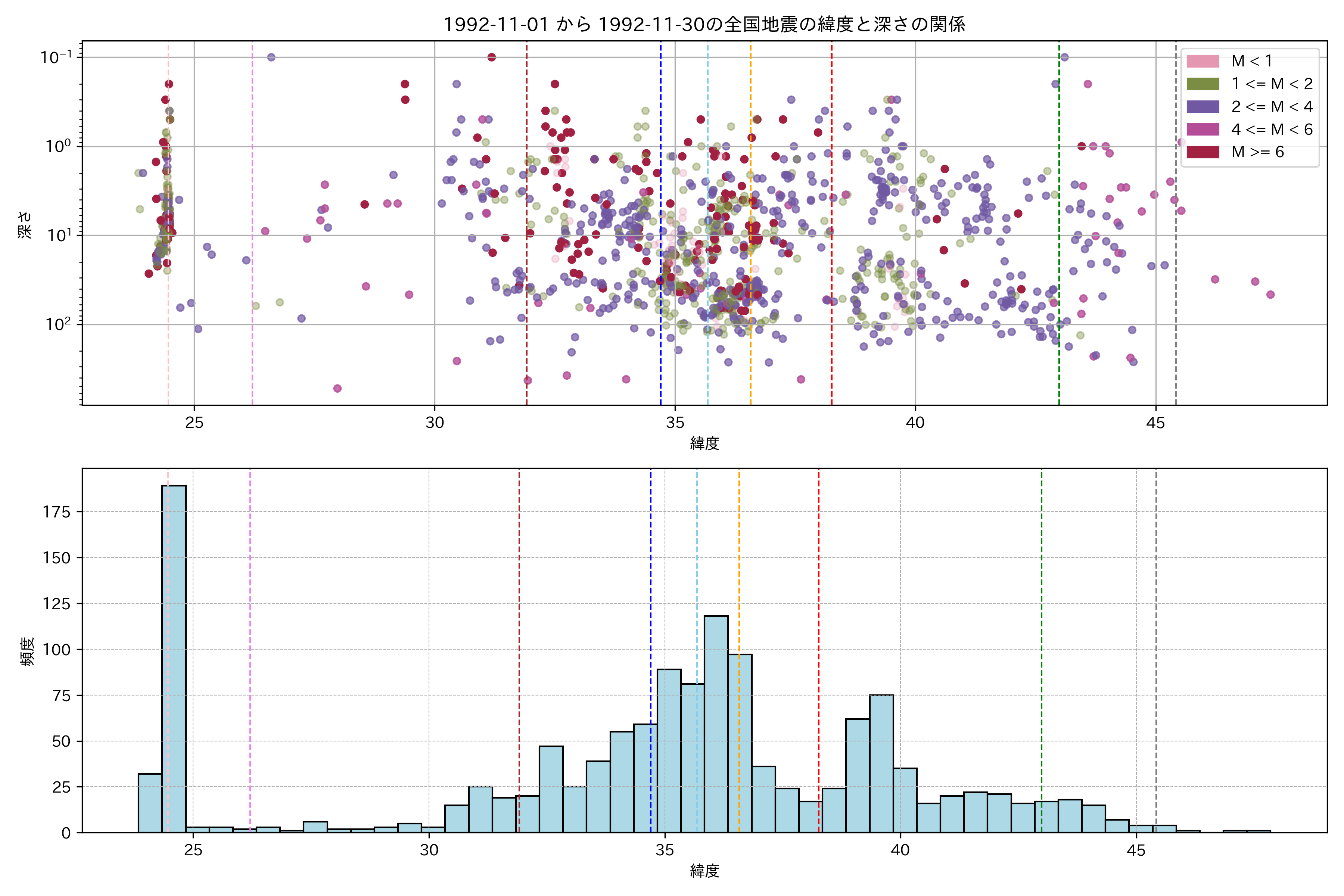 1992年11月 マグニチュード 0 以上震源マップ
