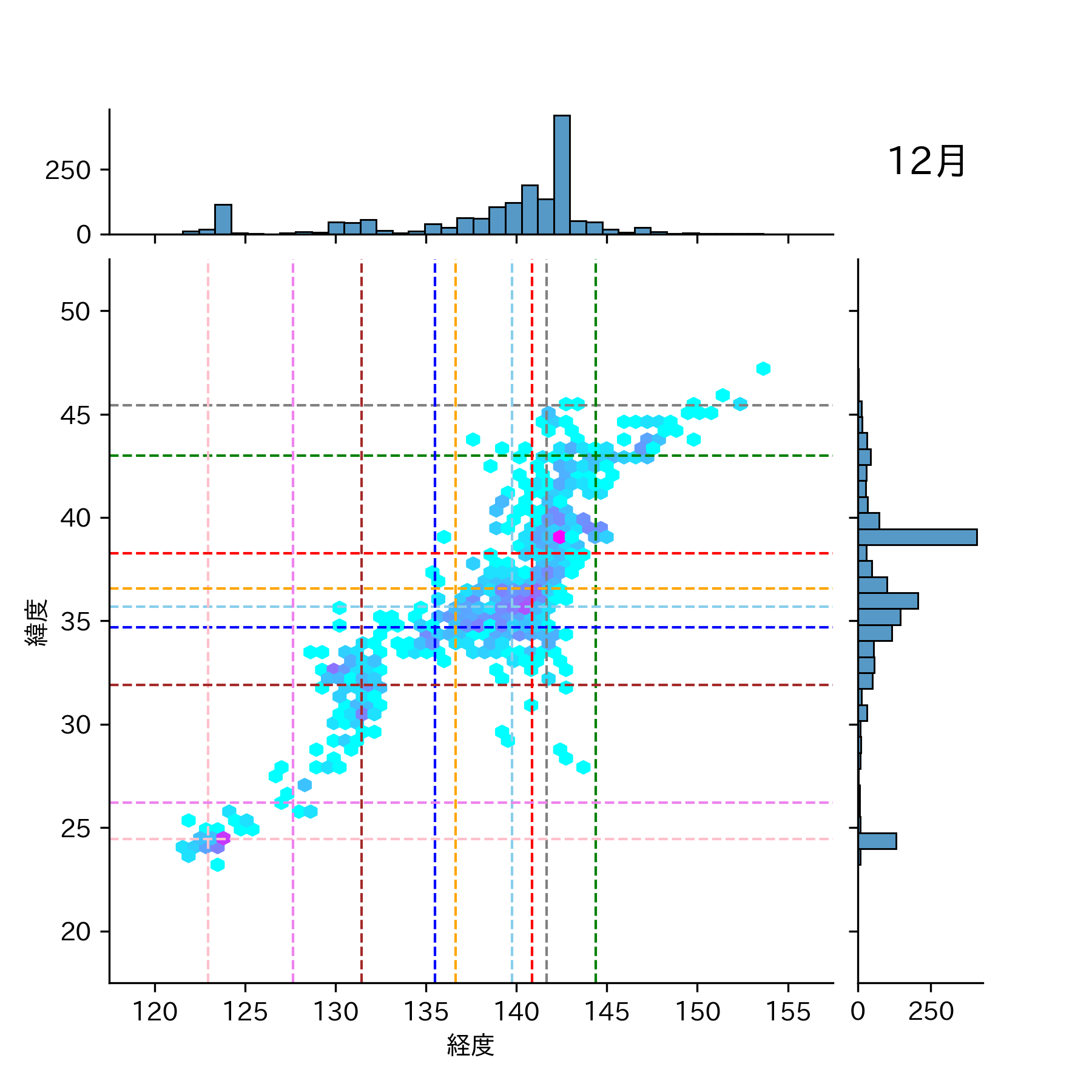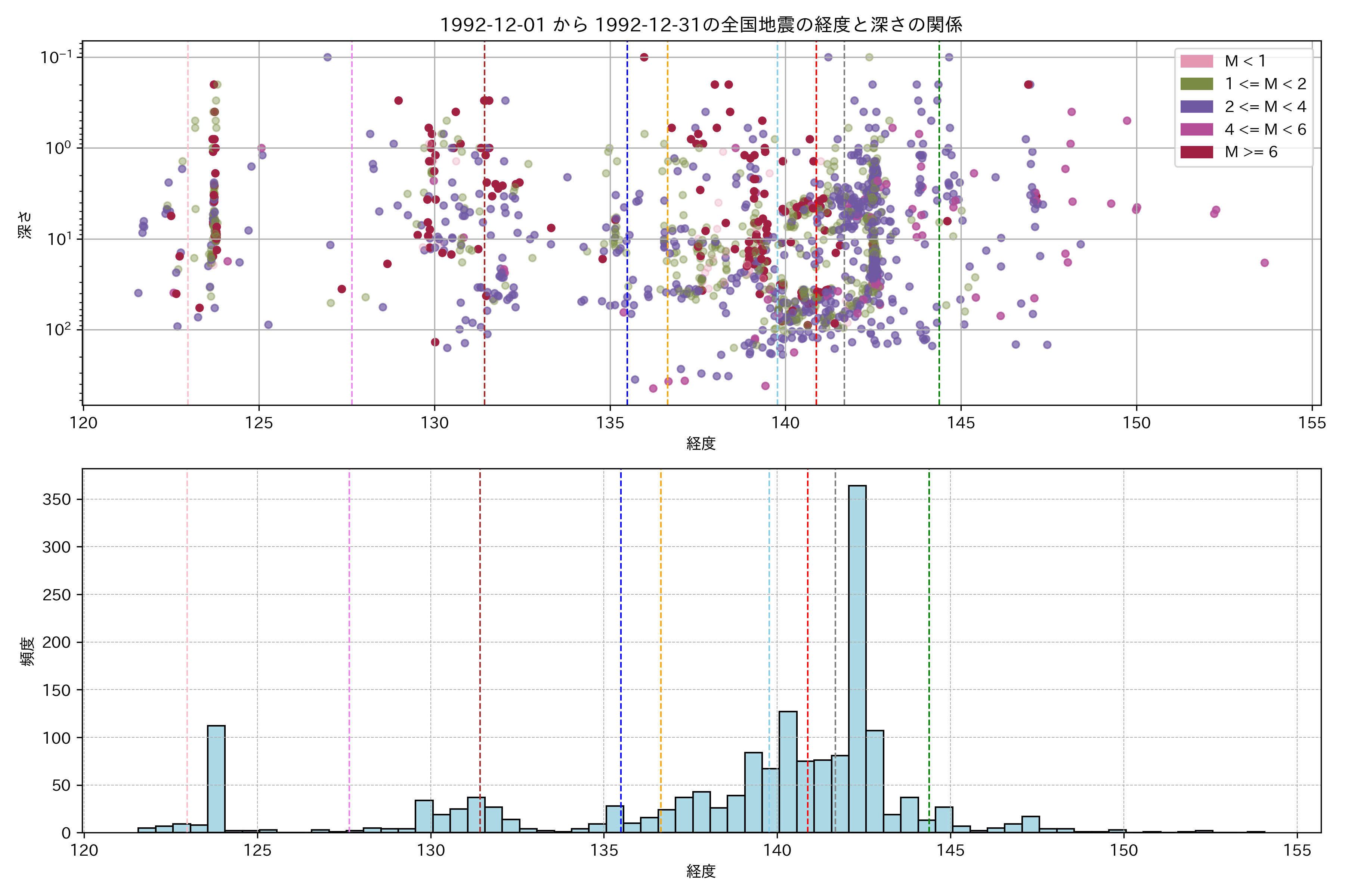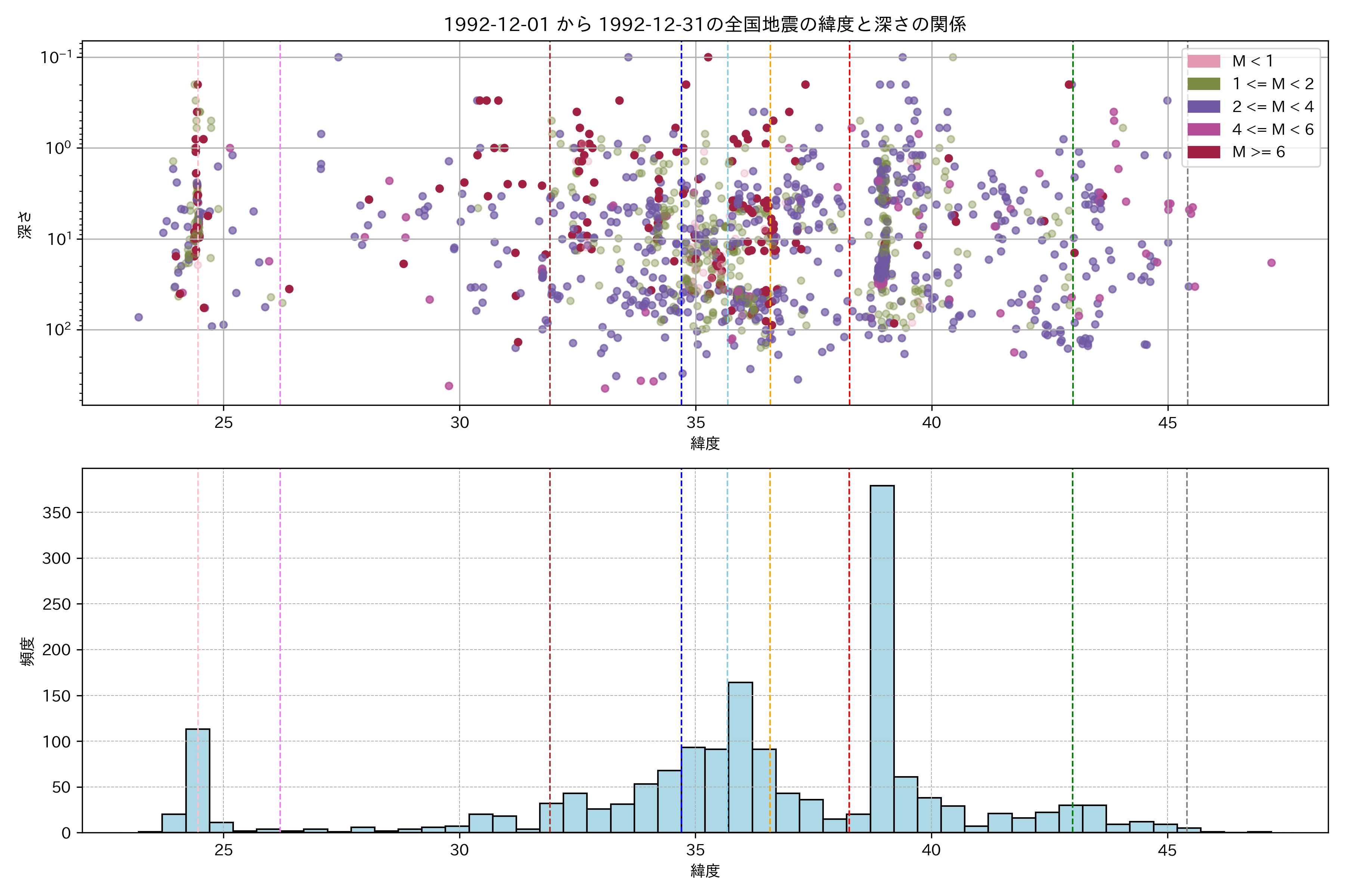 1992年12月 マグニチュード 0 以上震源マップ