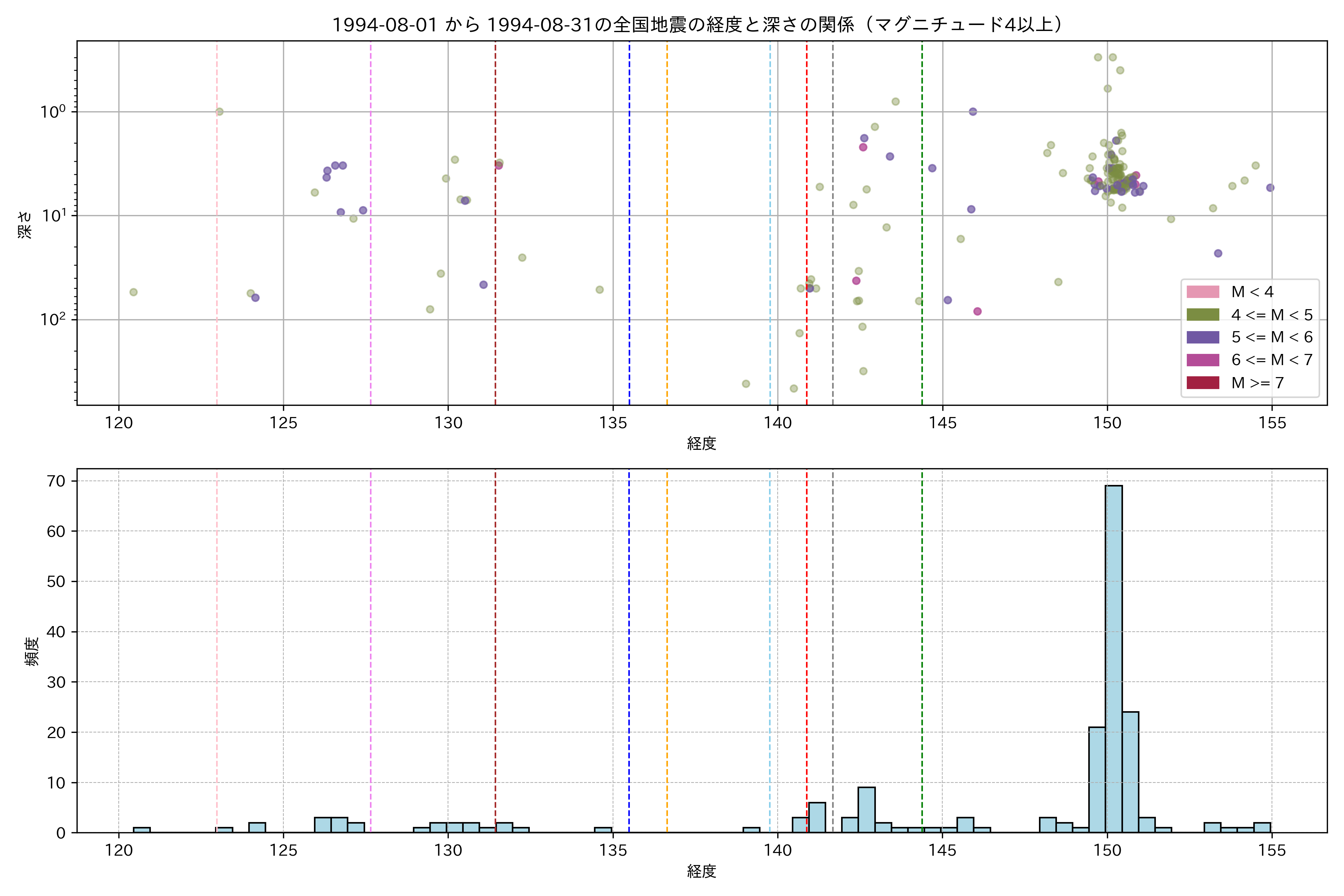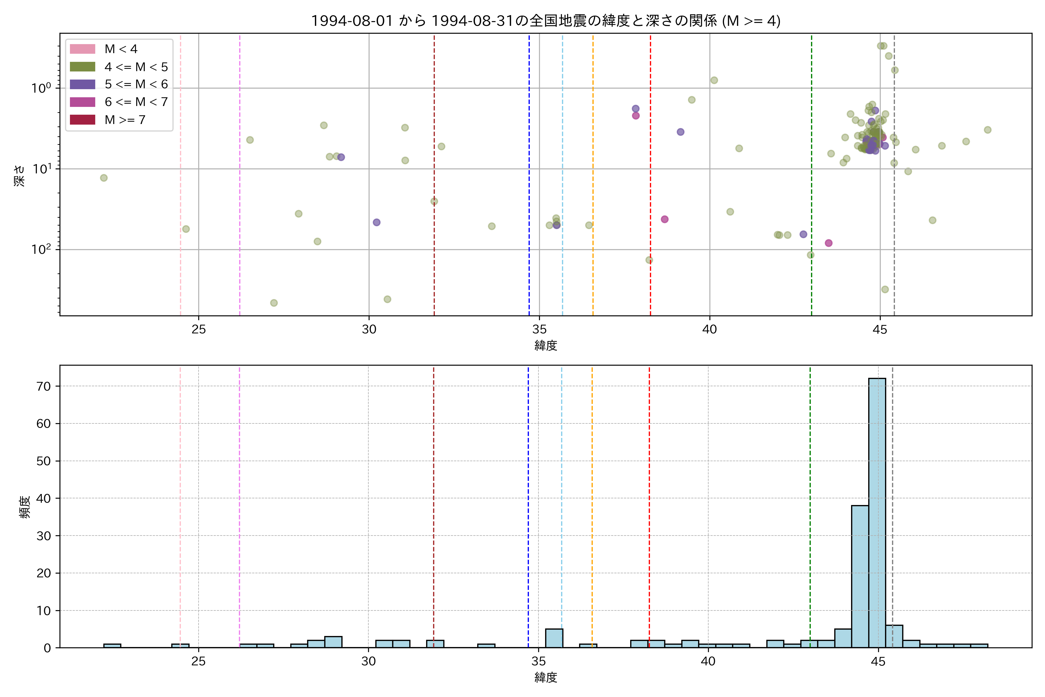 1994年8月 マグニチュード 4 以上震源マップ