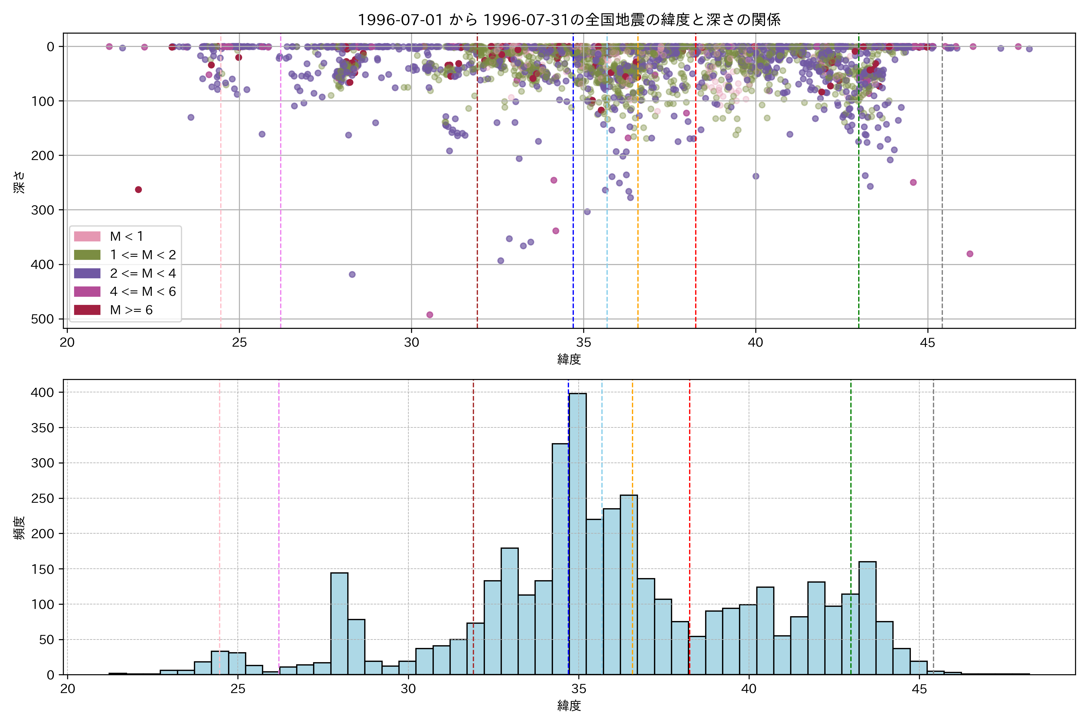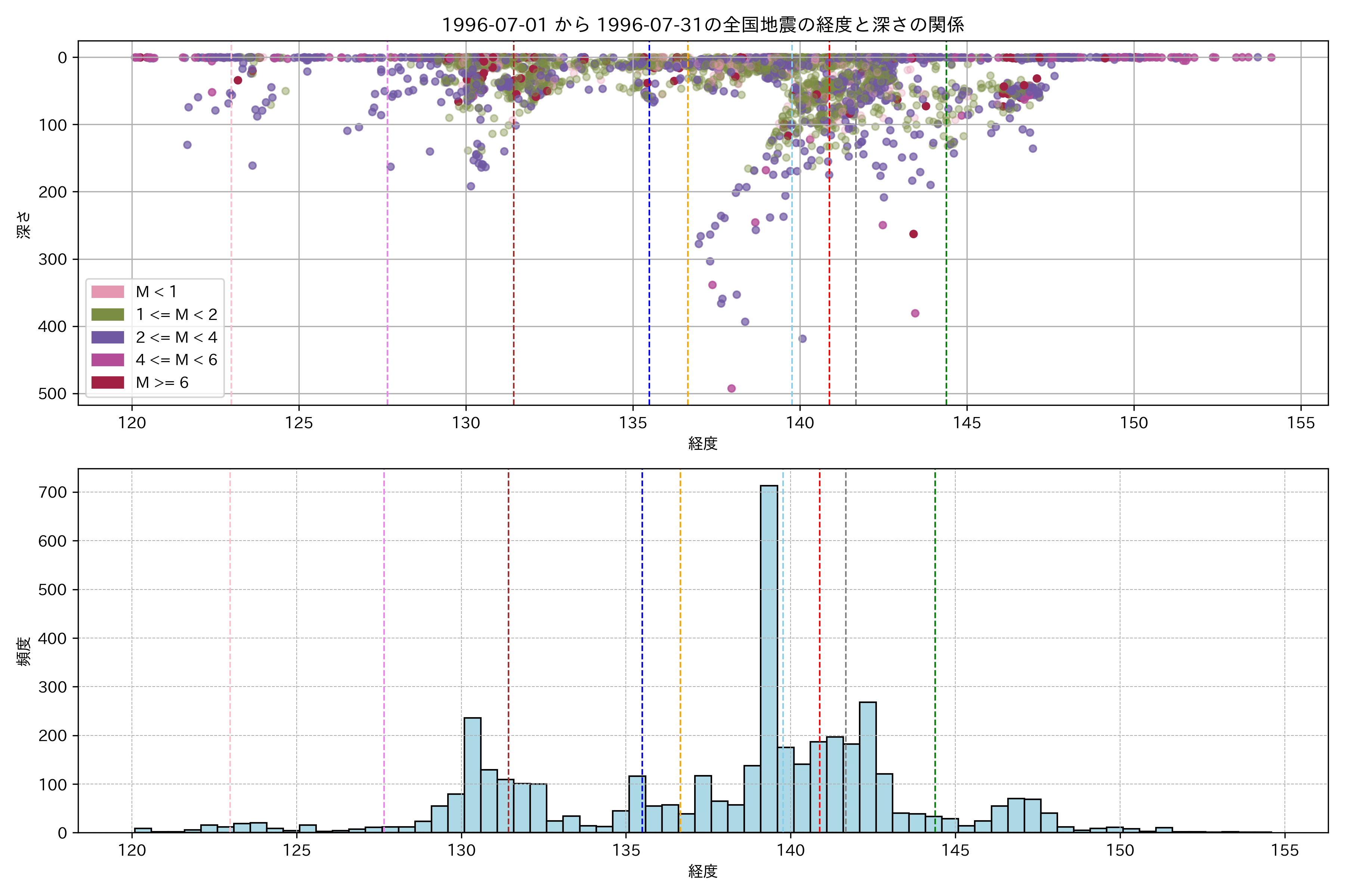 1996年7月 マグニチュード 0 以上震源マップ