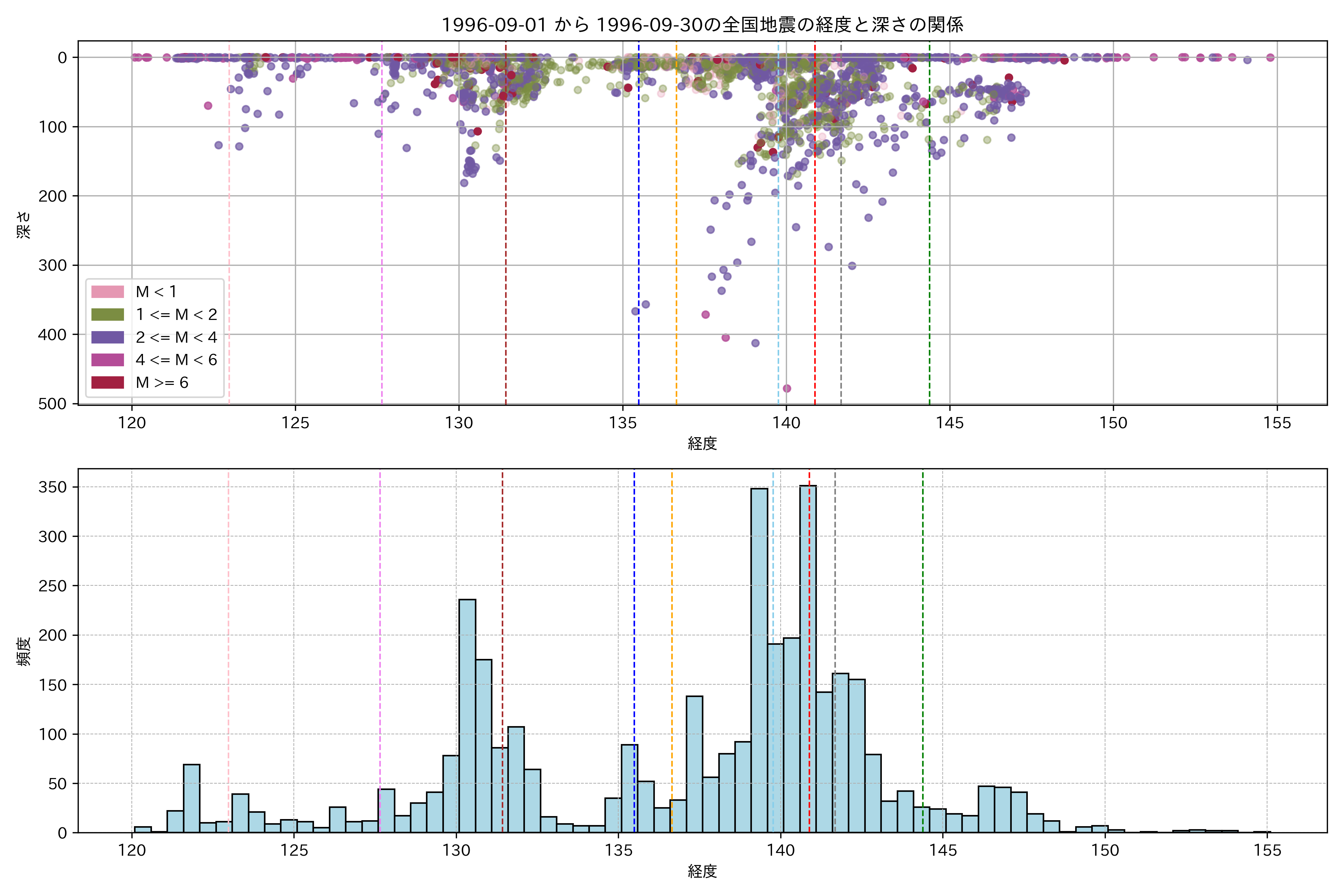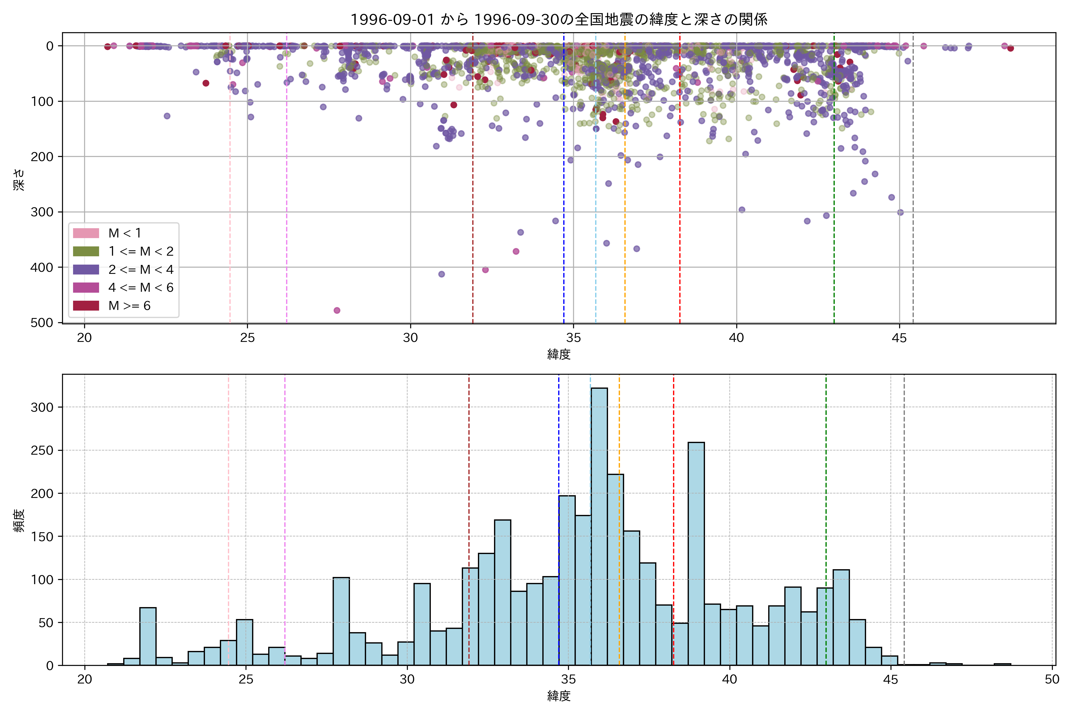 1996年9月 マグニチュード 0 以上震源マップ
