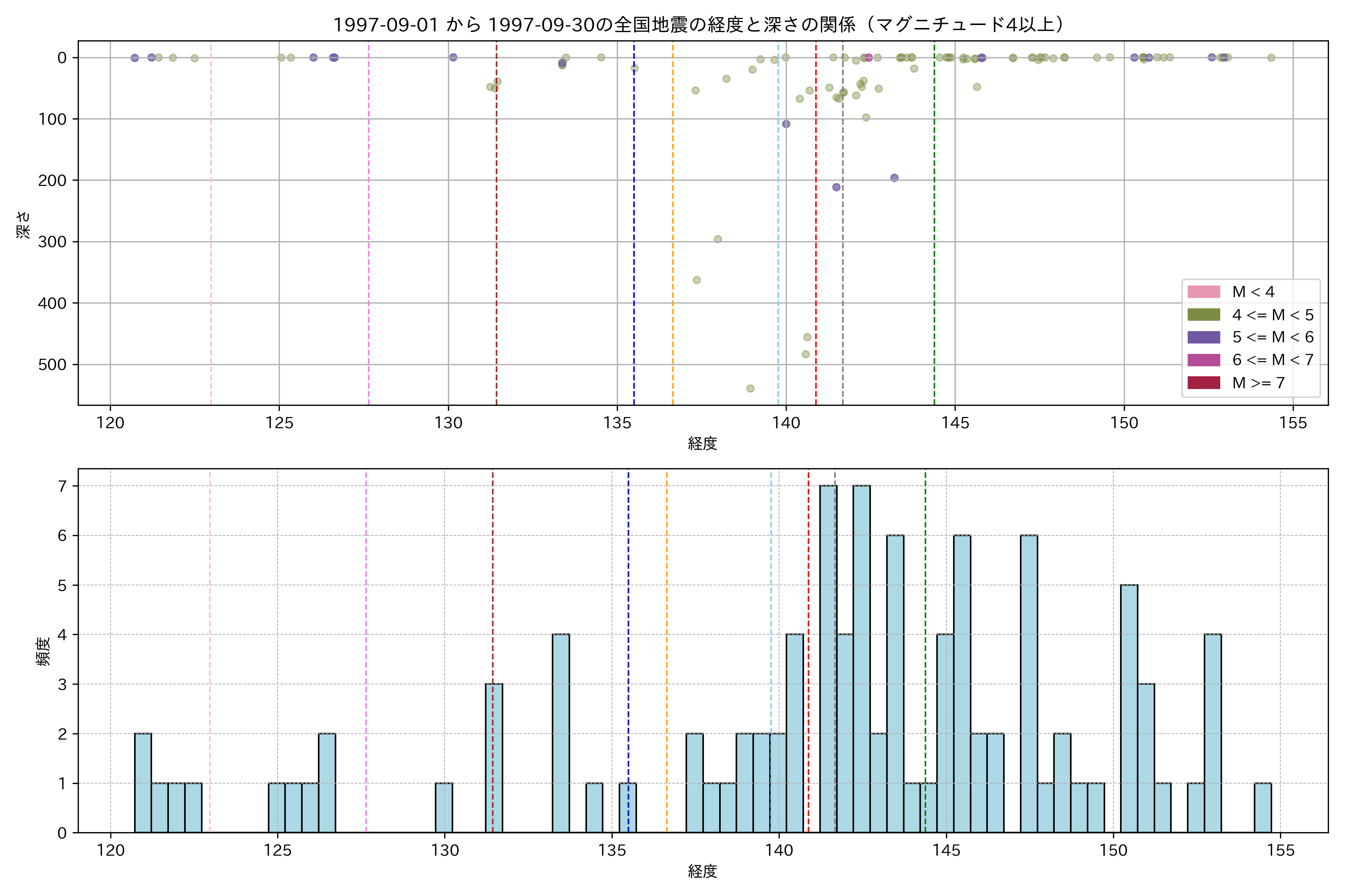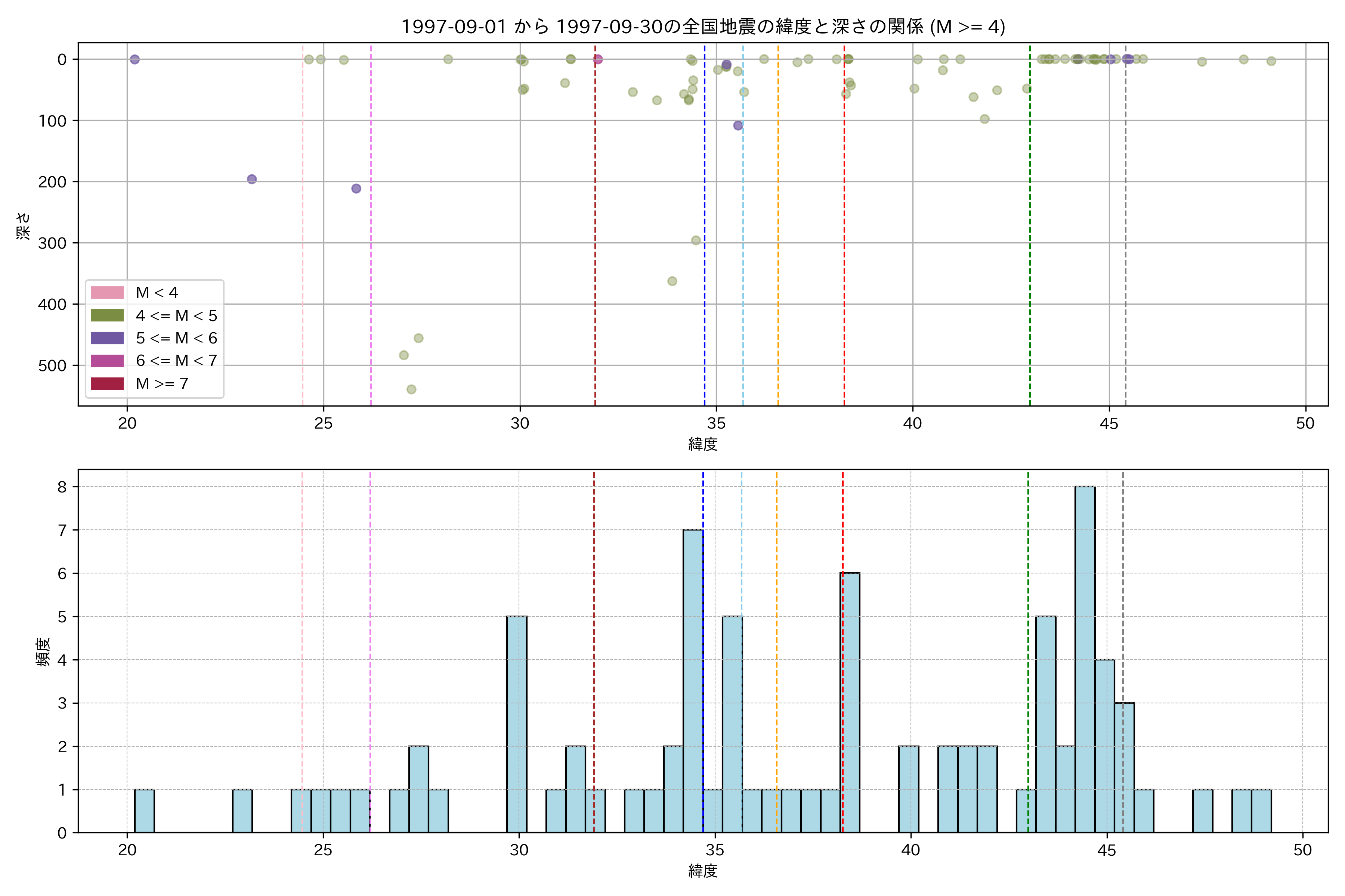 1997年9月 マグニチュード 4 以上震源マップ
