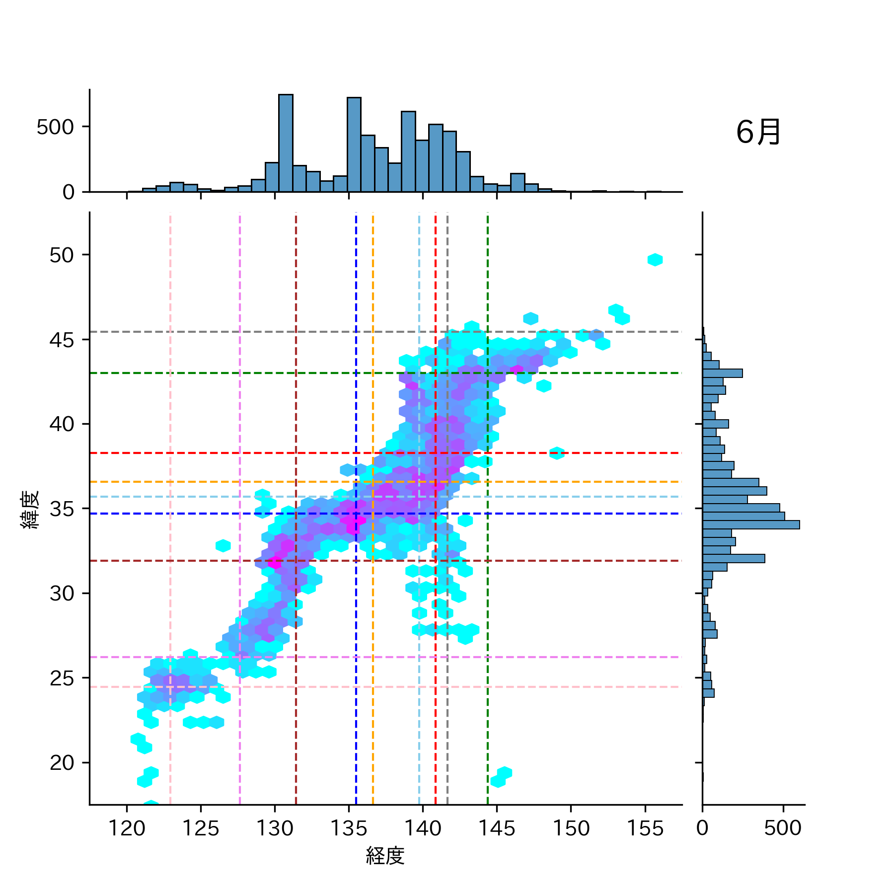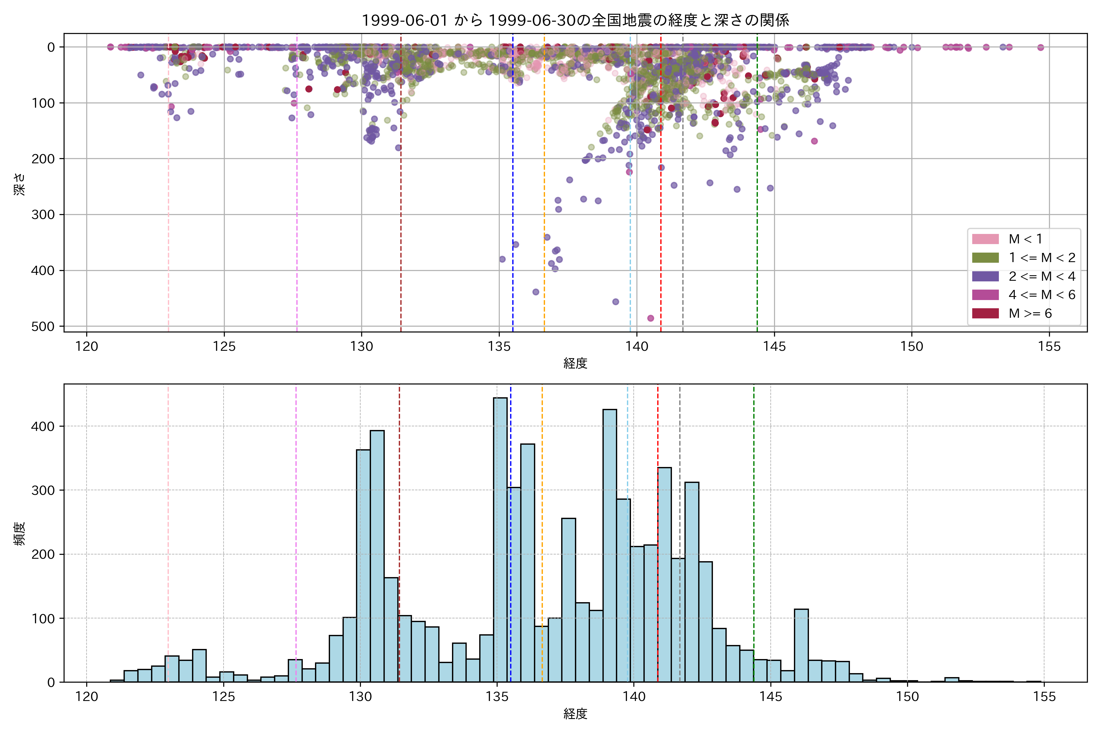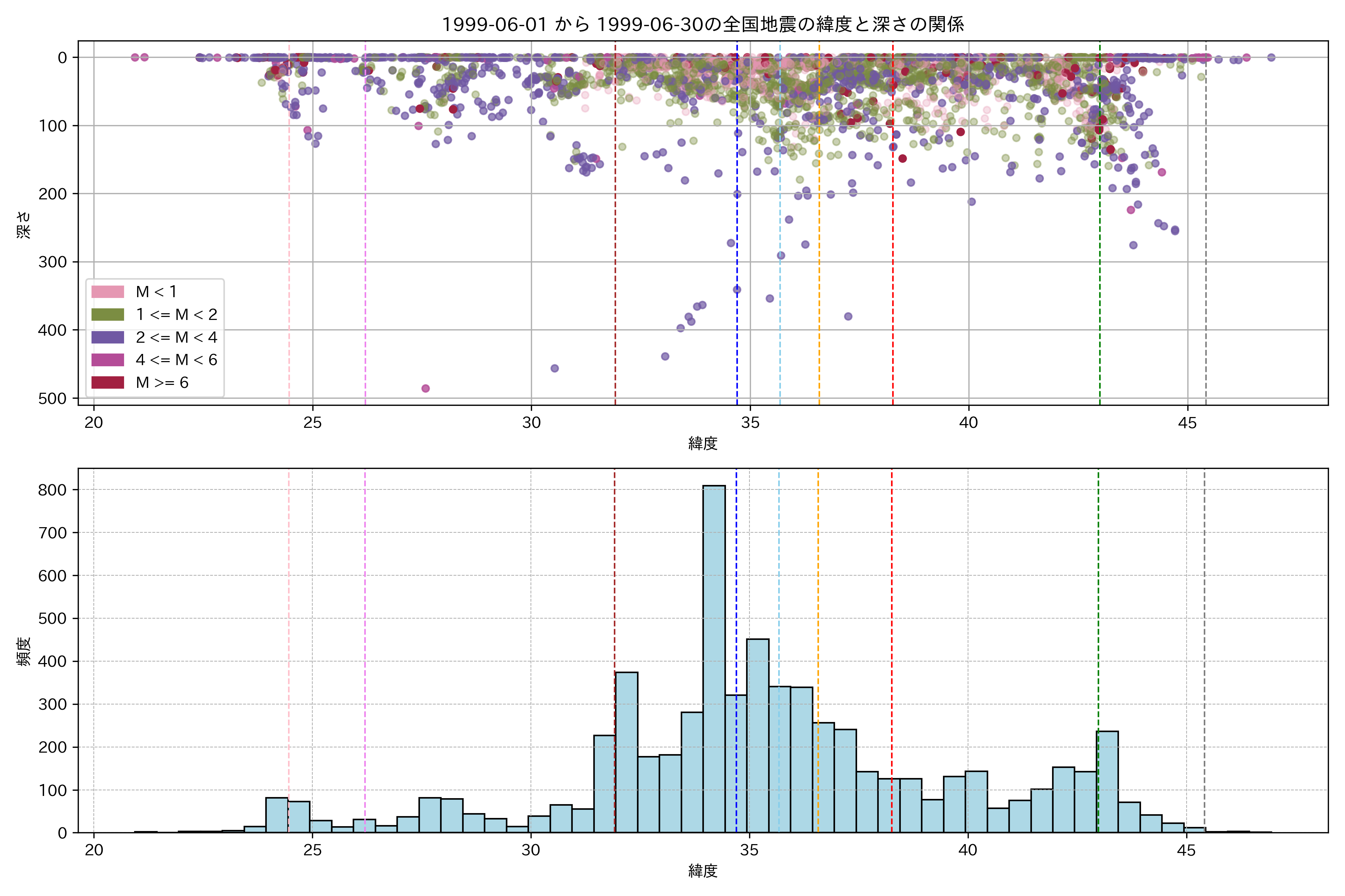 1999年6月 マグニチュード 0 以上震源マップ