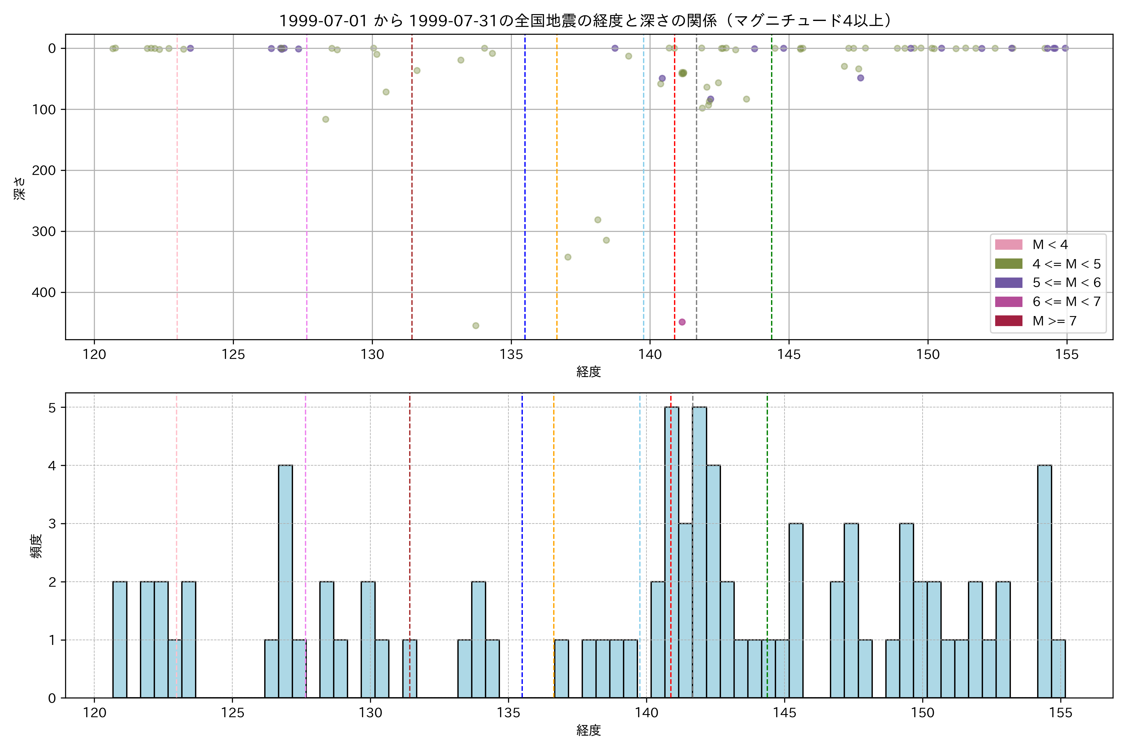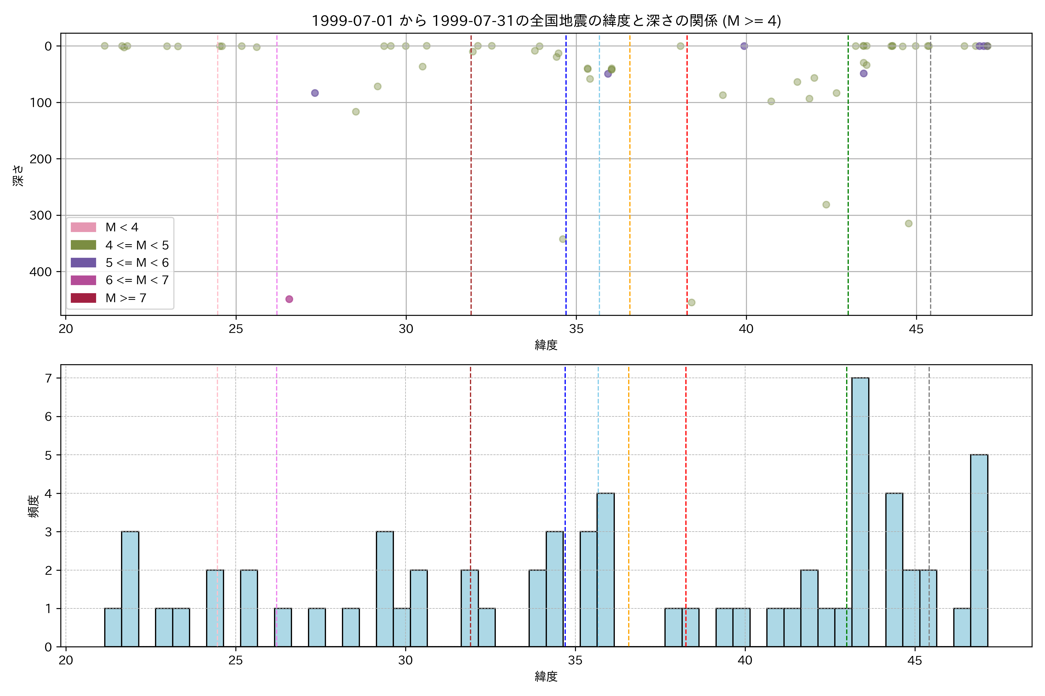 1999年7月 マグニチュード 4 以上震源マップ