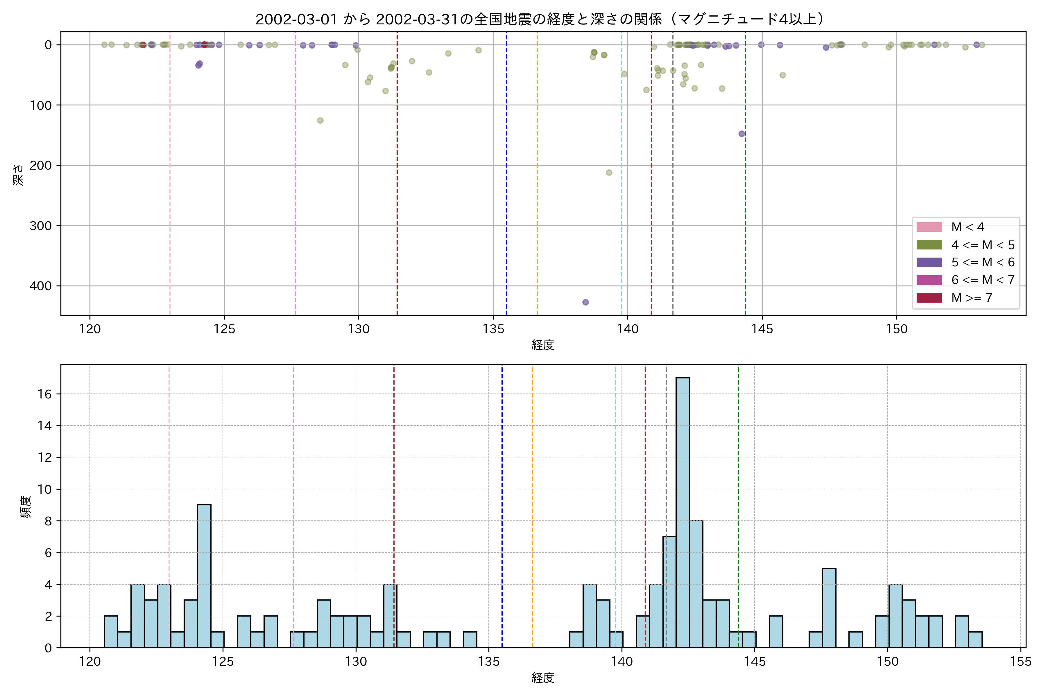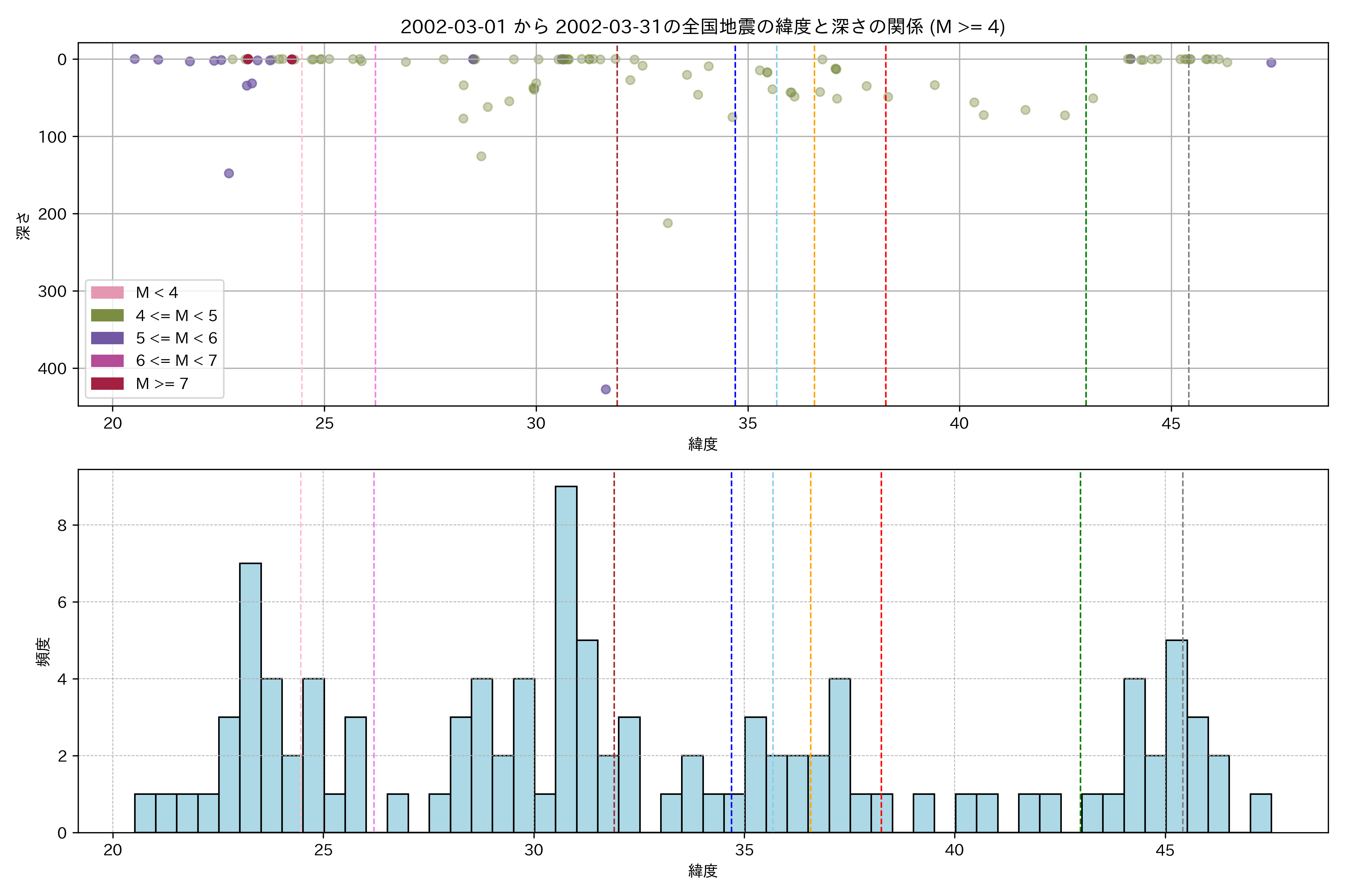 2002年3月 マグニチュード 4 以上震源マップ
