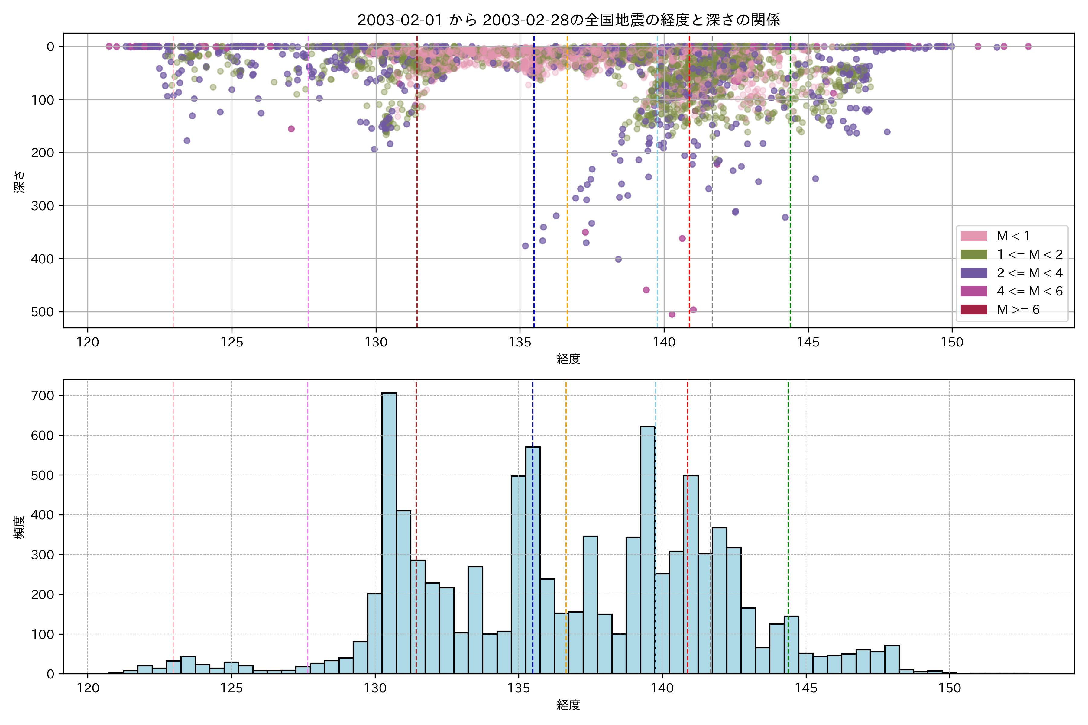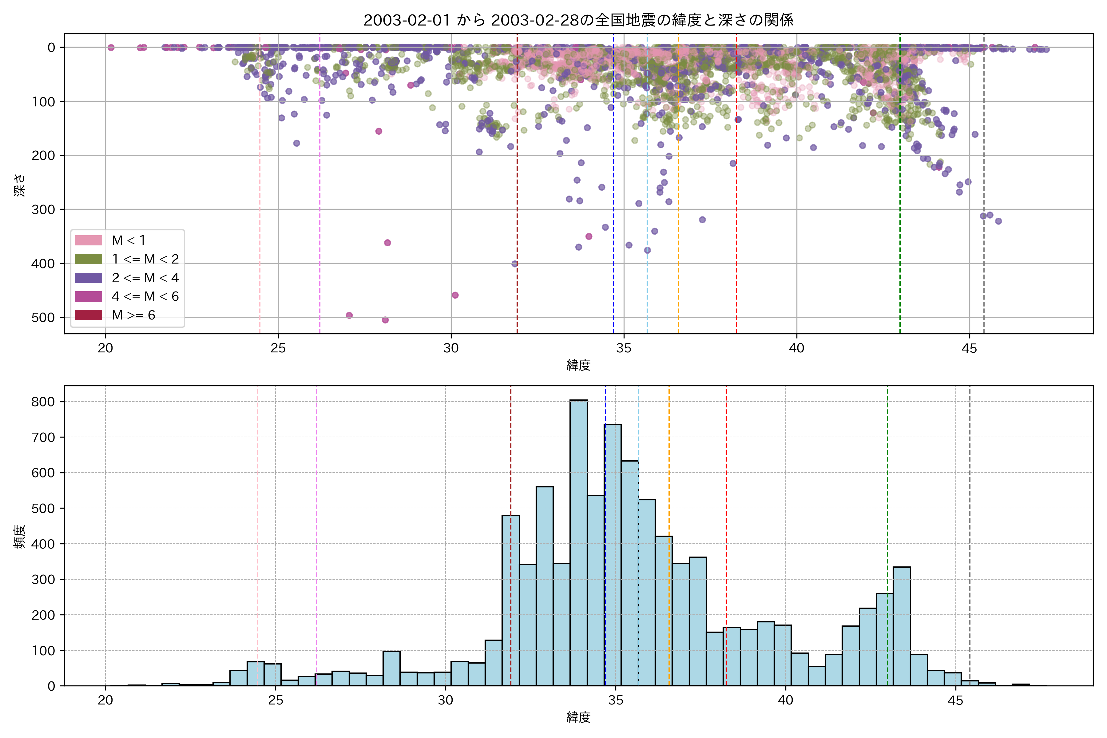 2003年2月 マグニチュード 0 以上震源マップ
