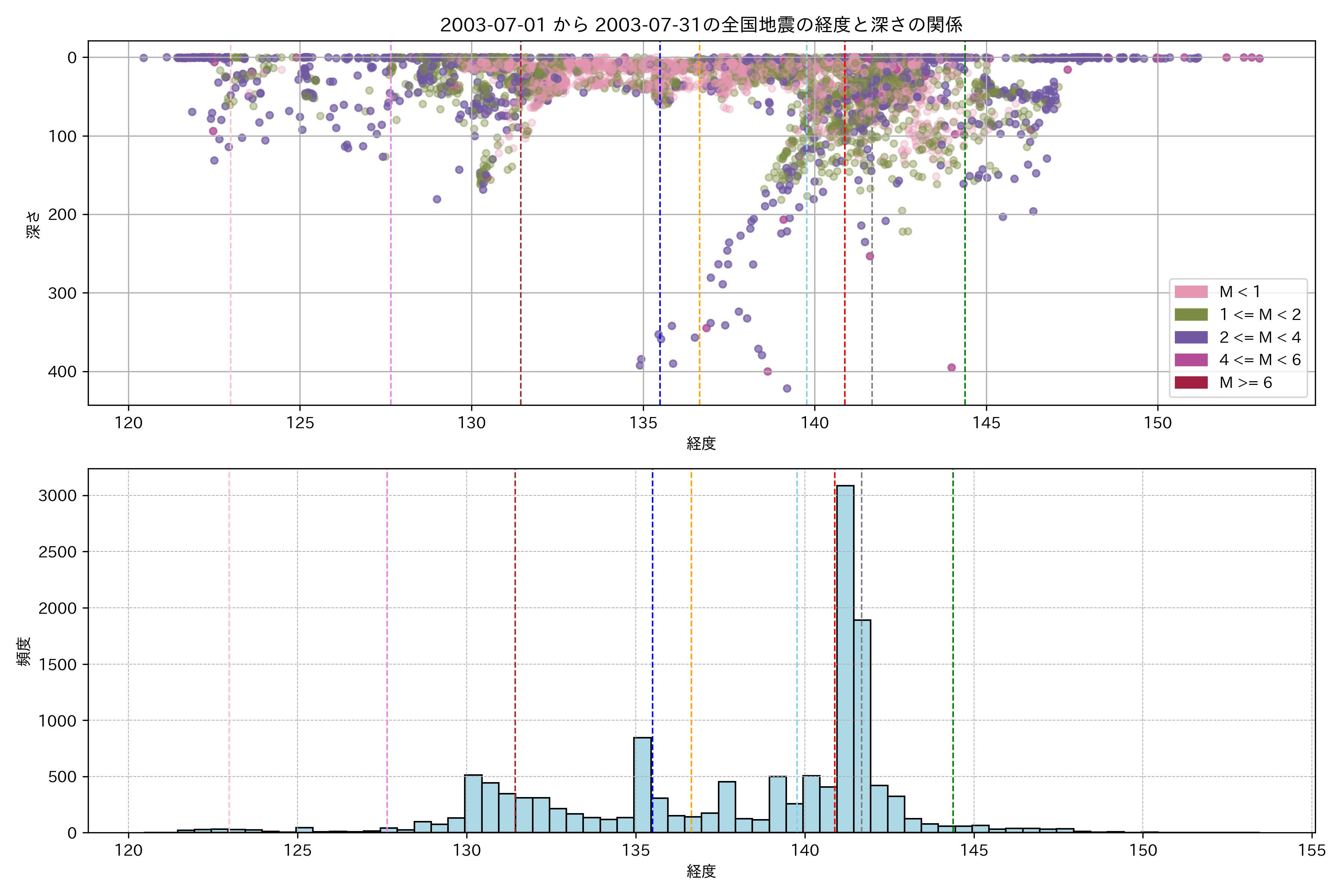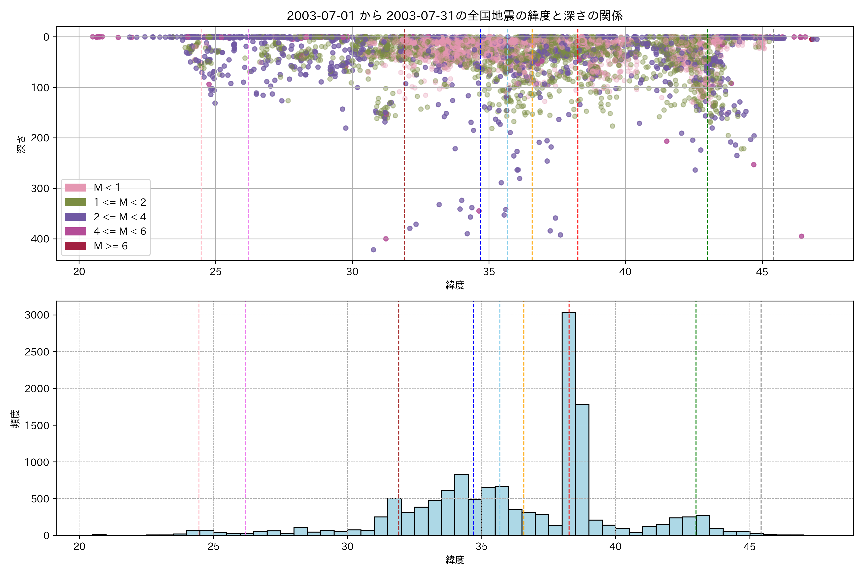 2003年7月 マグニチュード 0 以上震源マップ