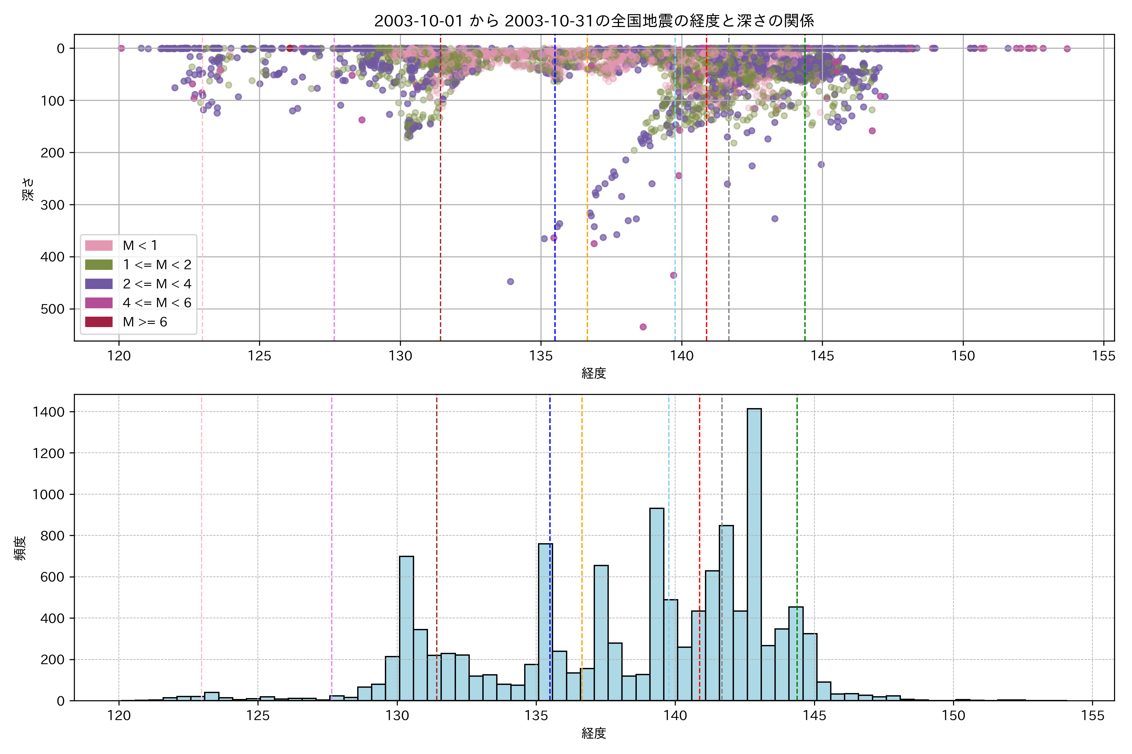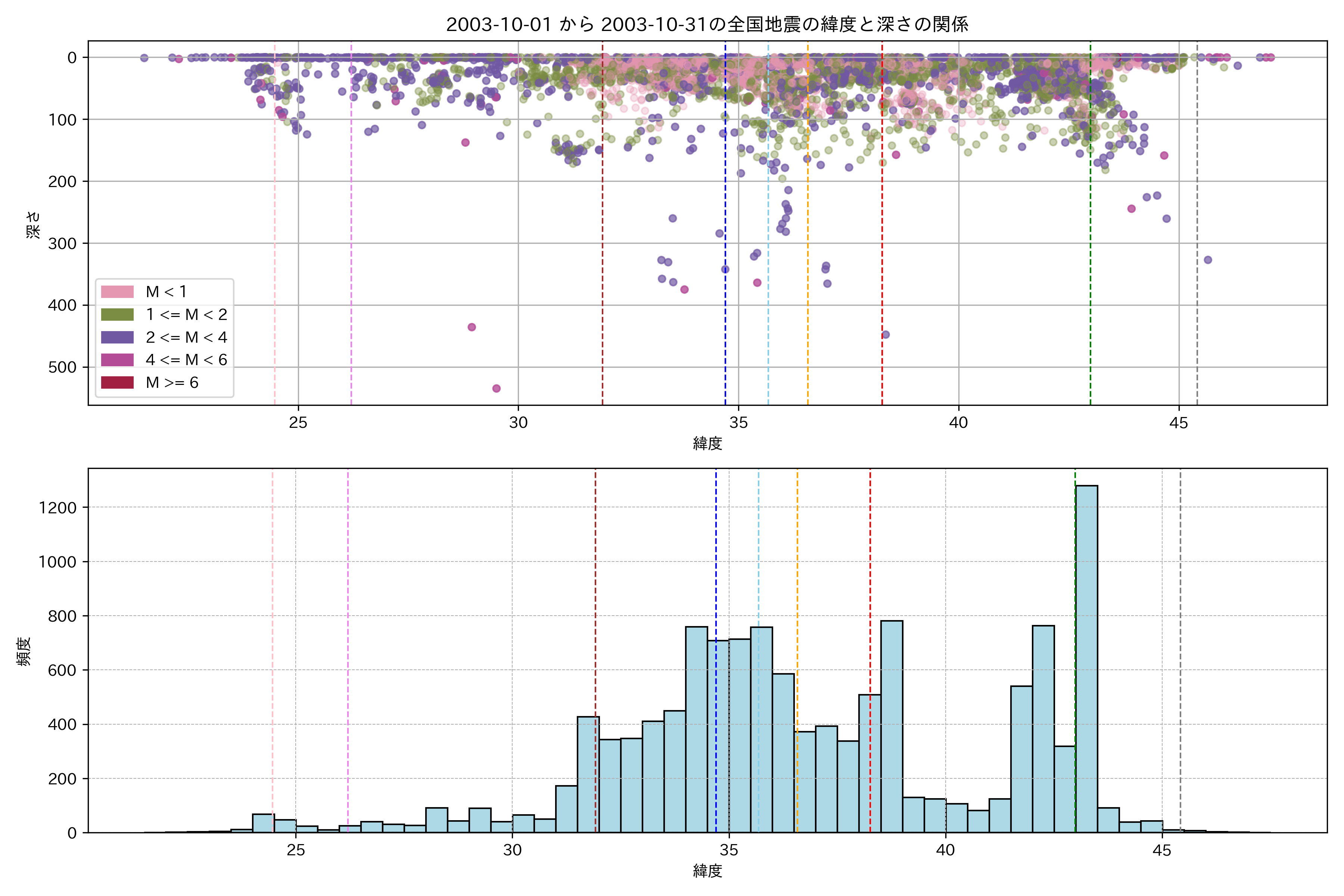 2003年10月 マグニチュード 0 以上震源マップ