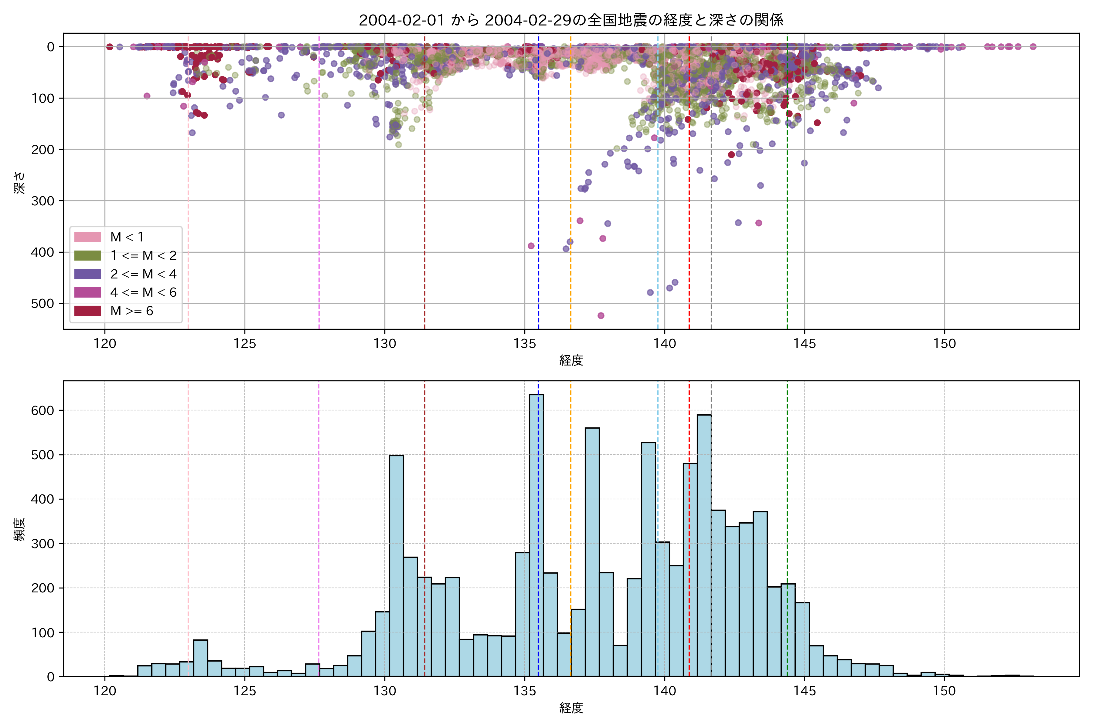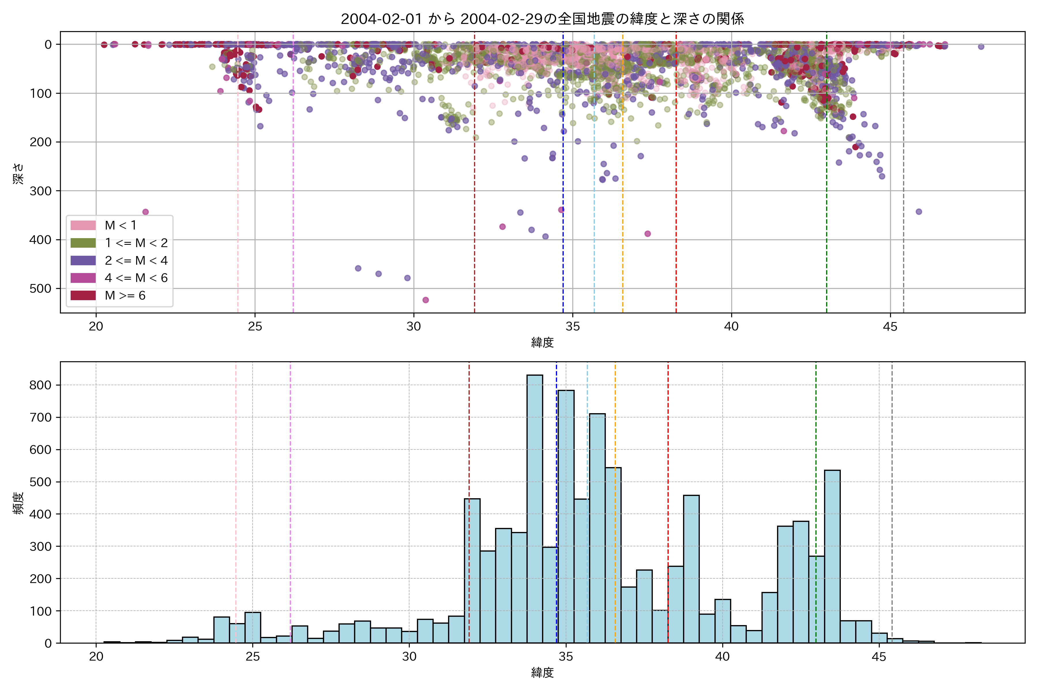 2004年2月 マグニチュード 0 以上震源マップ