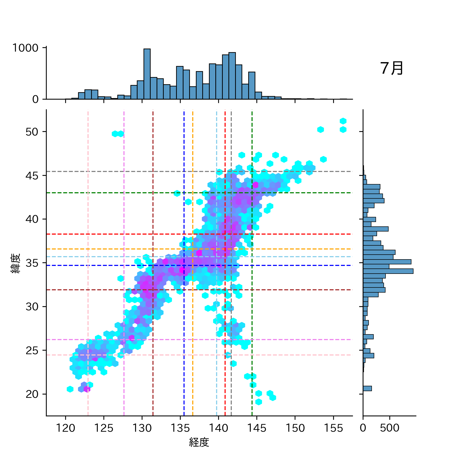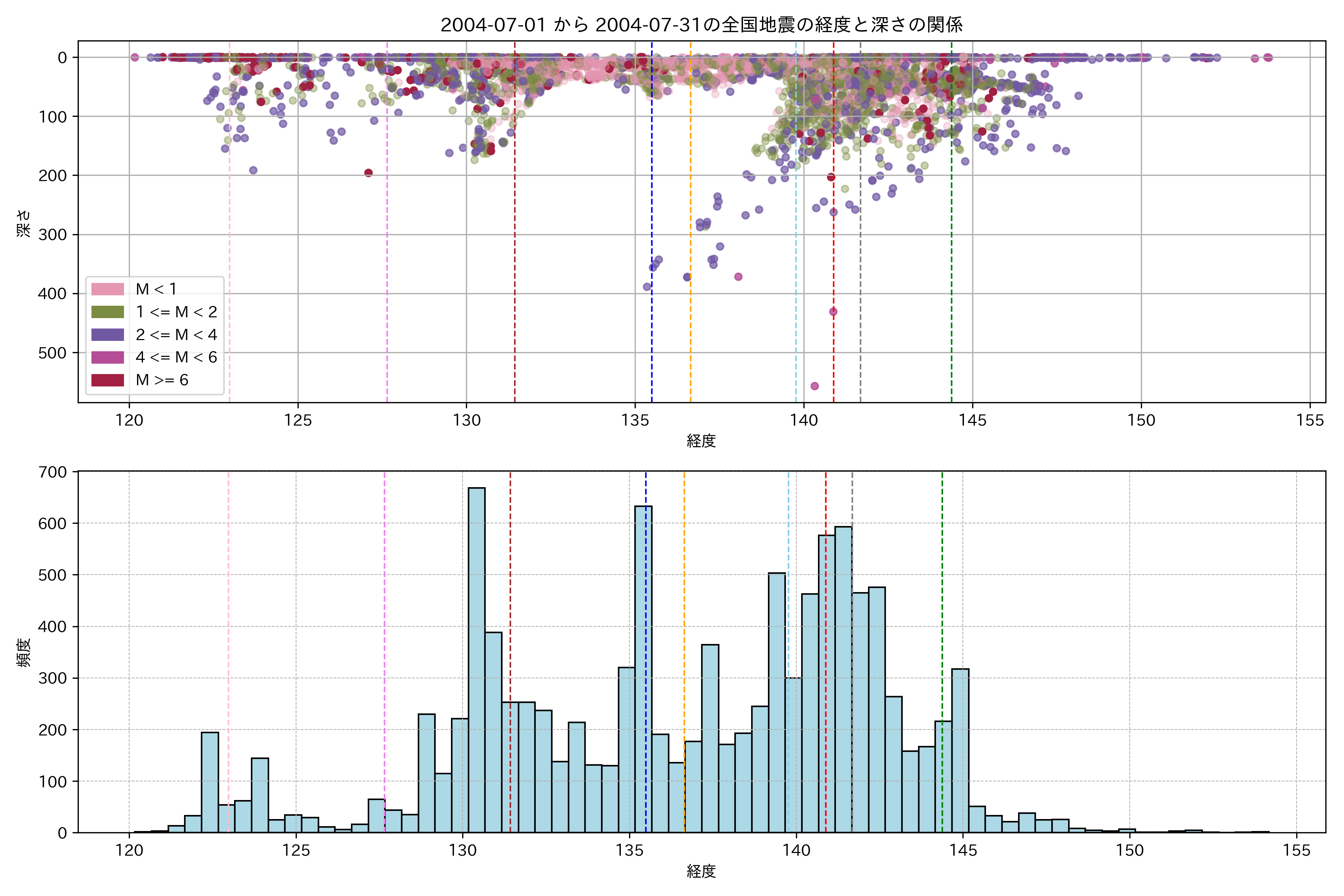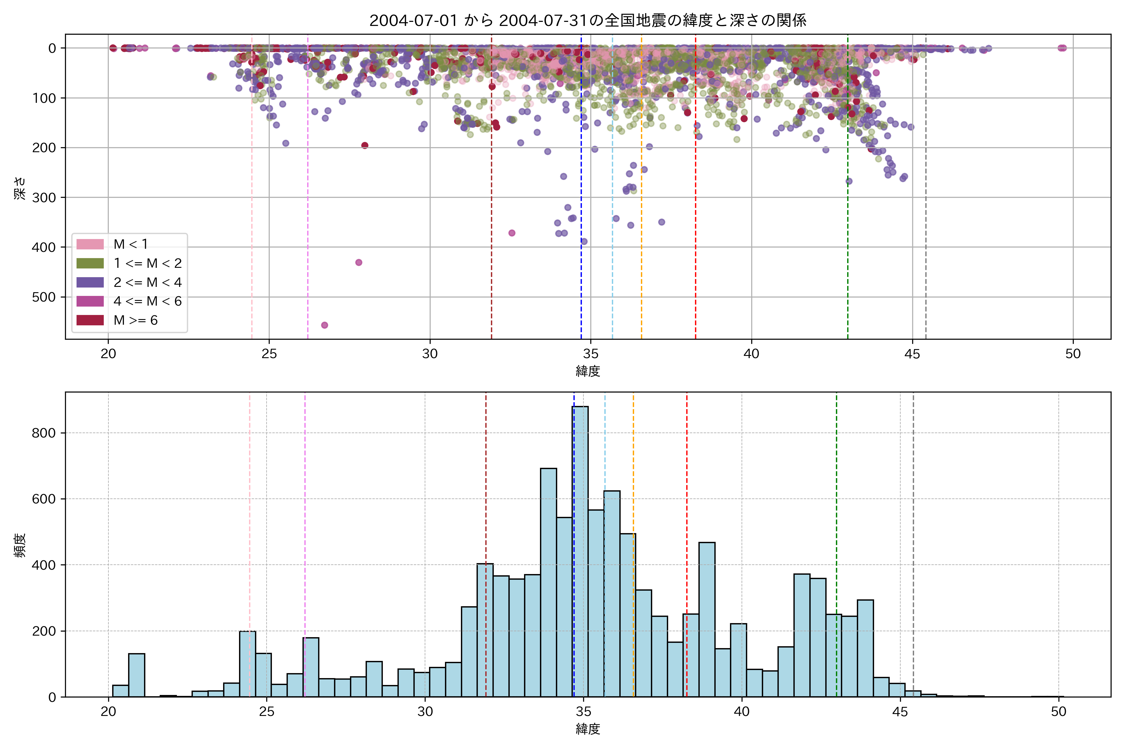 2004年7月 マグニチュード 0 以上震源マップ