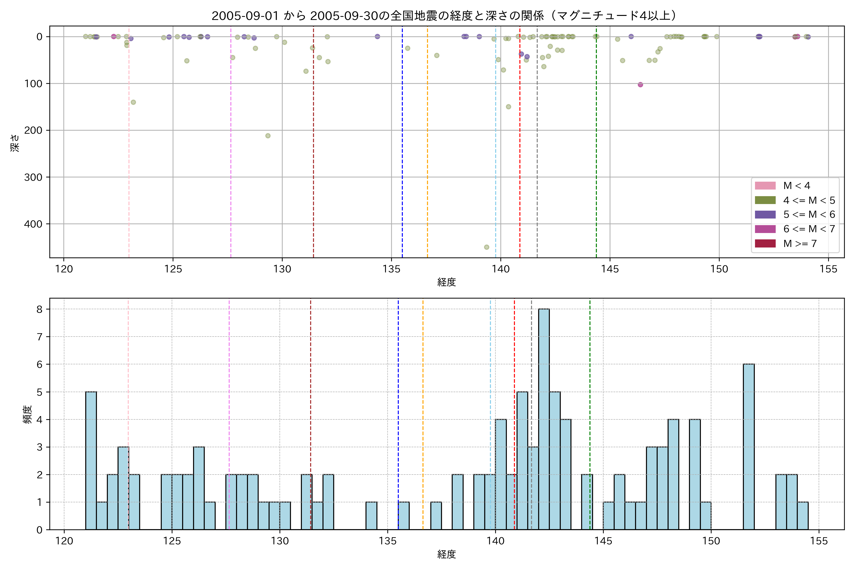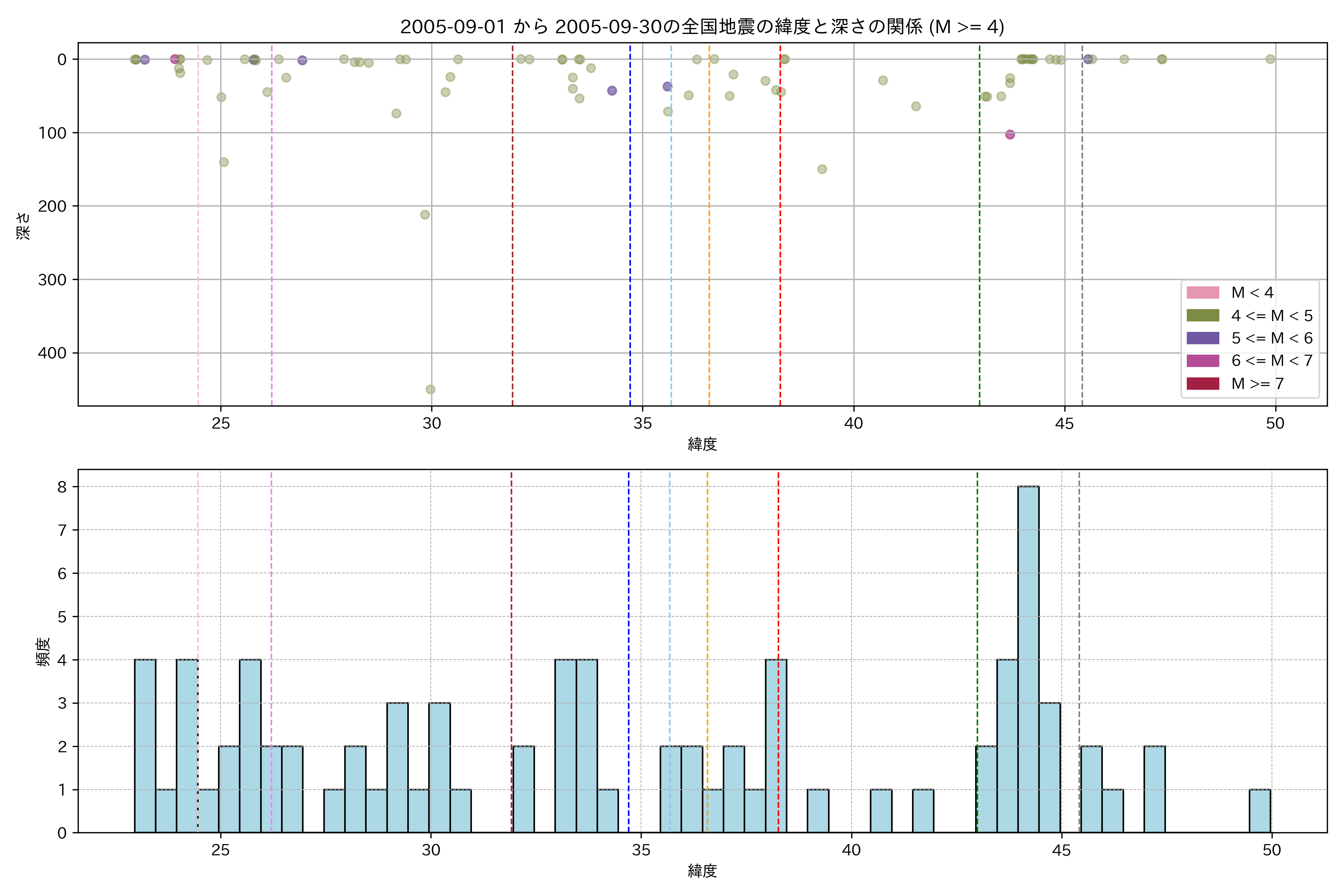 2005年9月 マグニチュード 4 以上震源マップ