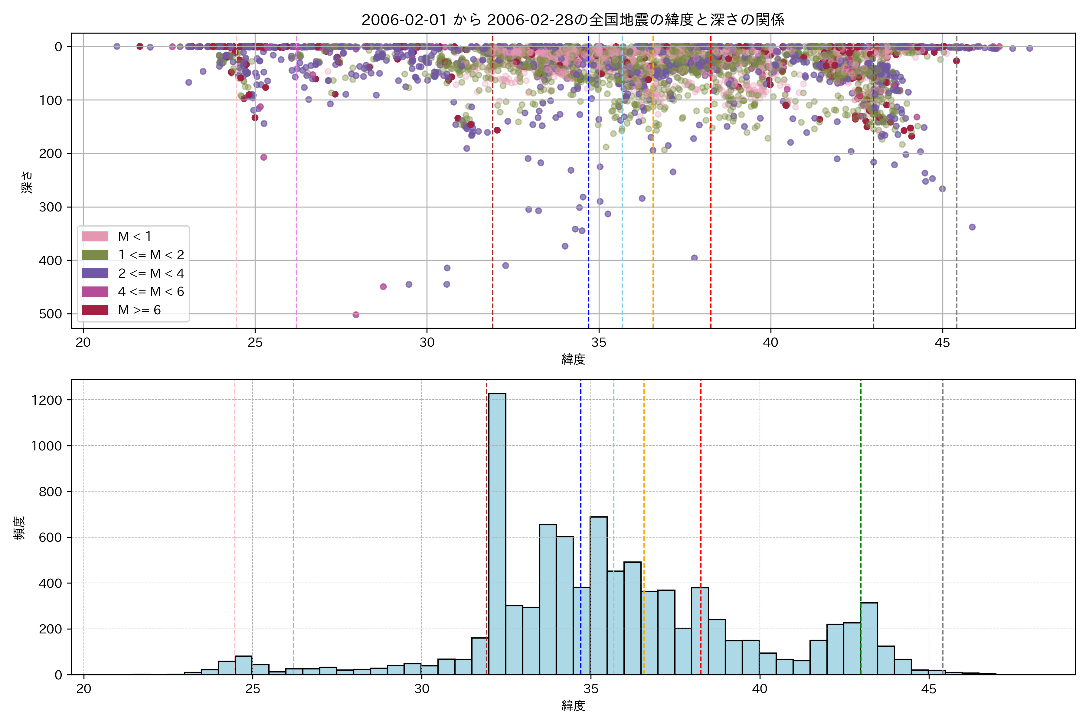 2006年2月 マグニチュード 0 以上震源マップ