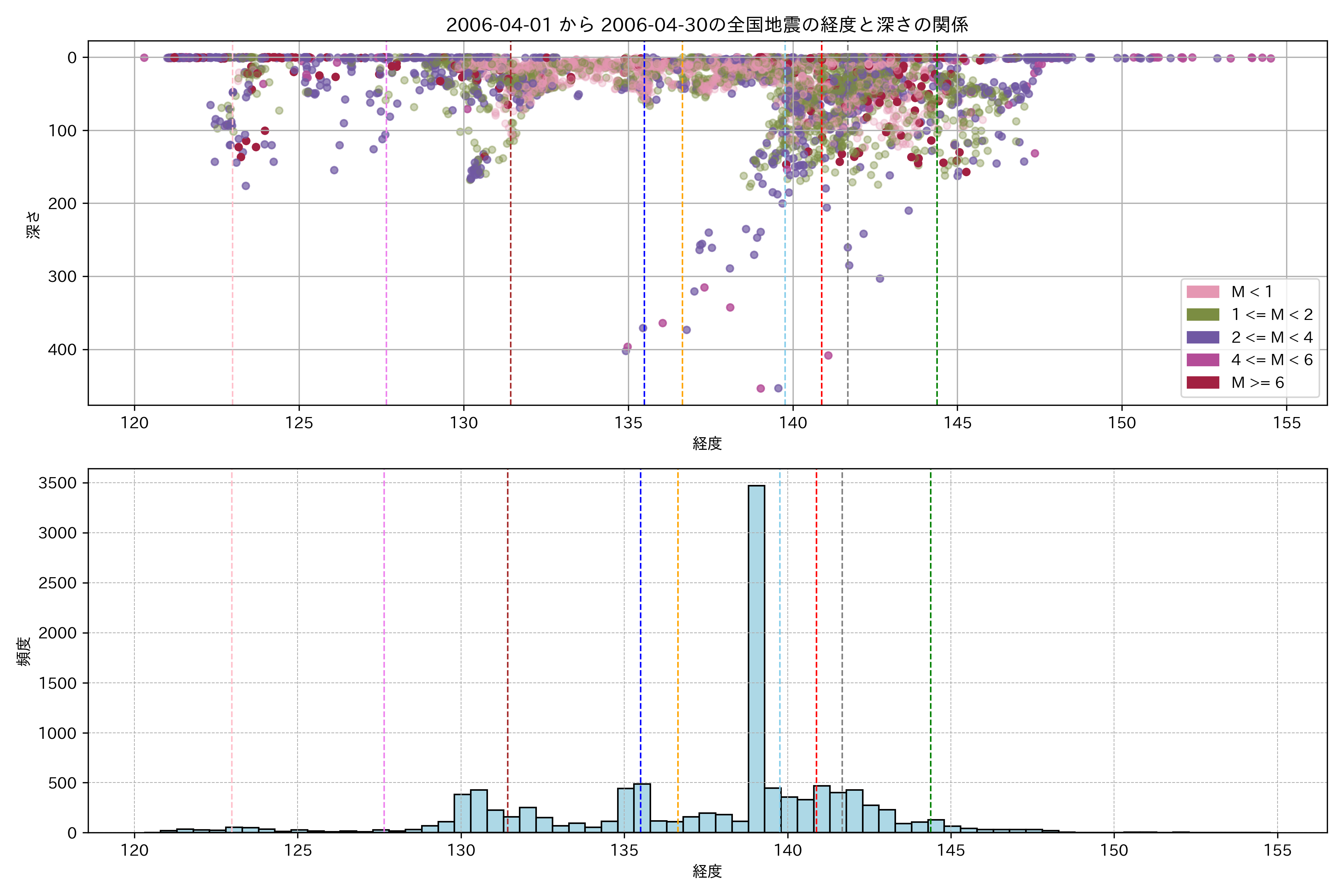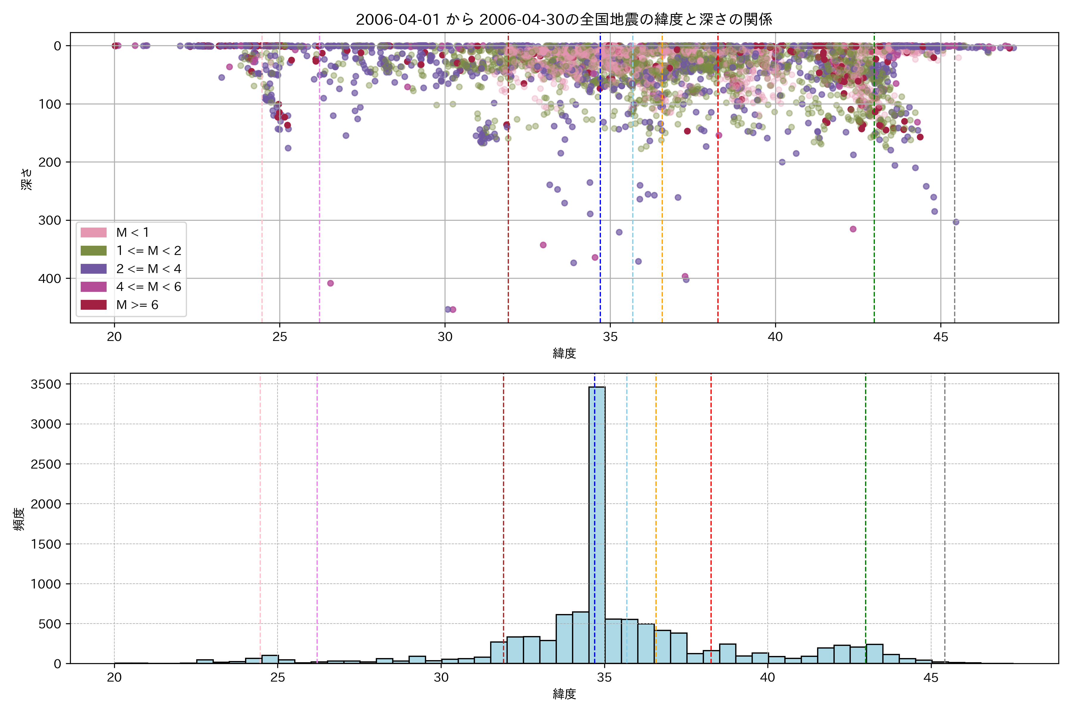 2006年4月 マグニチュード 0 以上震源マップ
