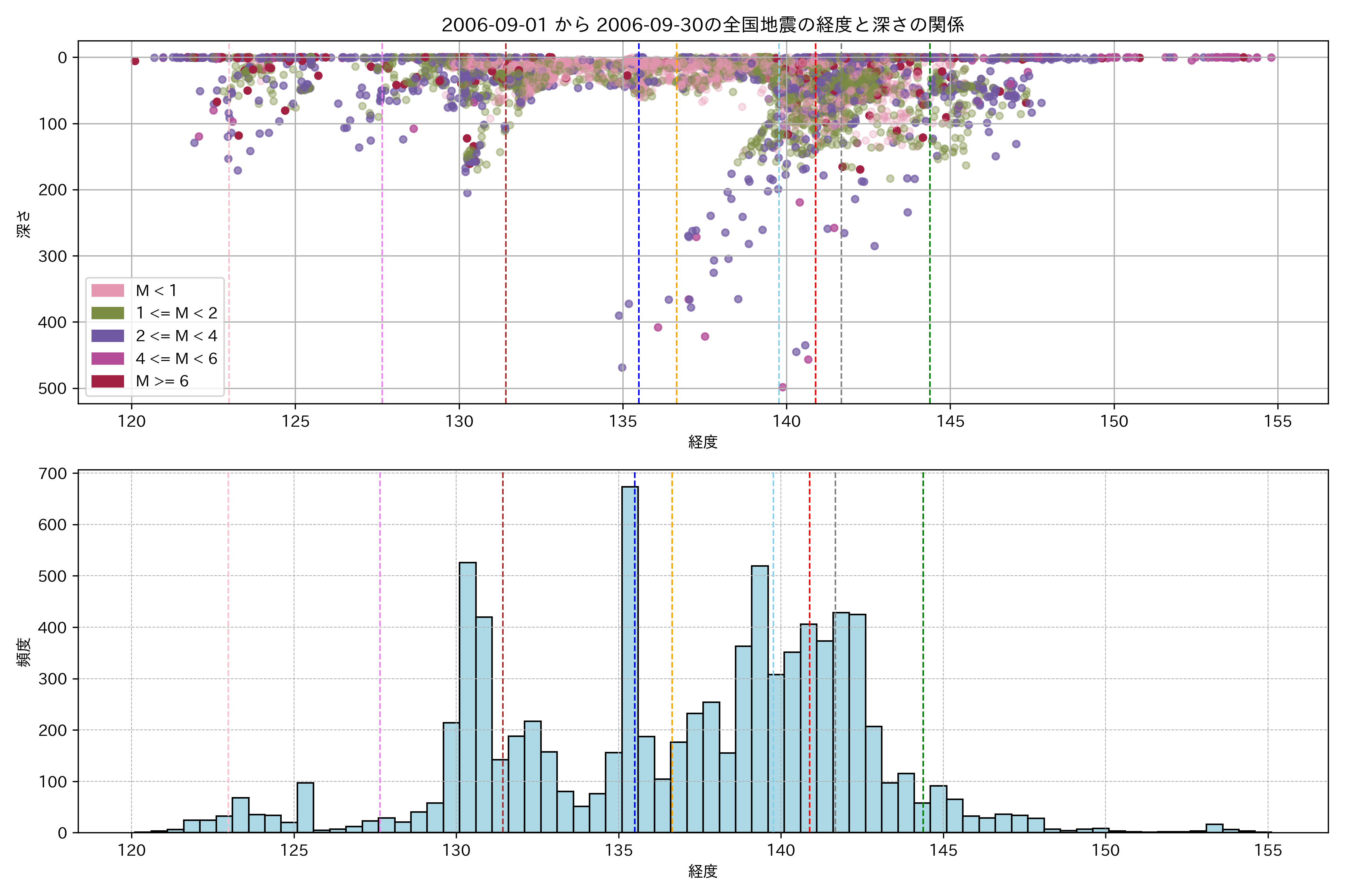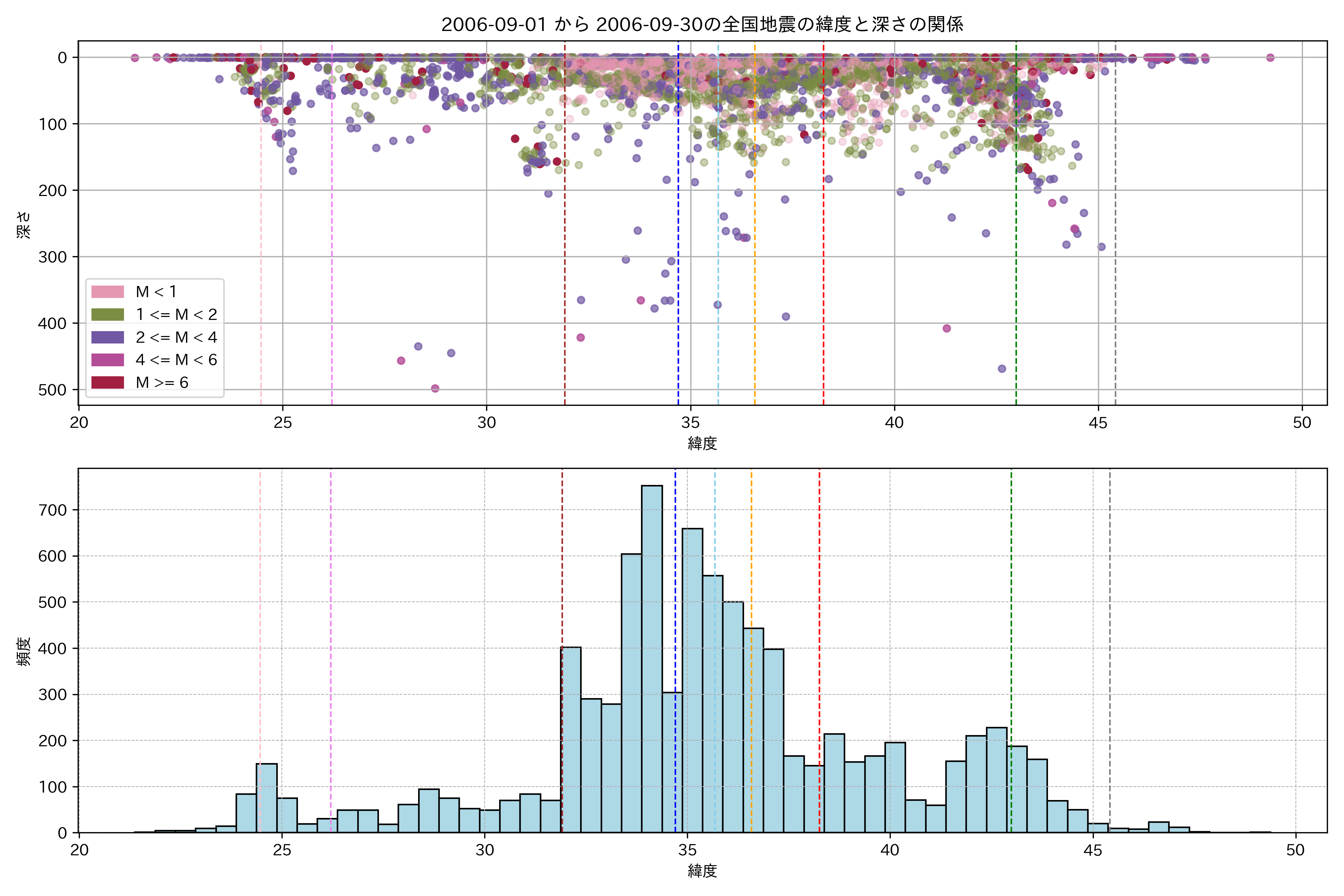 2006年9月 マグニチュード 0 以上震源マップ