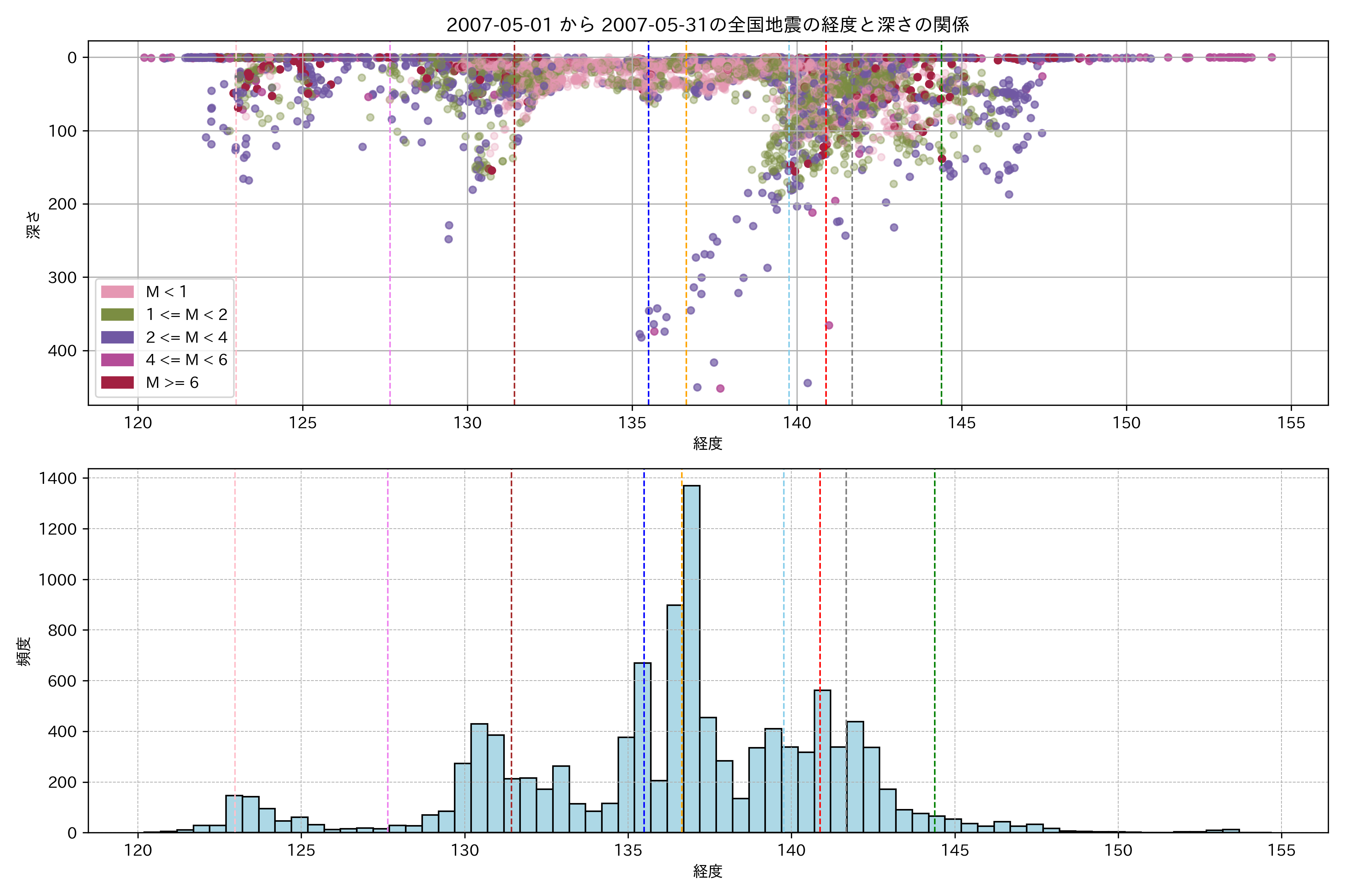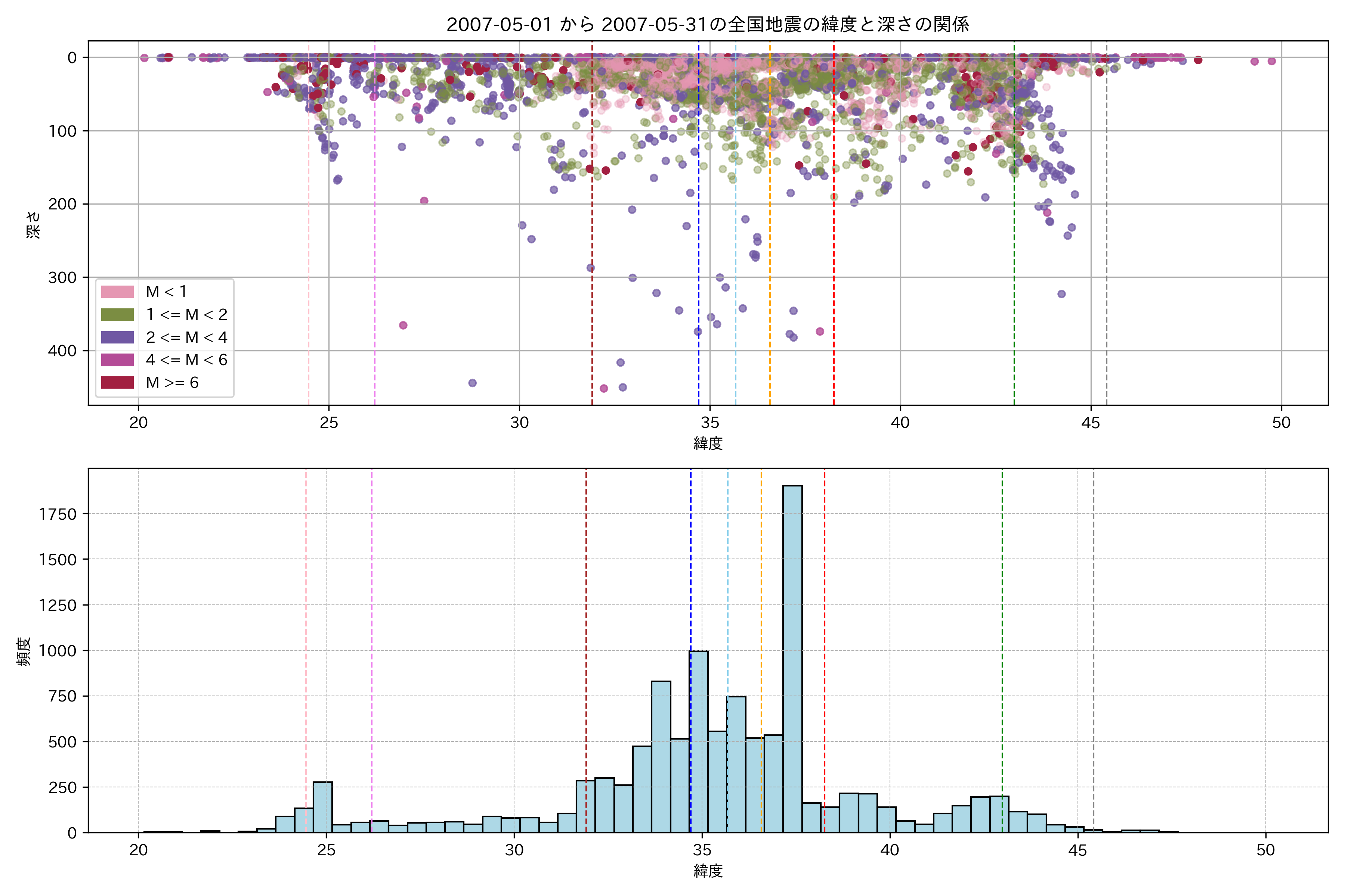 2007年5月 マグニチュード 0 以上震源マップ