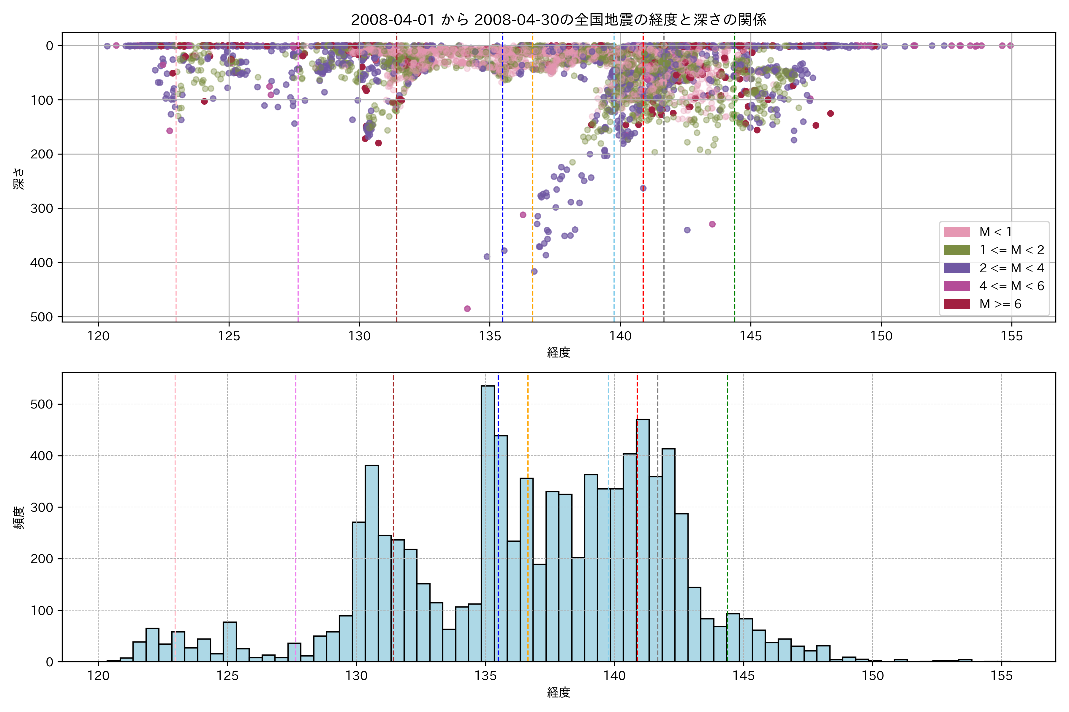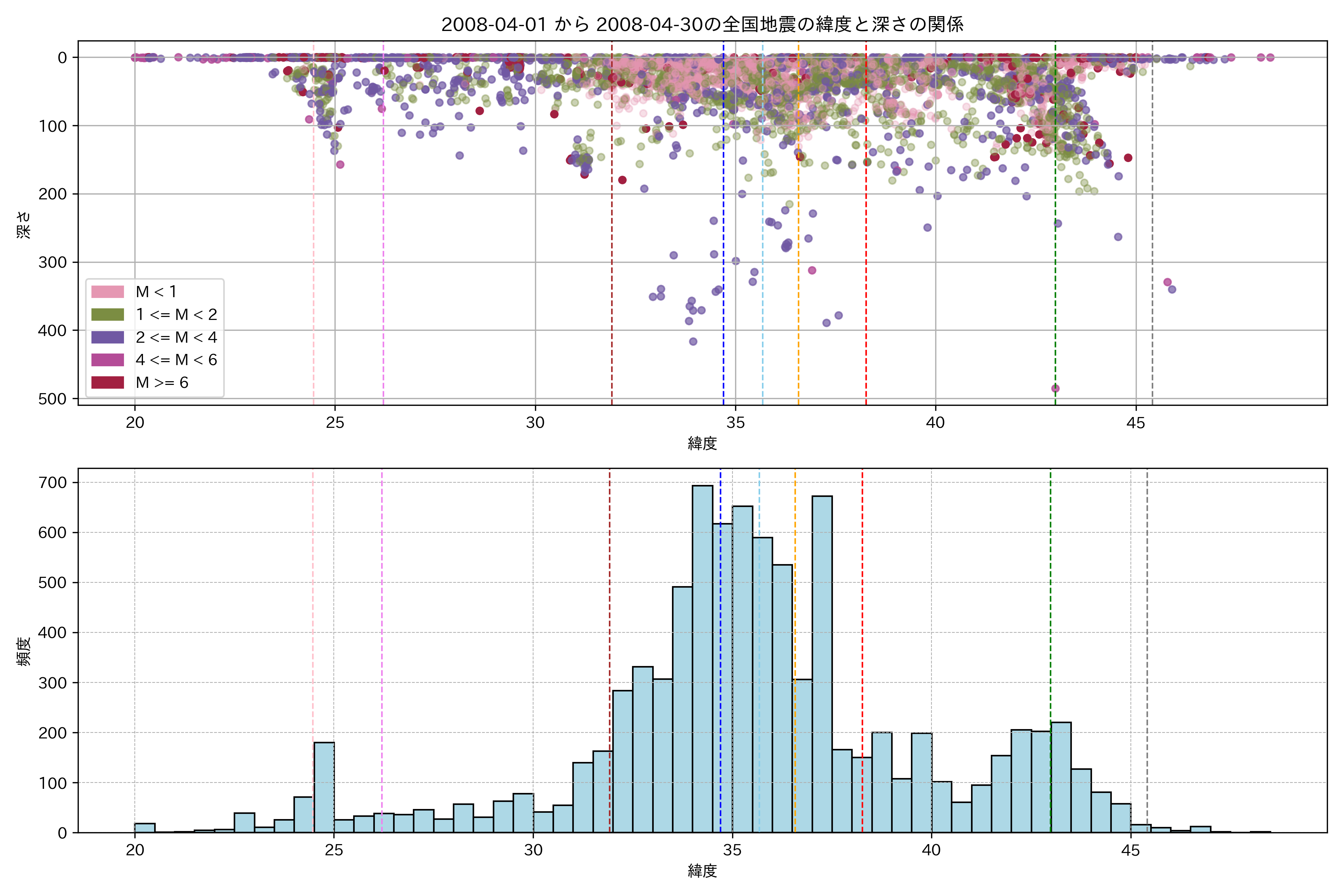 2008年4月 マグニチュード 0 以上震源マップ