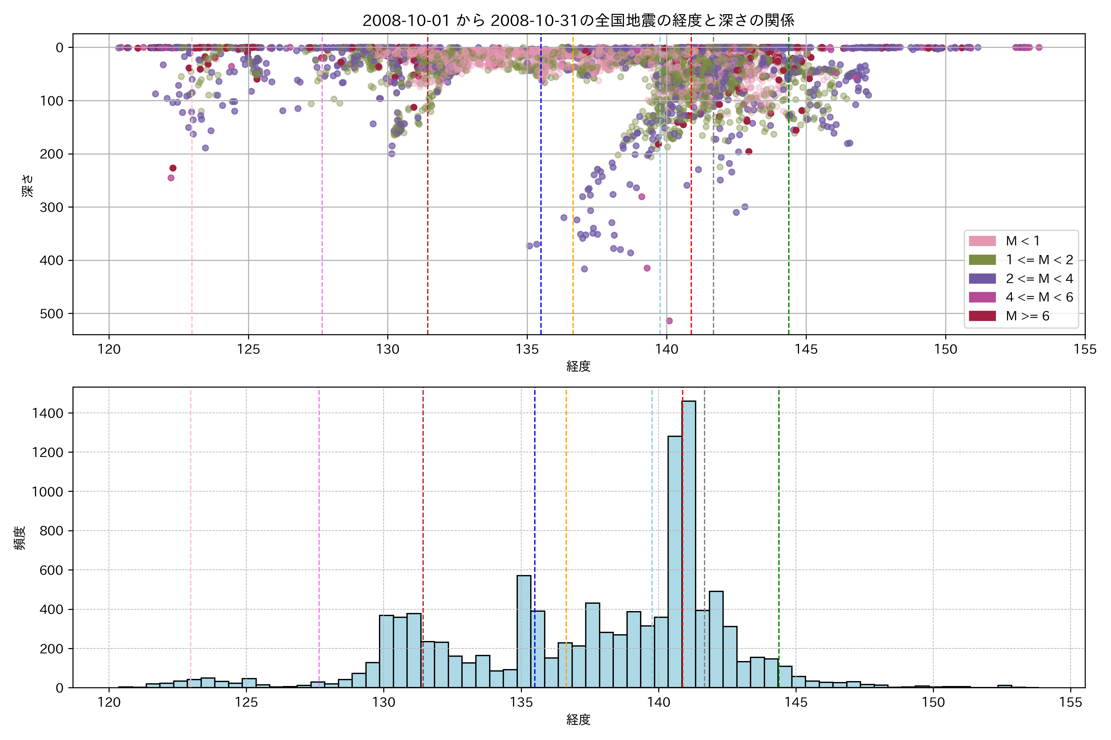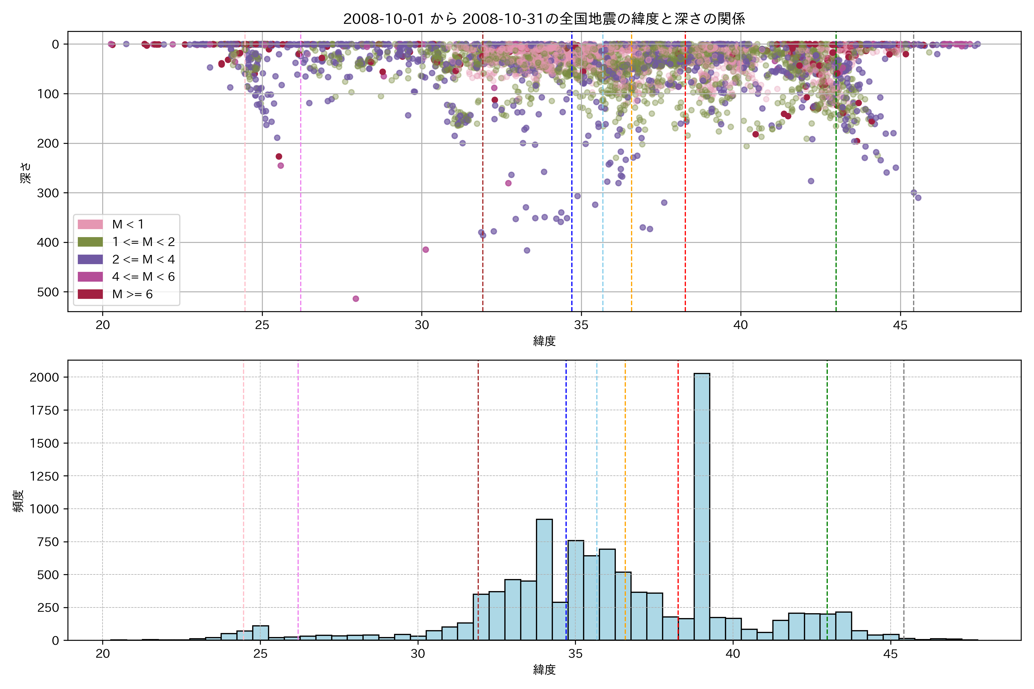 2008年10月 マグニチュード 0 以上震源マップ