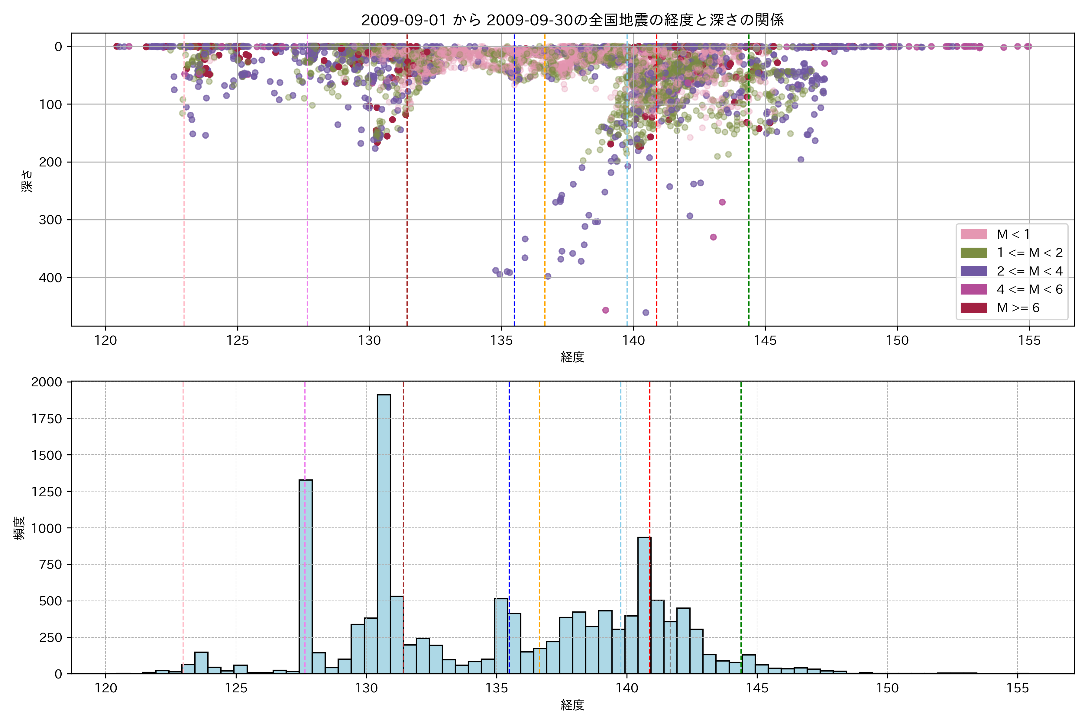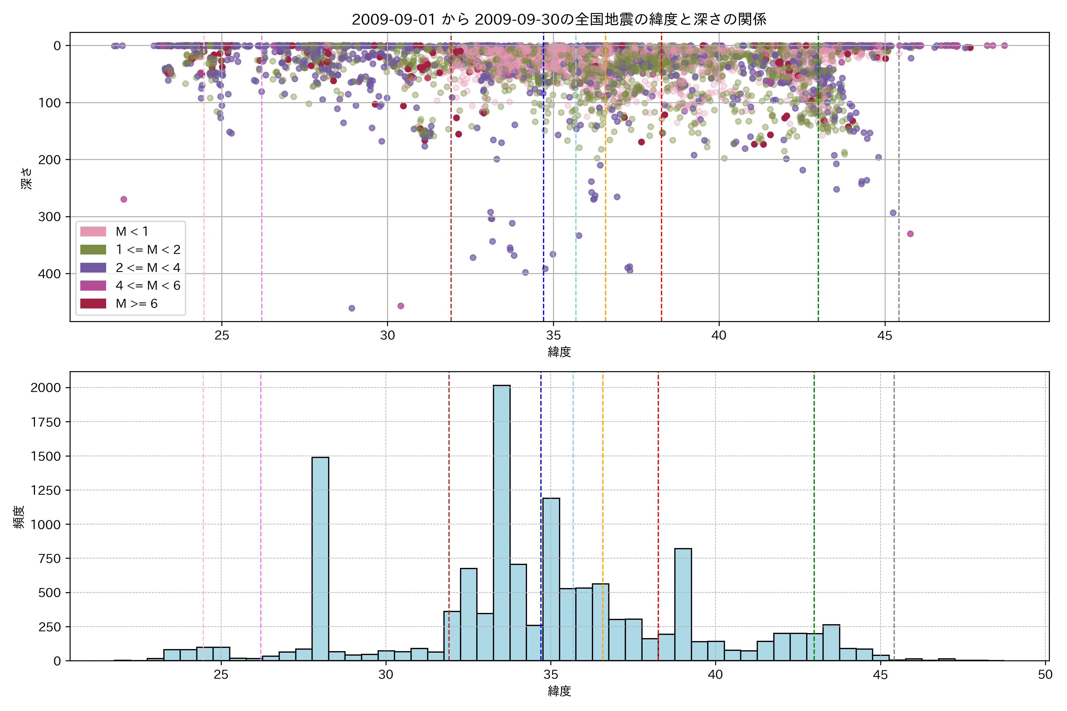 2009年9月 マグニチュード 0 以上震源マップ
