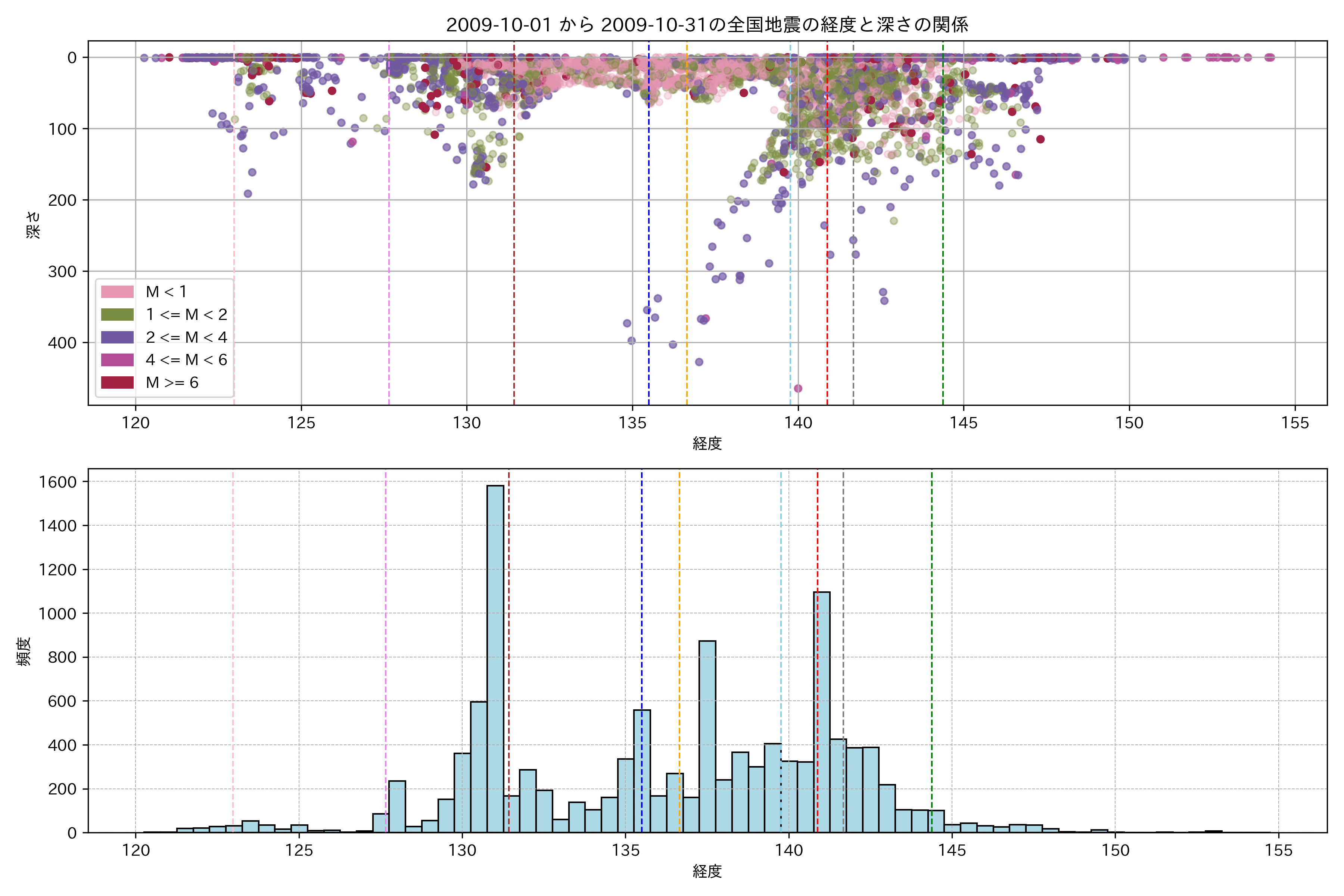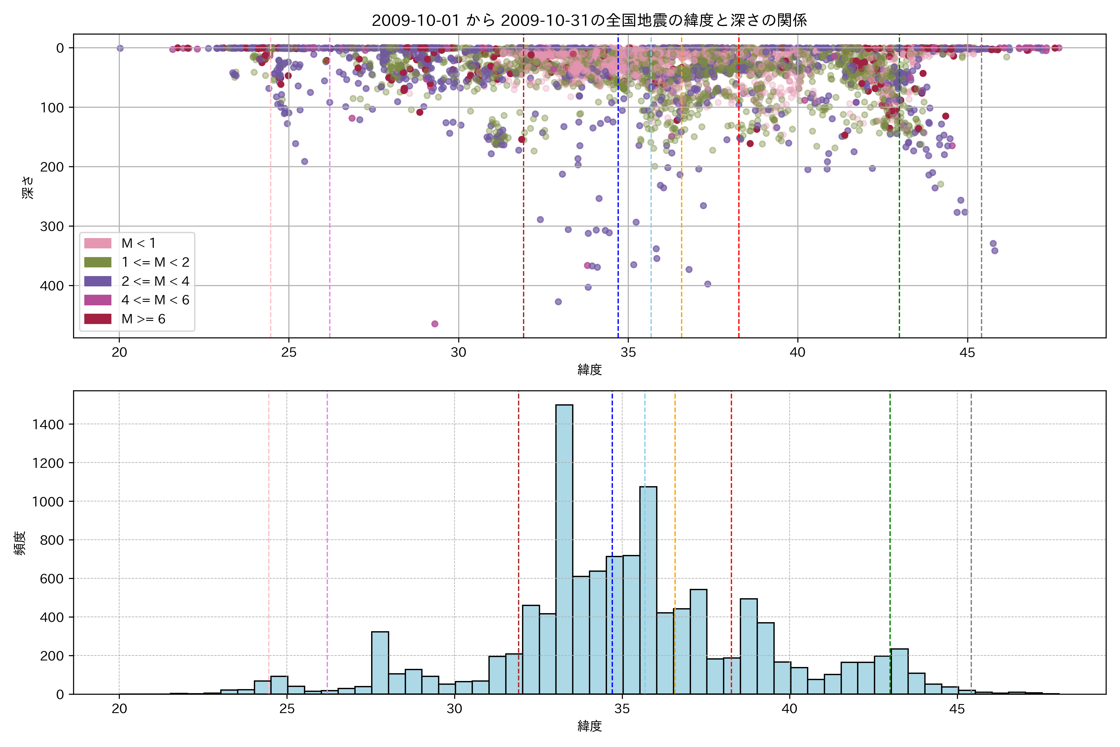 2009年10月 マグニチュード 0 以上震源マップ
