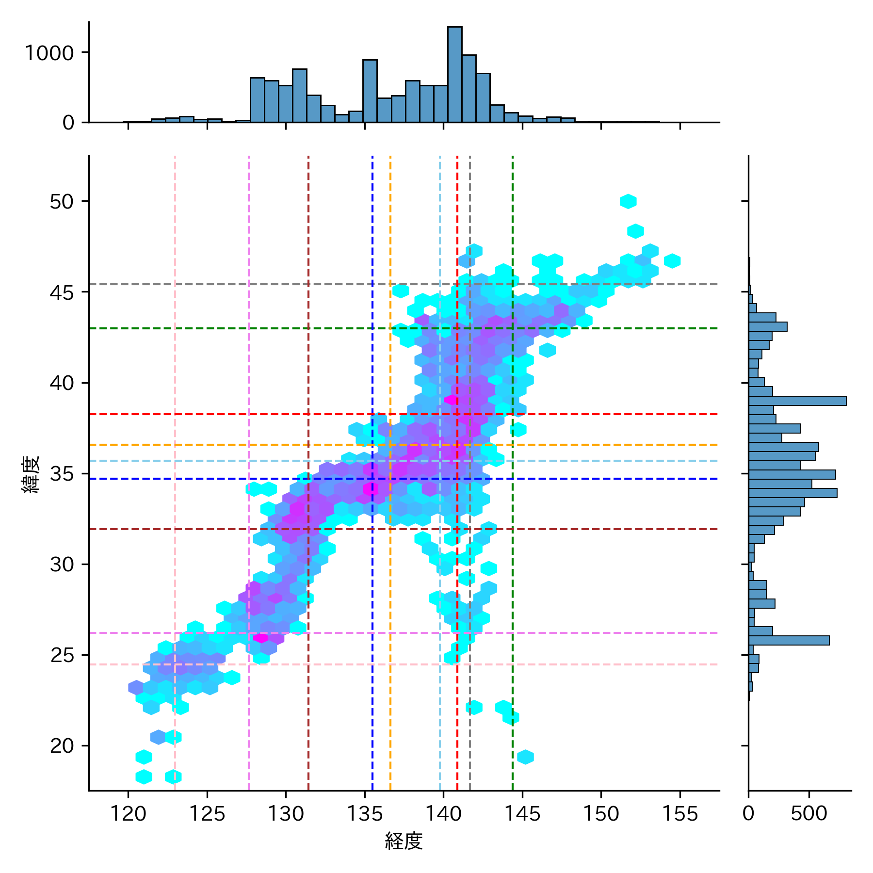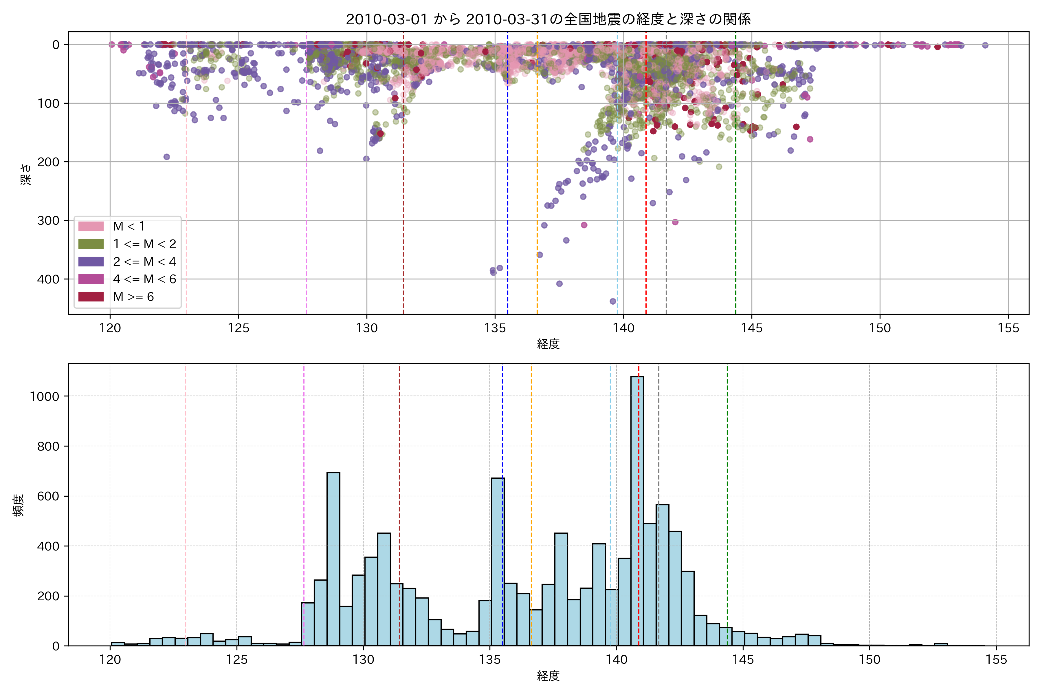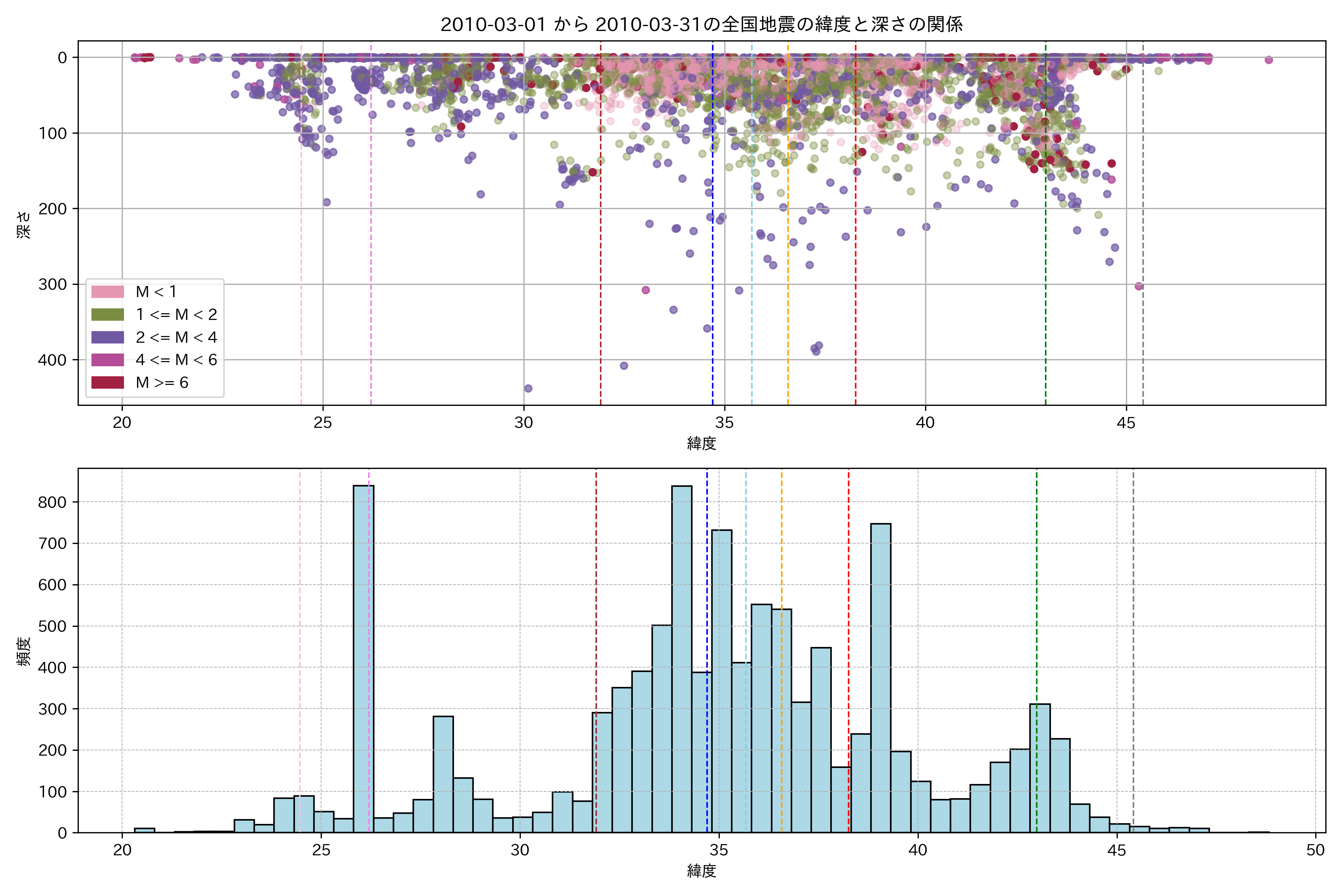 2010年3月 マグニチュード 0 以上震源マップ