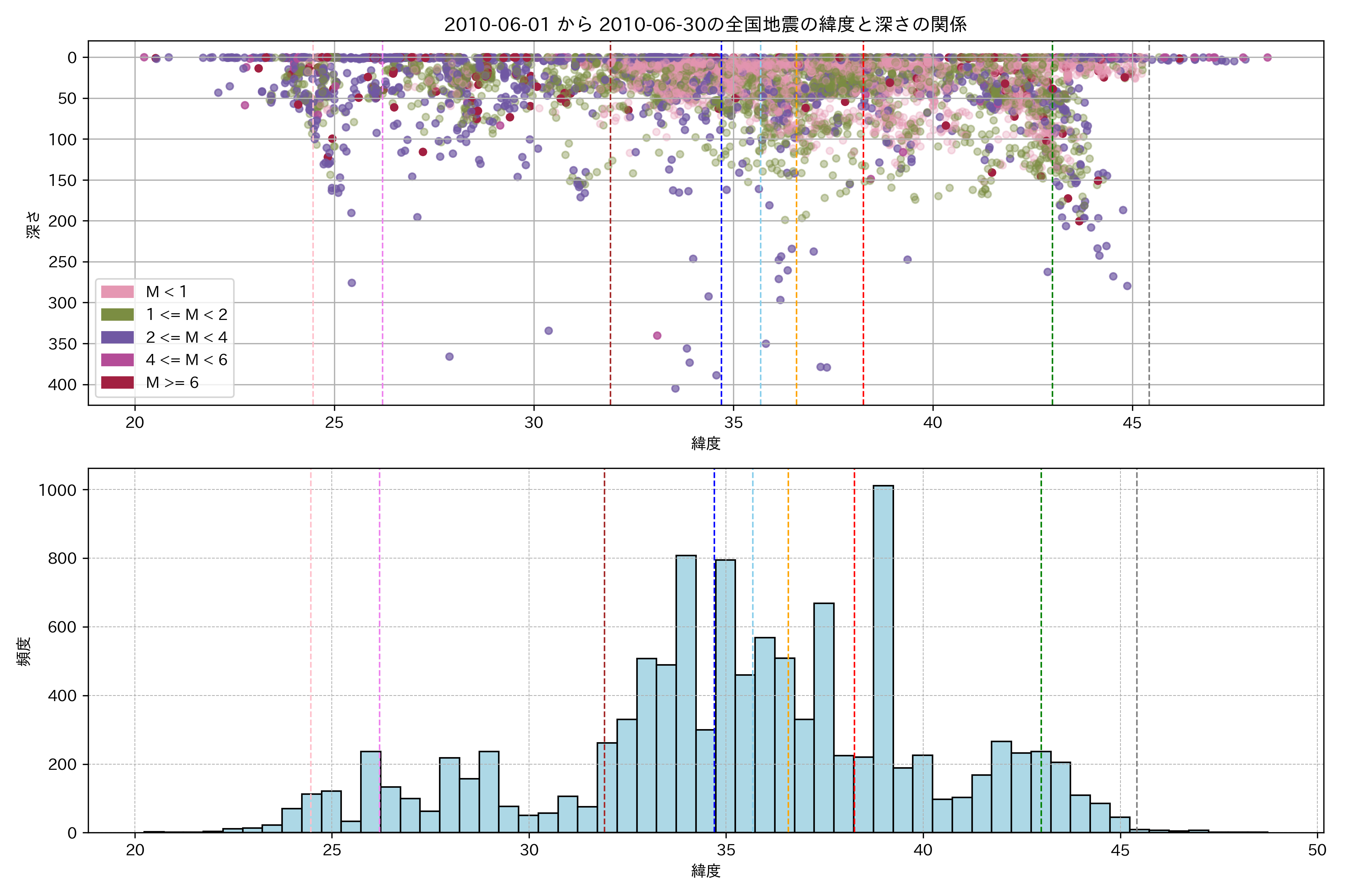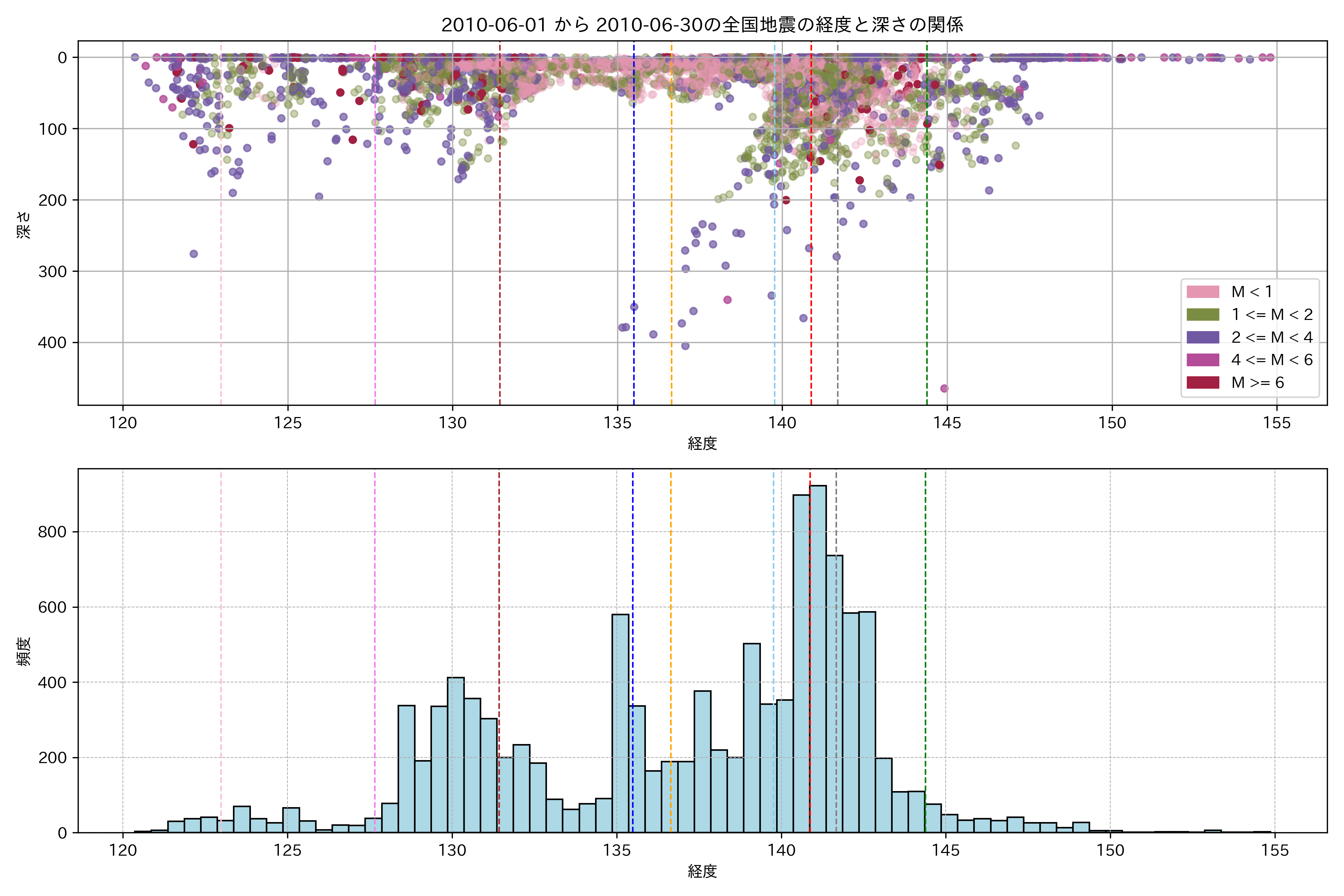 2010年6月 マグニチュード 0 以上震源マップ