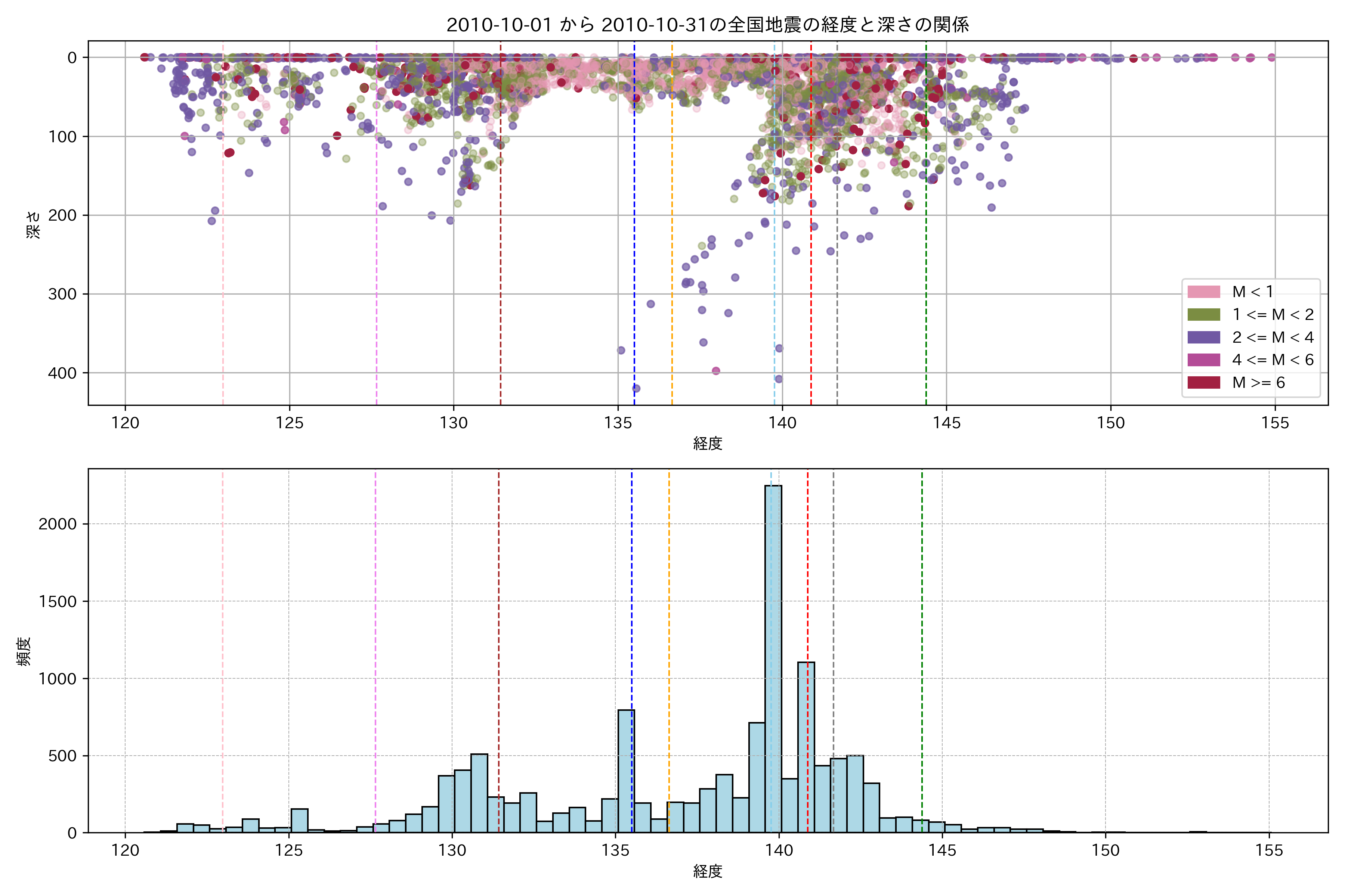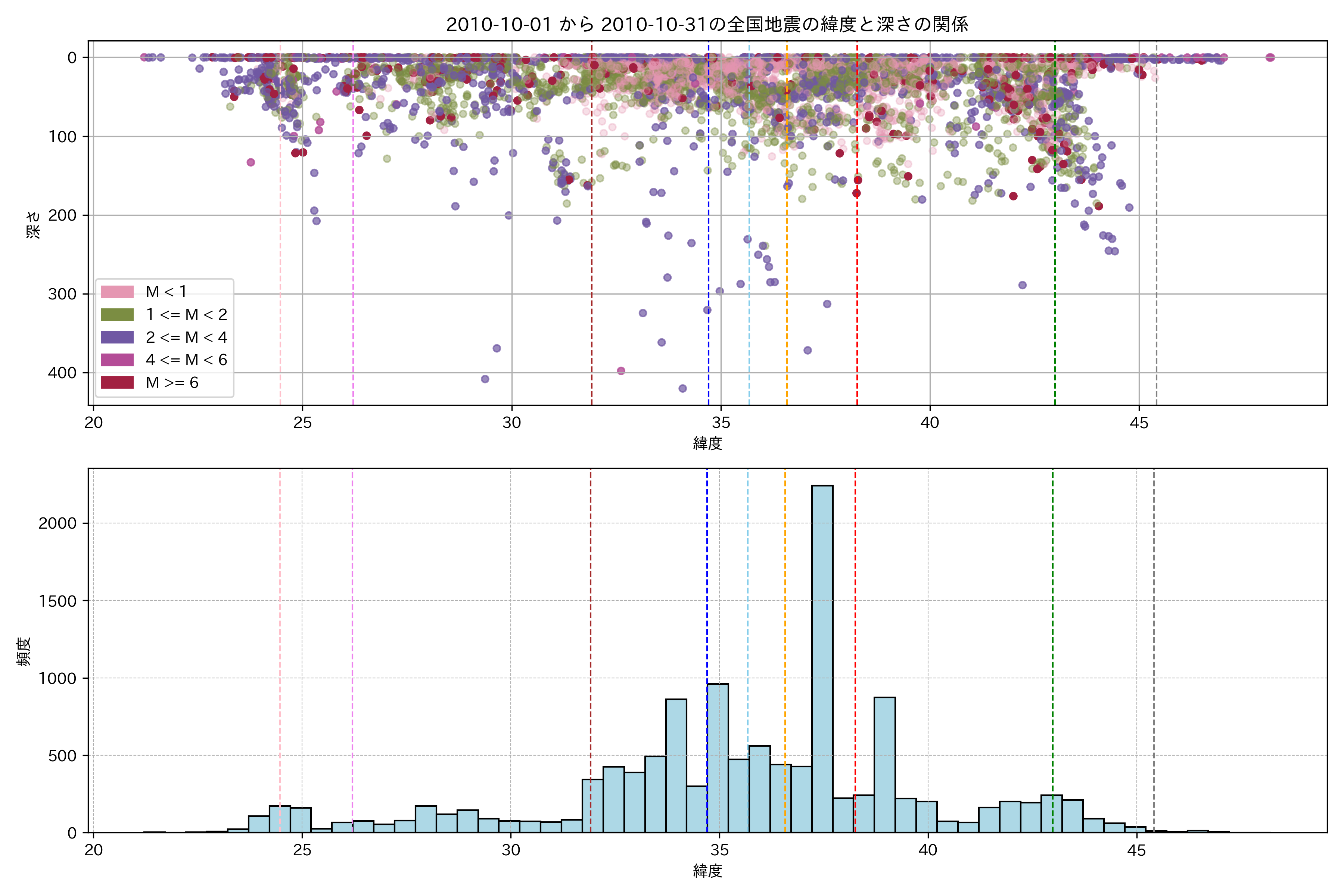 2010年10月 マグニチュード 0 以上震源マップ