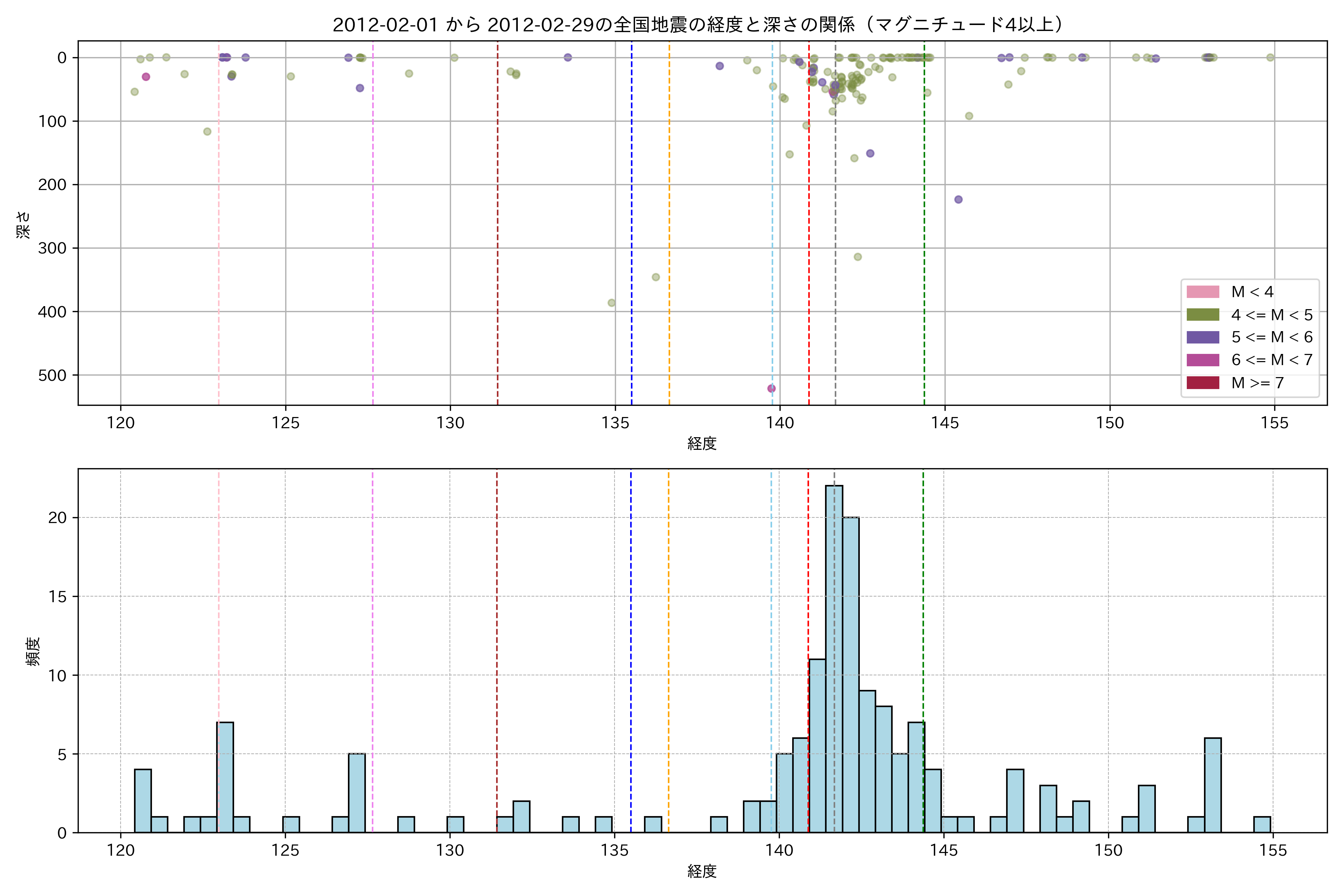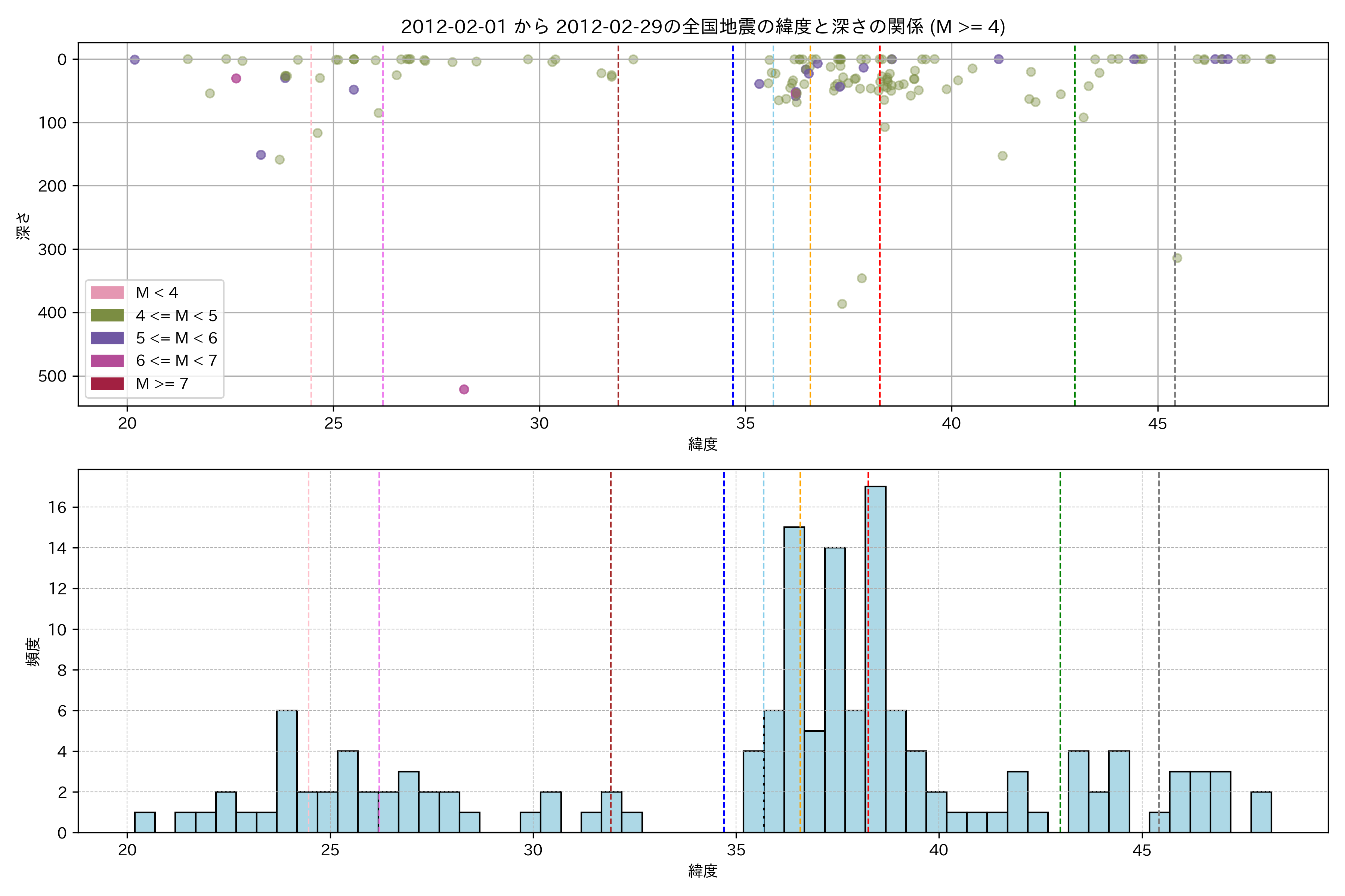 2012年2月 マグニチュード 4 以上震源マップ